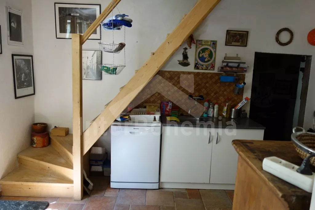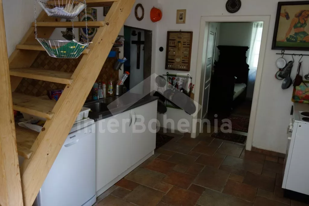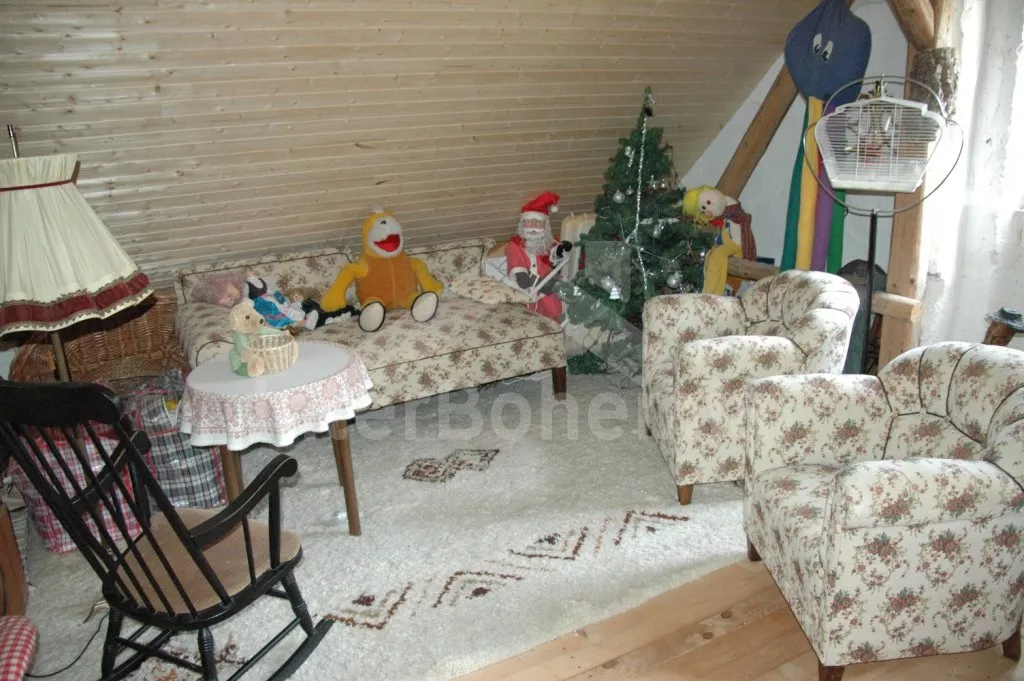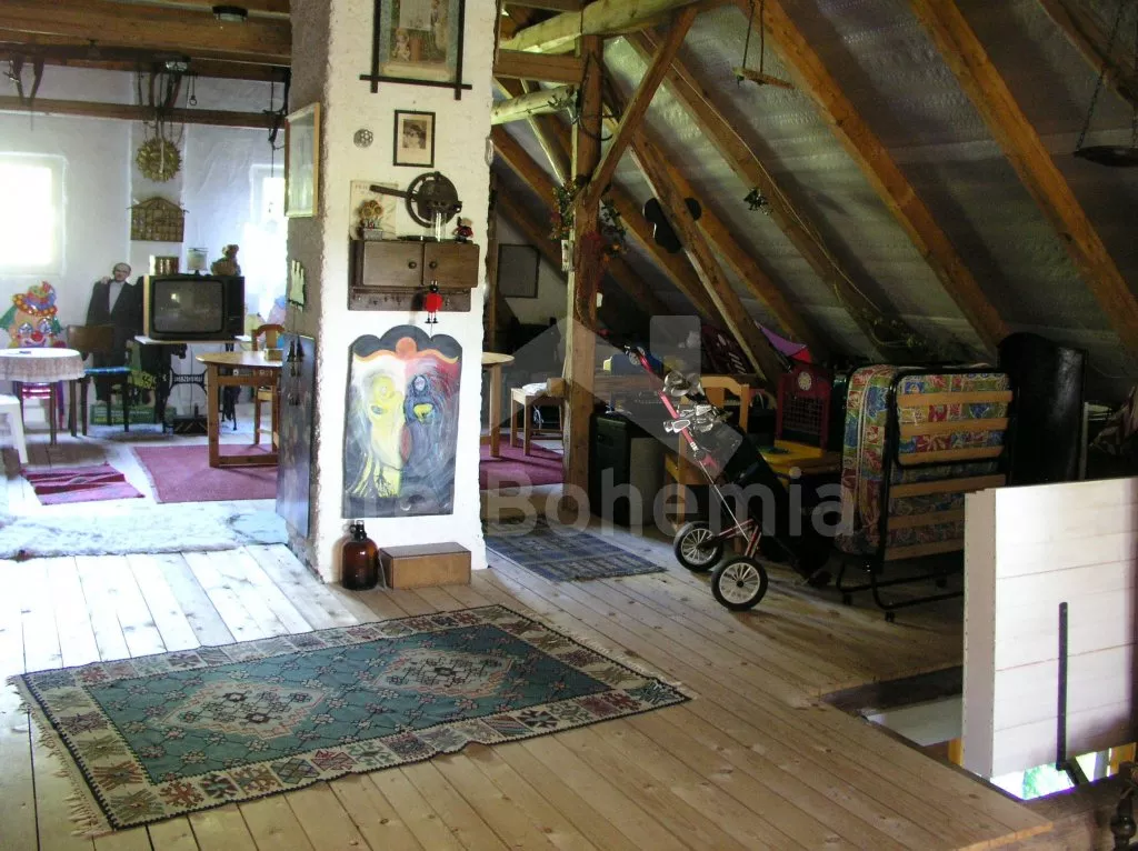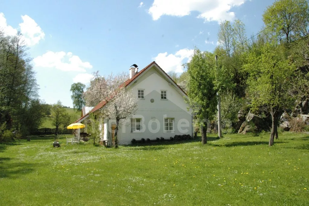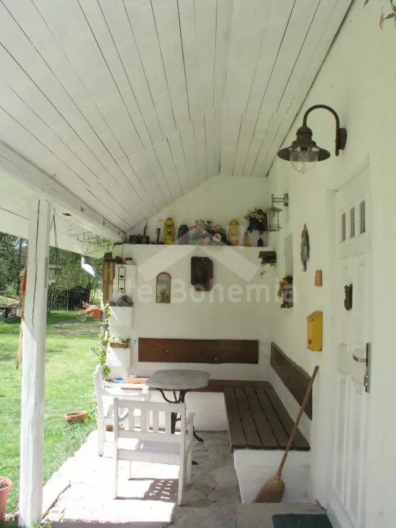 Volně stojící, starší rekreační domek, velmi prostorný, útulně a hezky zařízený. Vstup, chodba, kuchyně s elektrickým sporákem, lednicí, kávovarem, varnou konvicí, mikrovlnnou troubou a myčkou na nádobí. Obývací pokoj se sedací soupravou pro 3-4 osoby, hezkými kachlovými kamny, jídelním stolem pro 5 osob. Ložnice s dvojlůžkem. Druhá ložnice se dvěma samostatnými lůžky. Koupelna se sprchou a toaletou. Po příkrých schodech vstup do podkroví – zde se nachází třetí ložnice s dvojlůžkem, dvěma samostatnými lůžky a přistýlkou. Dále je zde obytný půdní prostor s plochou téměř 70 m2! Najdete zde sedací soupravu, jídelní kout a různé věci, se kterými si mohou při špatném počasí hrát děti. Ústřední topení – kotel na dřevo. Je možné topit též dřevem v kachlových kamnech. Zahrada je přírodní a jen zčásti oplocená (potok, skála), k dispozici je zahradní nábytek se slunečníkem, přenosný gril, ohniště, stolní tenis a houpačka. Vlastní parkoviště.