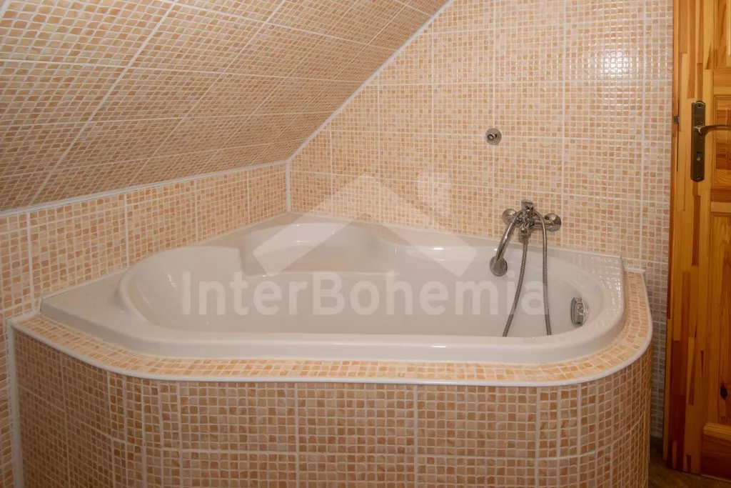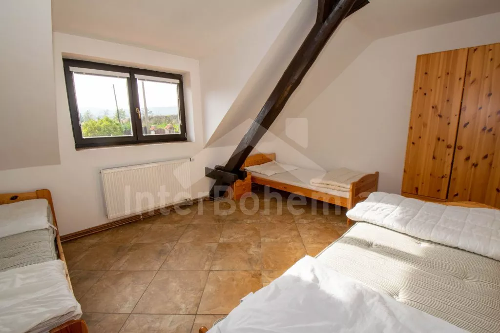Volně stojící prostorná chalupa se zahradou, hřištěm a bazénem. Dům je rozdělen na dva apartmány, je ale vždy pronajímán pouze jedné skupině osob jako celek.