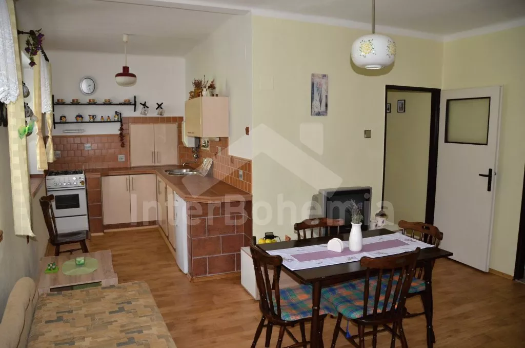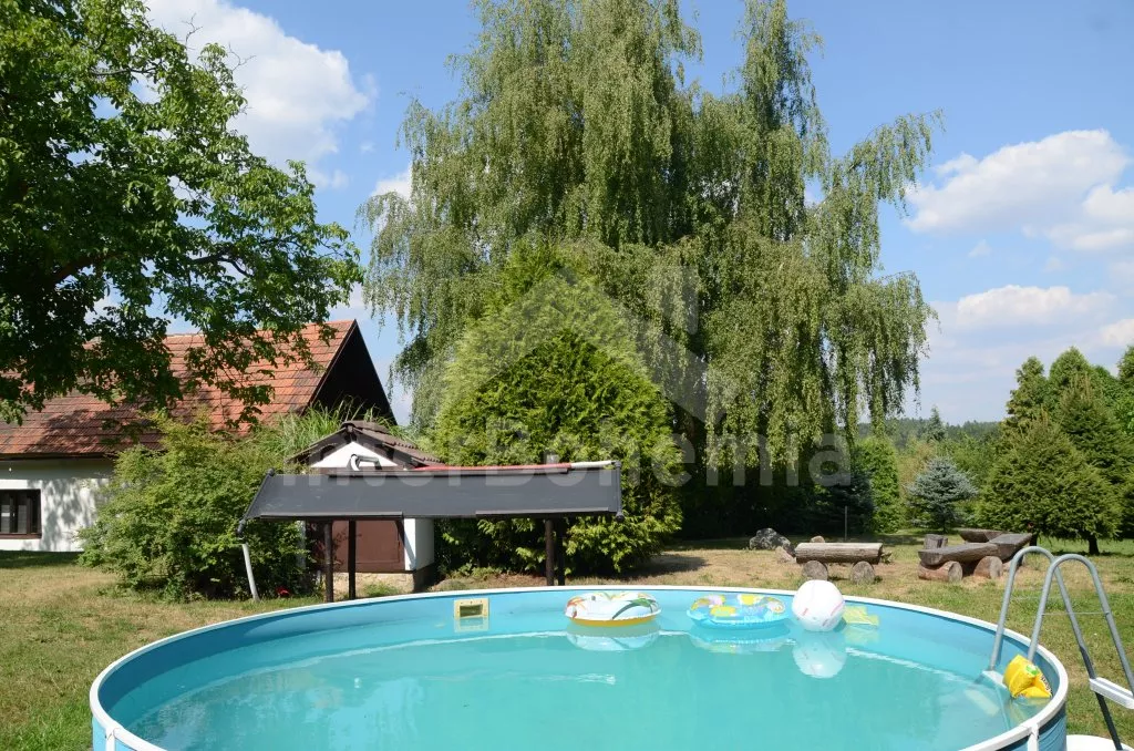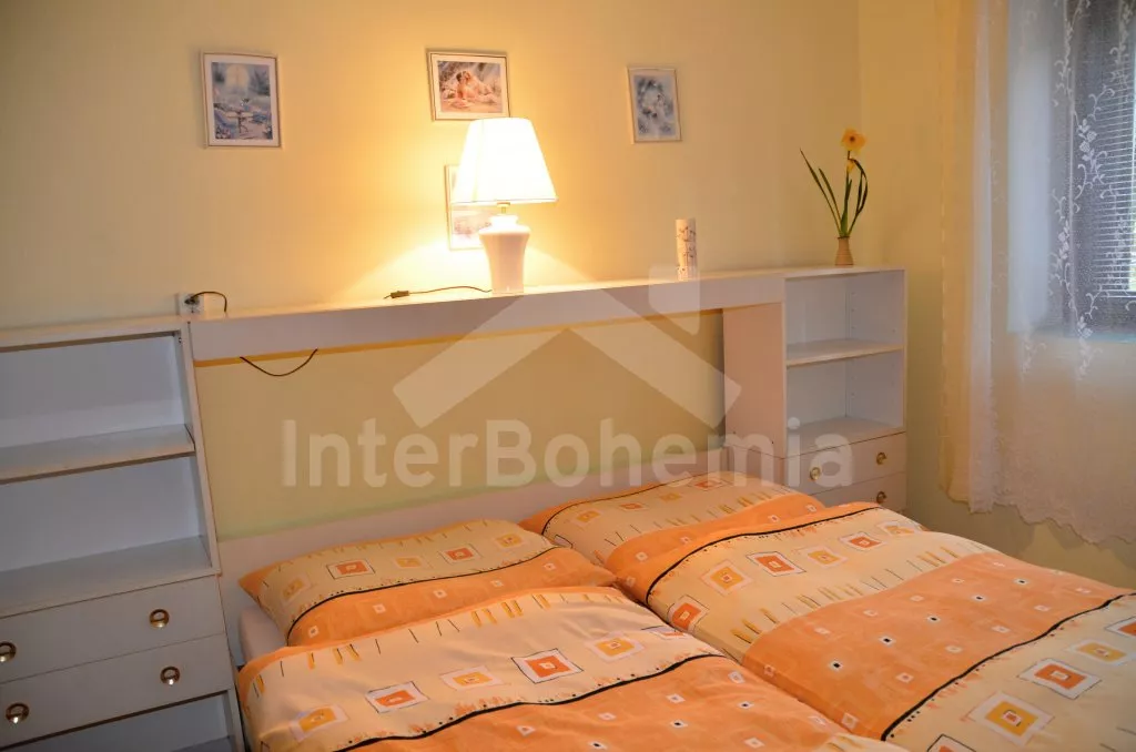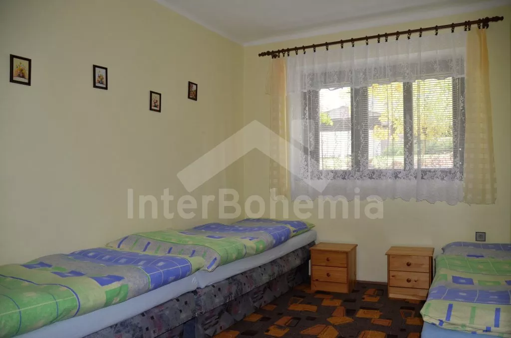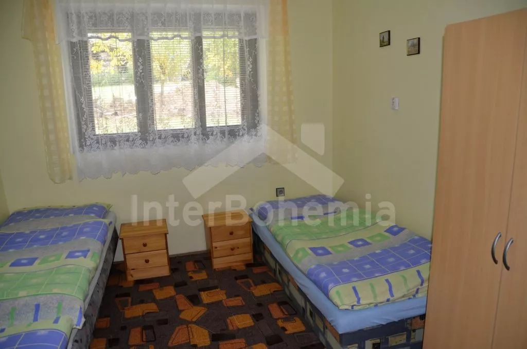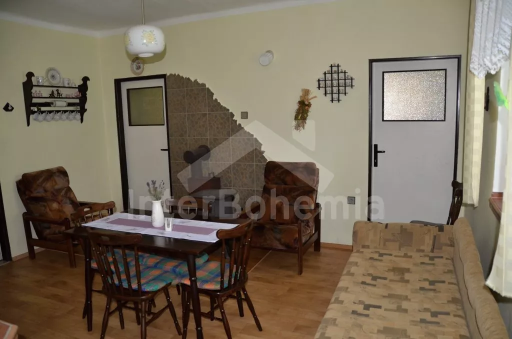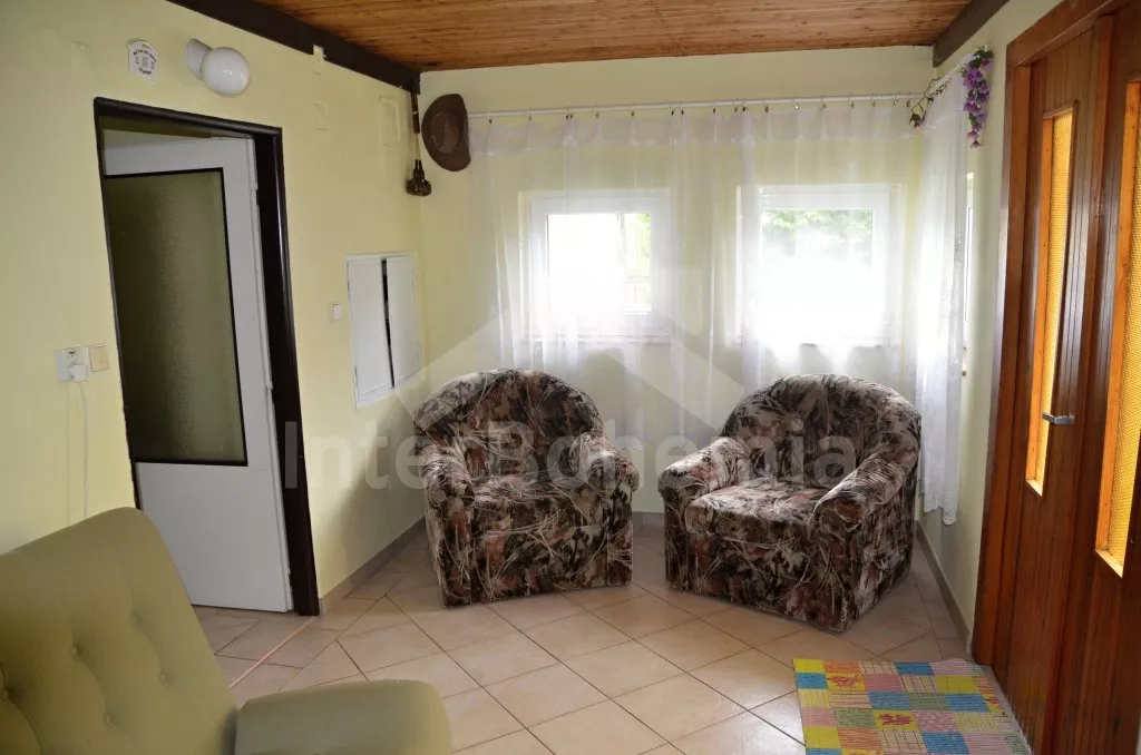 Volně stojící, zrekonstruovaná chalupa k samostatnému obývání. Vchod po několika schůdcích, poté jsou všechny místnosti na jedné úrovni. Přední místnost s posezením a televizí, chodba, obývací pokoj se sedací soupravou a krásným krbem. Kuchyně s jídelním stolem pro 6 osob, lednice, plynový sporák s elektrickou troubou, kávovar, varná konvice a mikrovlnná trouba. Koupelna s vanou a sprchou, WC zvlášť. Dvě ložnice, každá s vlastním vchodem, jedna ložnice s dvojlůžkem a druhá ložnice se třemi lůžky. Částečně oplocená zahrada se zahradním nábytkem a slunečníkem, přenosný gril a ohniště. Částečně zapuštěný kulatý bazén o průměru 4 m. Vlastní parkoviště. Vytápění objektu ústředním topením.