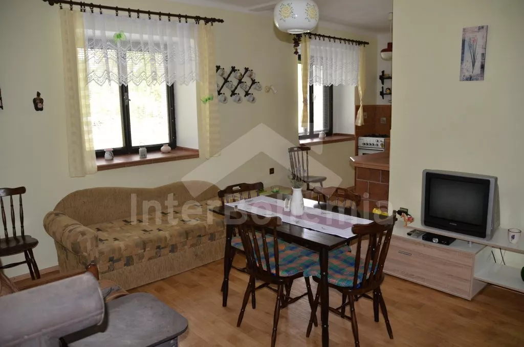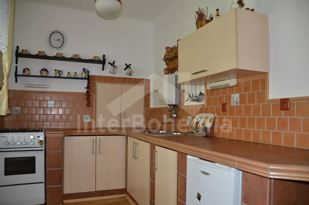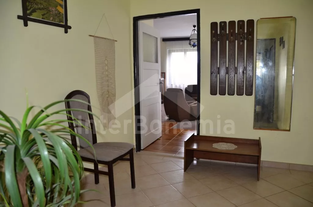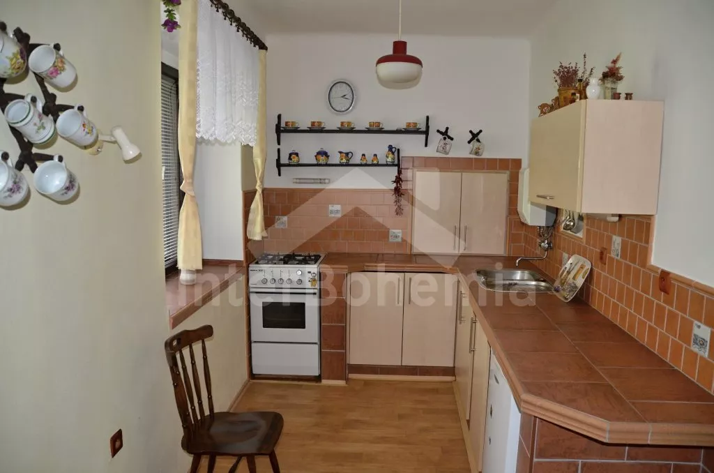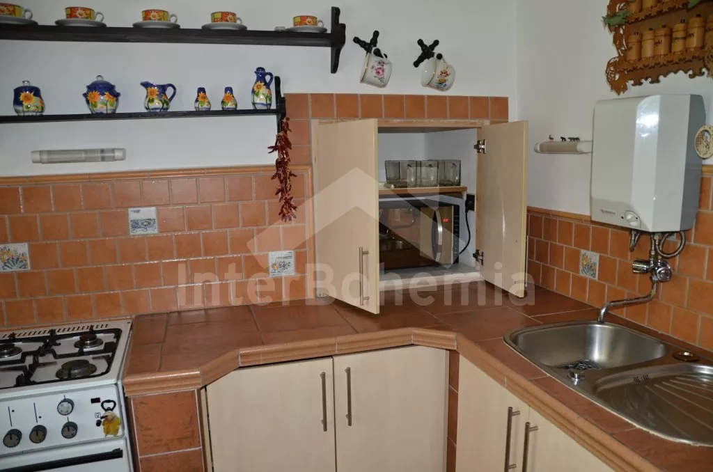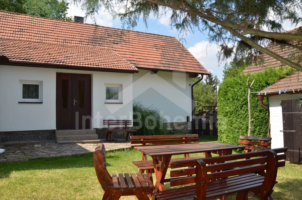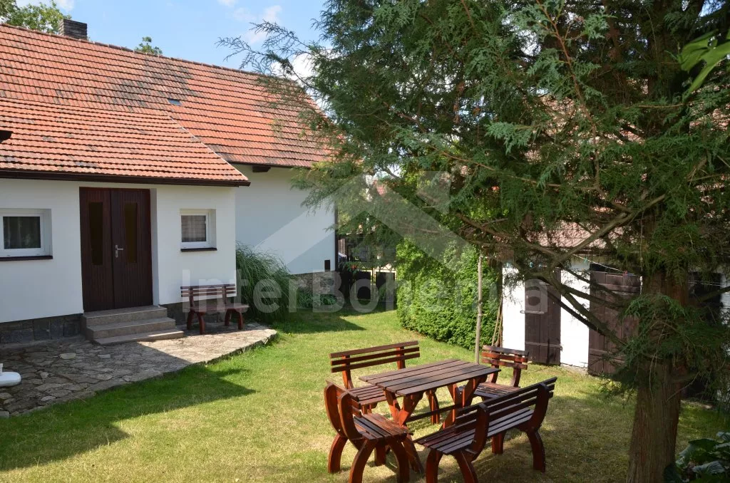 Volně stojící, zrekonstruovaná chalupa k samostatnému obývání. Vchod po několika schůdcích, poté jsou všechny místnosti na jedné úrovni. Přední místnost s posezením a televizí, chodba, obývací pokoj se sedací soupravou a krásným krbem. Kuchyně s jídelním stolem pro 6 osob, lednice, plynový sporák s elektrickou troubou, kávovar, varná konvice a mikrovlnná trouba. Koupelna s vanou a sprchou, WC zvlášť. Dvě ložnice, každá s vlastním vchodem, jedna ložnice s dvojlůžkem a druhá ložnice se třemi lůžky. Částečně oplocená zahrada se zahradním nábytkem a slunečníkem, přenosný gril a ohniště. Částečně zapuštěný kulatý bazén o průměru 4 m. Vlastní parkoviště. Vytápění objektu ústředním topením.