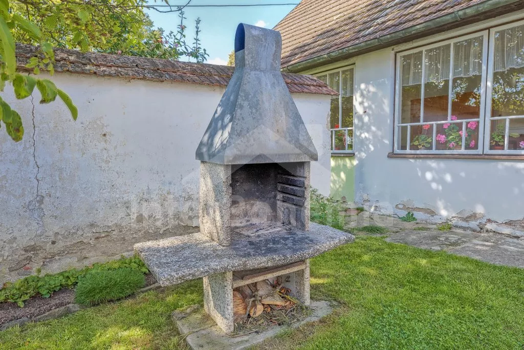 Volně stojící bývalý jihočeský statek s uzavřeným vnitřním dvorem, umístěný v obrovské zahradě. Vstup do verandy s pozezením (dřevěná lavice a židle), chodba, obytná kuchyně s pohovkou, křeslem, televizí, krbovými kamny, jídelním stolem pro 5 osob, elektrickým sporákem, lednicí, varnou konvicí, kávovarem a mikrovlnnou troubou. Koupelna se sprchou a toaletou. Dvě ložnice – jedna s dvojlůžkem, přistýlkou a posezením a druhá ložnice se dvěma samostatnými lůžky, posezením a kamny. Vytápění kamny. Uzavřený vnitřní dvůr a velká vysokým plotem oplocená zahrada, kde máte absolutní klid a naprosté soukromí. K dispozici je dřevěný zahradní nábytek, zahradní krb a bazén o průměru 3,8 m s čističkou. Vlastní parkoviště. Možnost úschovy jízdních kol v kůlně.