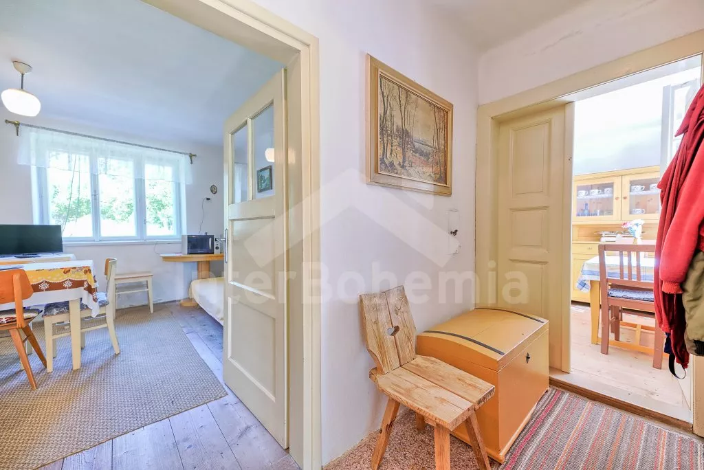 Volně stojící bývalý jihočeský statek s uzavřeným vnitřním dvorem, umístěný v obrovské zahradě. Vstup do verandy s pozezením (dřevěná lavice a židle), chodba, obytná kuchyně s pohovkou, křeslem,… Více informací