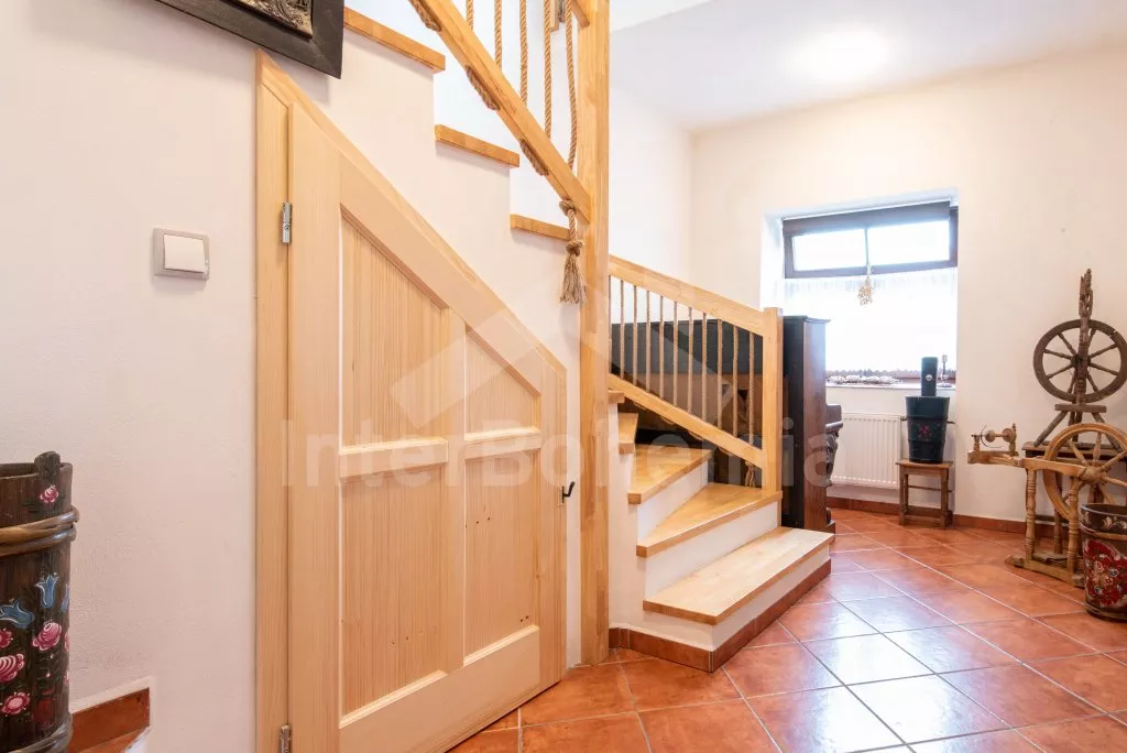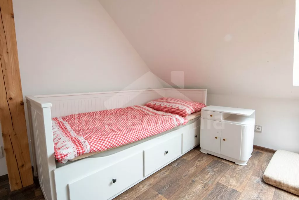 Útulně zařízená renovovaná chalupa (2021) s uzavřeným dvorem pro větší soukromí. Obývací pokoj se sedací soupravou a TV. Prostorná kuchyň s velkým jídelním stolem, keramickou deskou, troubou, mikrovlnnou troubou, rychlovarnou konvicí, lednicí. V kuchyni dále keramická kamna i s pecí a sedačkou pro dvě osoby. První ložnice s dvoulůžkem se nachází hned vlevo od vstupních dveří. Koupelna s velkou vanou, sprchovým koutem a dvěma umyvadly. Samostatné WC. V patře ložnice s dvoulůžkem a jednolůžkem. Další ložnice s jednolůžkem a rozkládacím jednolůžkem. Koupelna se sprchou, umyvadlem a toaletou. Topení ústřední na tuhá paliva. Parkování možné ve dvoře (prostor pro více aut). Dvůr také disponuje přenosným grilem a pískovištěm pro děti. Chalupa se nachází blízko hlavní silnice.