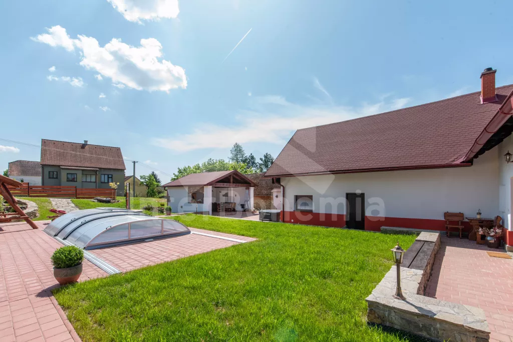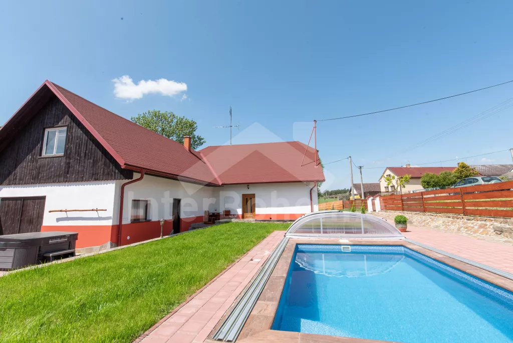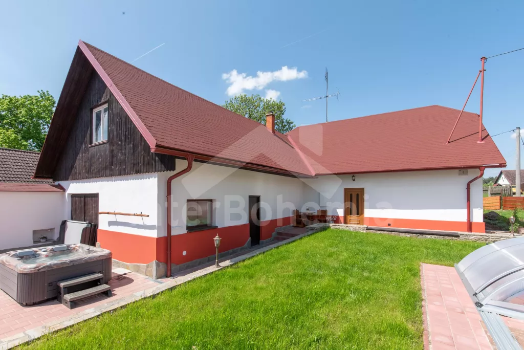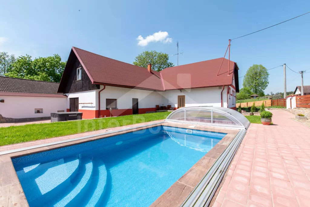 Moderně zrekonstruovaná chalupa se zapuštěným bazénem, vířivkou, saunou a vinným sklípkem!
