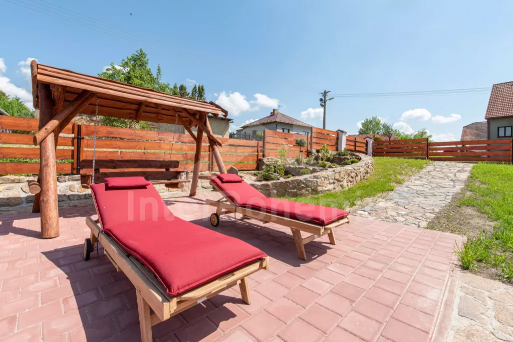 Nadstandardně a stylově vybavená chalupa s krytou pergolou, bazénem se slanou vodou, vířivkou a saunou. Plně vybavená kuchyně se sklokeramickou deskou, lednicí s mrazákem, mikrovlnnou troubou, rychlovarnou konvicí, kávovarem, přenosným grilem, vybavením na vaření a myčkou na nádobí. Obývací místnost s rozkládací pohovkou pro 2 osoby, gaučem, jídelním stolem, TV a konferenčním stolkem. Ložnice s 2x dvoulůžkem a šatní skříní. Sklípek s posezením a nabídkou moravských vín (degustace za poplatek). Koupelna se sprchou, umyvadlem, WC a pračkou se sušičkou. Částečně oplocená zahrada se zapuštěným bazénem s lehátky, houpací lavicí, vířivkou a pergolou s krbem, posezením a saunou. Pro děti trampolína, šipky, stolní fotbálek a stůl na ping-pong. Parkování pro 2 automobily na pozemku a 2 automobily před pozemkem. Nově možnost rybolovu v soukromém rybníce vzdáleném 400 m od chalupy a přístupném autem.