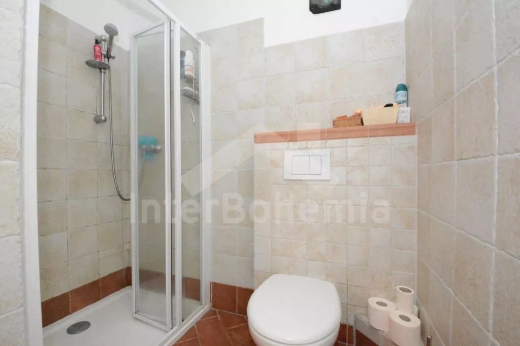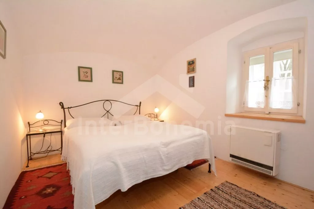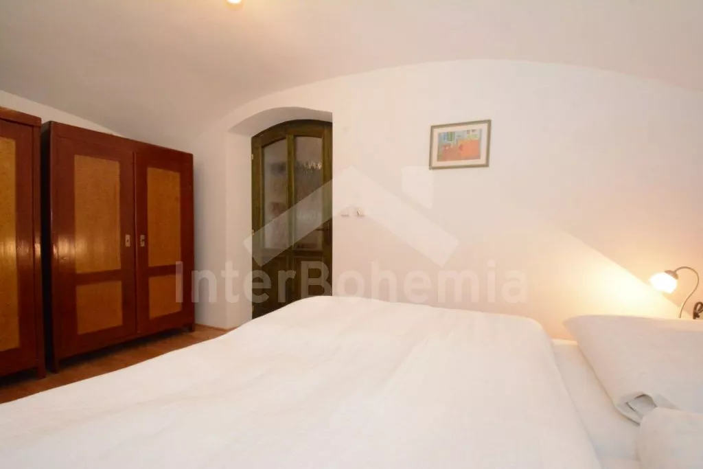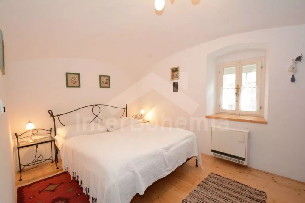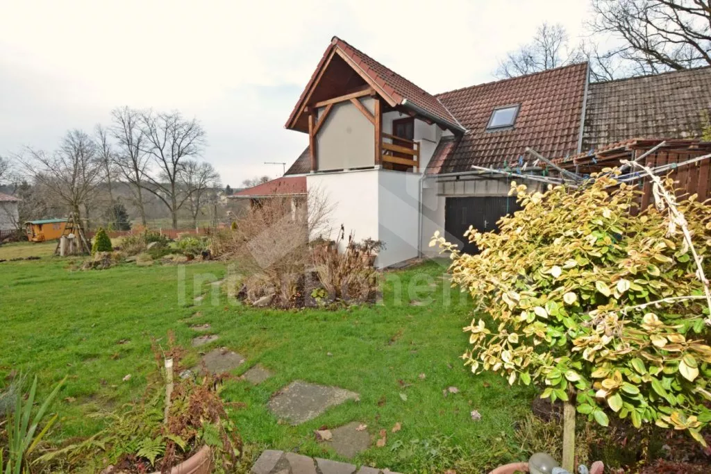 Volně stojící chalupa na vlastní, oplocené zahradě, po renovaci, příjemně a komfortně zařízená. Obýváte spodní patro chalupy s vlastním vchodem, podkroví pronajato samostatně. Vstup, hala, prostorný obývací pokoj spojený s kuchyní. V kuchyni krbová kamna. Kuchyňská linka se sklokeramickou varnou deskou, troubou, mikrovlnnou troubou, lednicí s mrazákem, kávovarem, rychlovarnou konvicí, nádobím a myčkou na nádobí. V obývacím pokoji jídelní stůl pro 5 osob, velká sedací souprava (rozkládací na extra lůžko pro 2 osoby), konferenční stolek a LCD televize se satelitem. Ložnice s dvoulůžkem. Koupelna se sprchovým koutem, umyvadlem a wc. Vytápění chalupy elektrickými akumulačkami + lokálně kamny. Hosté mají k dispozici společnou zahradu s posezením a přenosným grilem. Možnost rybaření v potoce na druhé části pozemku, který je přístupný ze zahrady po schodech a patří k chalupě. Parkování pro 1 osobní automobil.