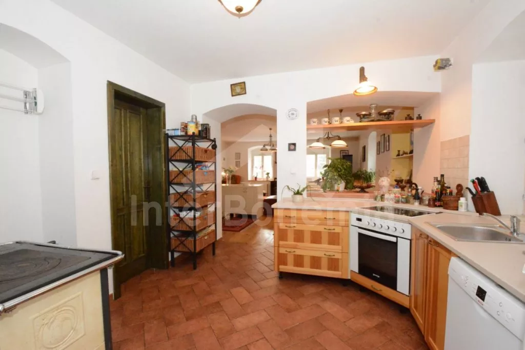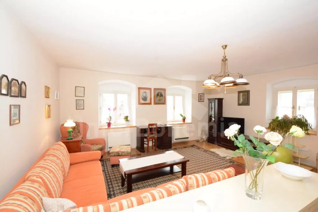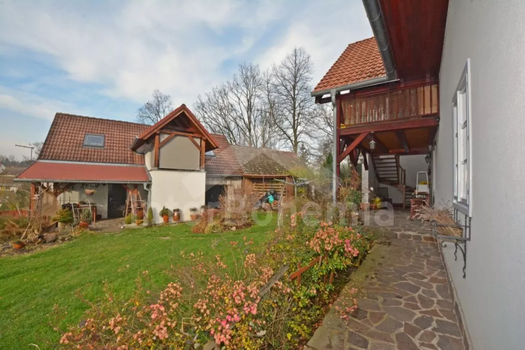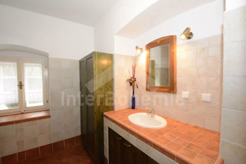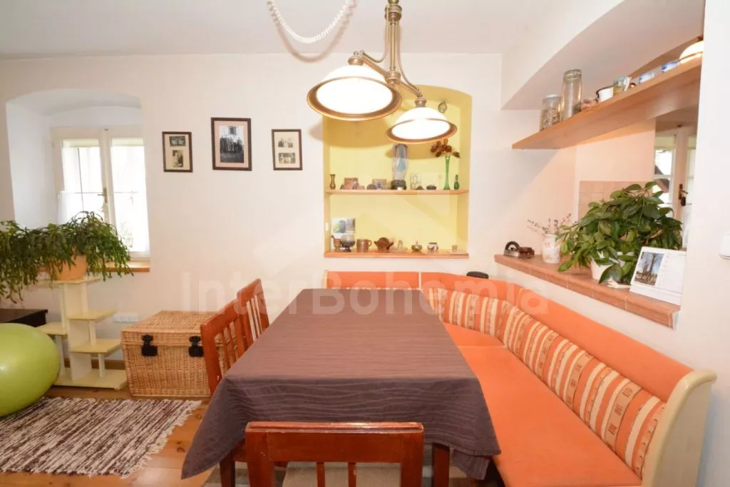 Volně stojící chalupa na vlastní, oplocené zahradě, po renovaci, příjemně a komfortně zařízená. Obýváte spodní patro chalupy s vlastním vchodem, podkroví pronajato samostatně. Vstup, hala, prostorný obývací pokoj spojený s kuchyní. V kuchyni krbová kamna. Kuchyňská linka se sklokeramickou varnou deskou, troubou, mikrovlnnou troubou, lednicí s mrazákem, kávovarem, rychlovarnou konvicí, nádobím a myčkou na nádobí. V obývacím pokoji jídelní stůl pro 5 osob, velká sedací souprava (rozkládací na extra lůžko pro 2 osoby), konferenční stolek a LCD televize se satelitem. Ložnice s dvoulůžkem. Koupelna se sprchovým koutem, umyvadlem a wc. Vytápění chalupy elektrickými akumulačkami + lokálně kamny. Hosté mají k dispozici společnou zahradu s posezením a přenosným grilem. Možnost rybaření v potoce na druhé části pozemku, který je přístupný ze zahrady po schodech a patří k chalupě. Parkování pro 1 osobní automobil.