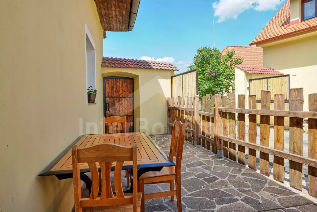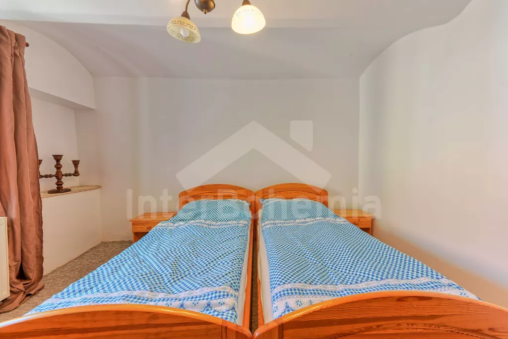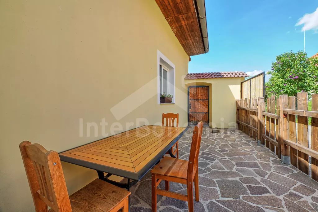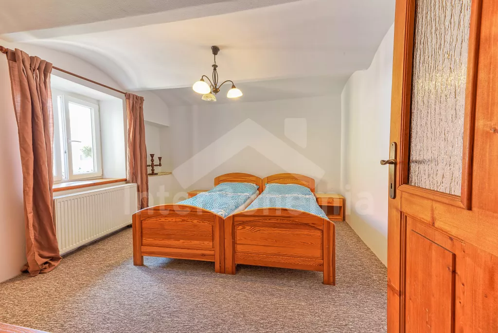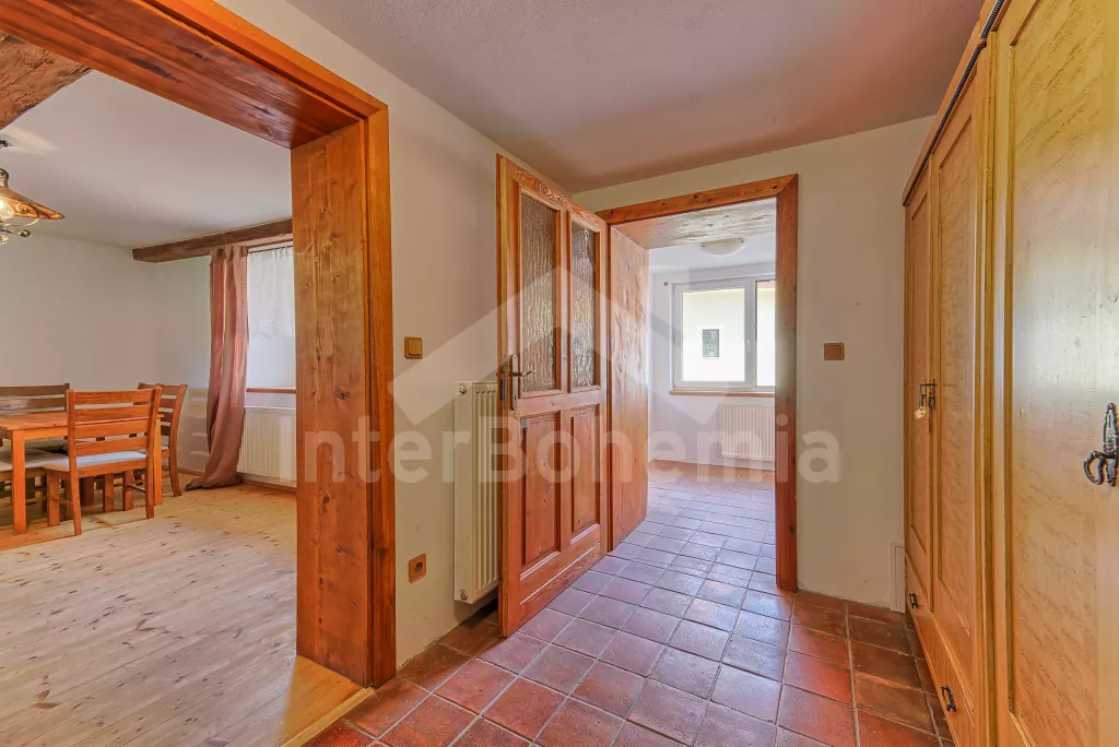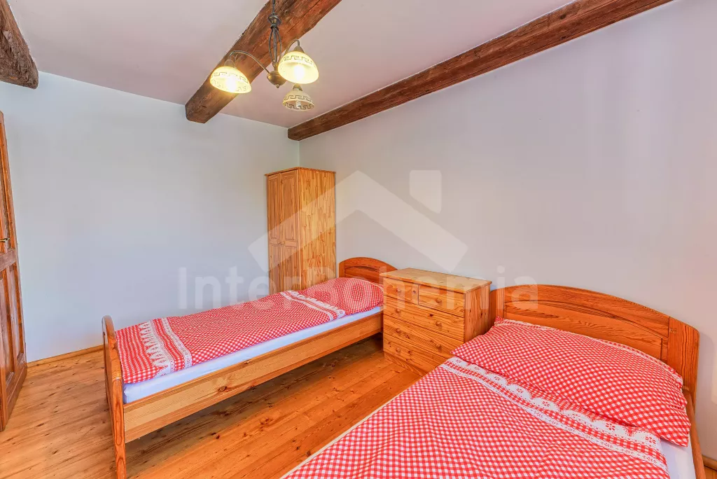Samostatně stojící chalupa, nově zrekonstruovaná v roce 2022. Vstup, hala, prostorná obývací místnost spojená s kuchyní. Kuchyňská linka vybavená plynovým sporákem, elektrickou troubou, mikrovlnnou troubou, lednicí s integrovaným mrazákem, rychlovarnou konvicí, nádobím a myčkou na nádobí. Jídelní stůl pro 6 osob, k dispozici LCD TV a krb. První ložnice s dvoulůžkem. Druhá ložnice s dvěma jednolůžky. Třetí ložnice s dvoulůžkem. Koupelna se sprchovým koutem, umyvadlem a vanou. Samostatné WC. Vytápění chalupy ústřední + krbovými kamny na tuhá palivy. Hosté mají k dispozici oplocenou předzahrádku se zahradním posezením a přenosný gril. Parkování před objektem pro 2 automobily.