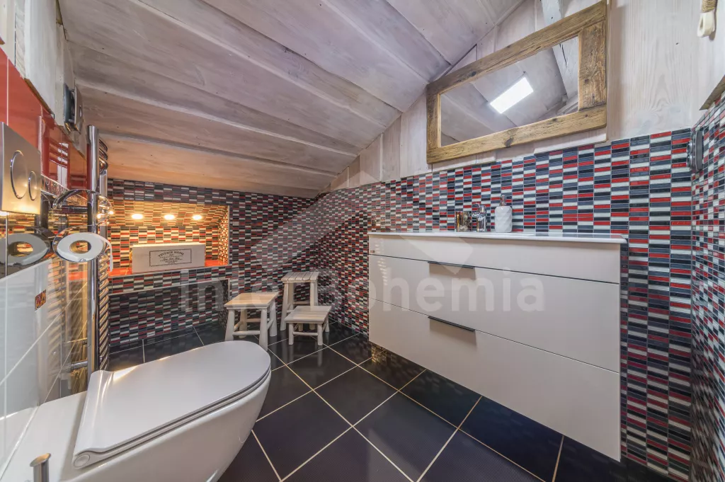 Přepychová chata na vlastním oploceném pozemku, skvěle vybavená a originálně zařízená. Obývací místnost se sedací soupravou, jídelním stolem, LED televizí s dvd a satelitem, domácí vinárnou, krbem a kuchyňským koutem. Nadstandardně vybavená kuchyně s velkou řadou spotřebičů a robotů, sklokeramickou varnou deskou, troubou, kávovarem, lednicí s mrazákem, nádobím a myčkou na nádobí. Ložnice s dvoulůžkem, LCD televizí, rádiem a vstupem na terasu. Koupelna s masážním sprchovým koutem, masážní vanou a dvěma umyvadly. Technická místnost s druhou lednicí a mrazákem, pračkou a sušičkou. Dětská herna - vybavena hračkami a LCD televizí. V podkroví otevřená ložnice s dvoulůžkem a pohovkou, odkud je vstup do druhé a třetí ložnice s dvoulůžky. Toaleta s umyvadlem. LCD televize se satelitem ve všech pokojích domu. Centrální vytápění objektu. Přímo z terasy mají hosté přístup do wellness místnosti s luxusní vířivkou a kombinovanou saunou. K dispozici také Cryo Ice Tub. Na zahradě je k dispozici hned několik venkovních posezení s možnostmi grilování a dětské hřiště. Po dohodě lze využívat také VIP místnost a vinný sklep. Parkování na soukromém parkovišti před chatou.