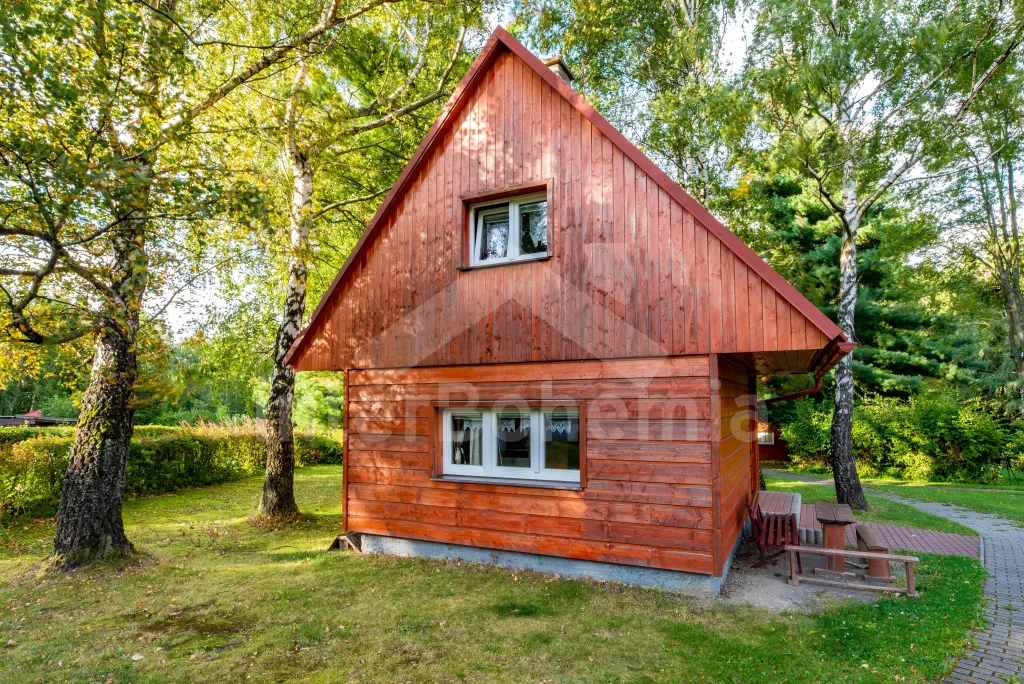 Volně stojící dřevěná chata s kapacitou 4 osoby, nacházející se v rekreačním areálu. V přízemí chodba s lednicí a skříní. Obývací pokoj s posezením a TV, na který přímo navazuje kuchyňka s plotýnkovým vařičem, varnou konvicí, nádobím a sprchovým boxem. WC a umyvadlo v samostatné místnosti. V podkroví 4 jednolůžka. Vytápění objektu elektrické. Venkovní posezení před chatou. Parkování pro jedno vozidlo na parkovišti cca 30 m od chaty zdarma (další za příplatek).