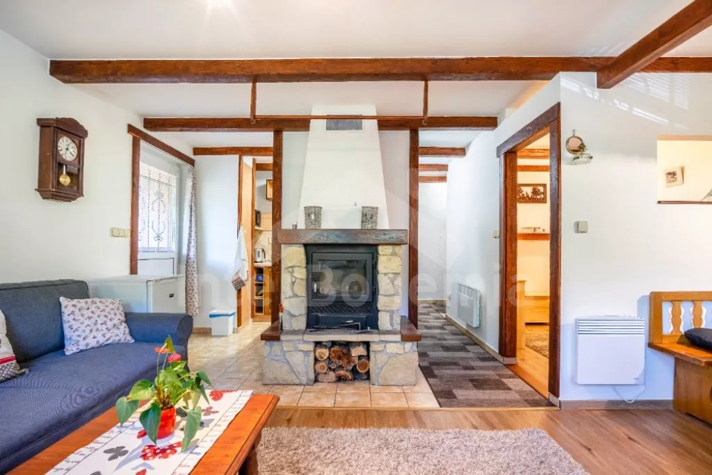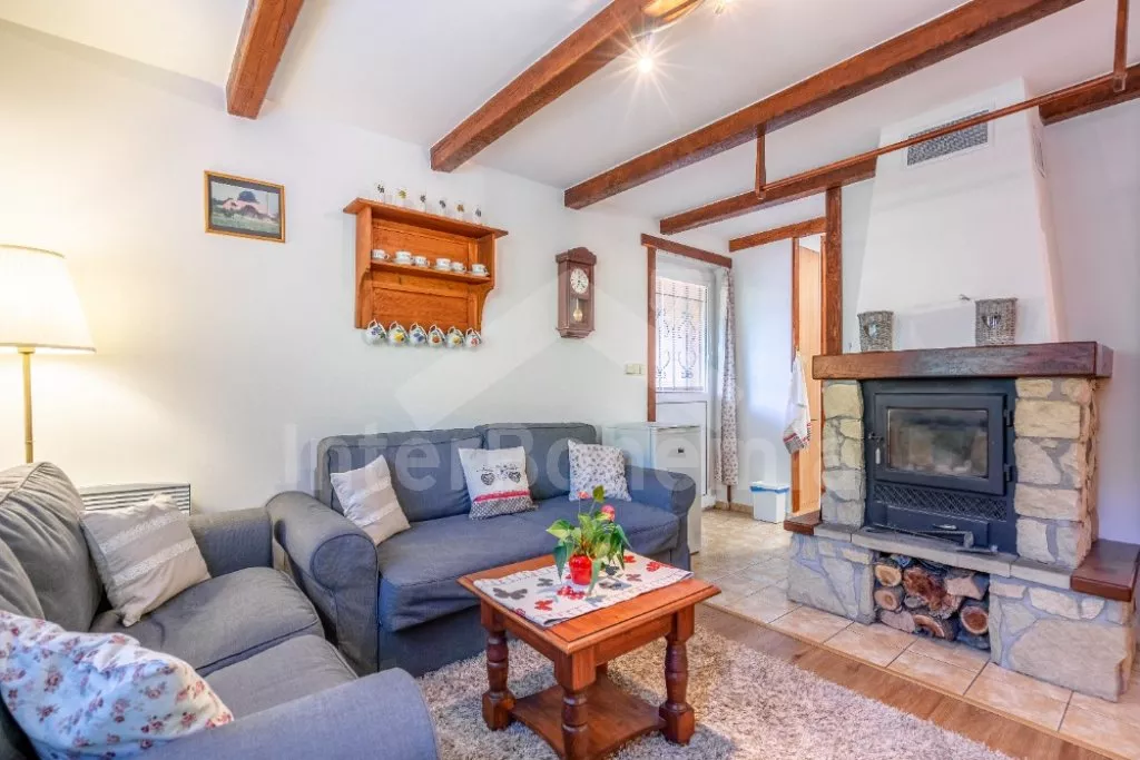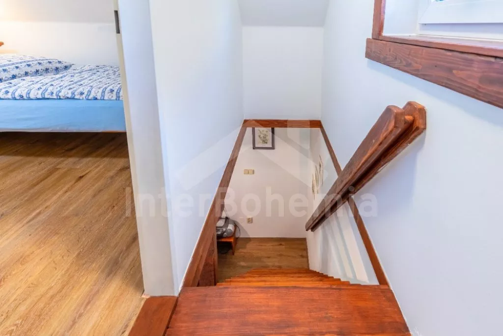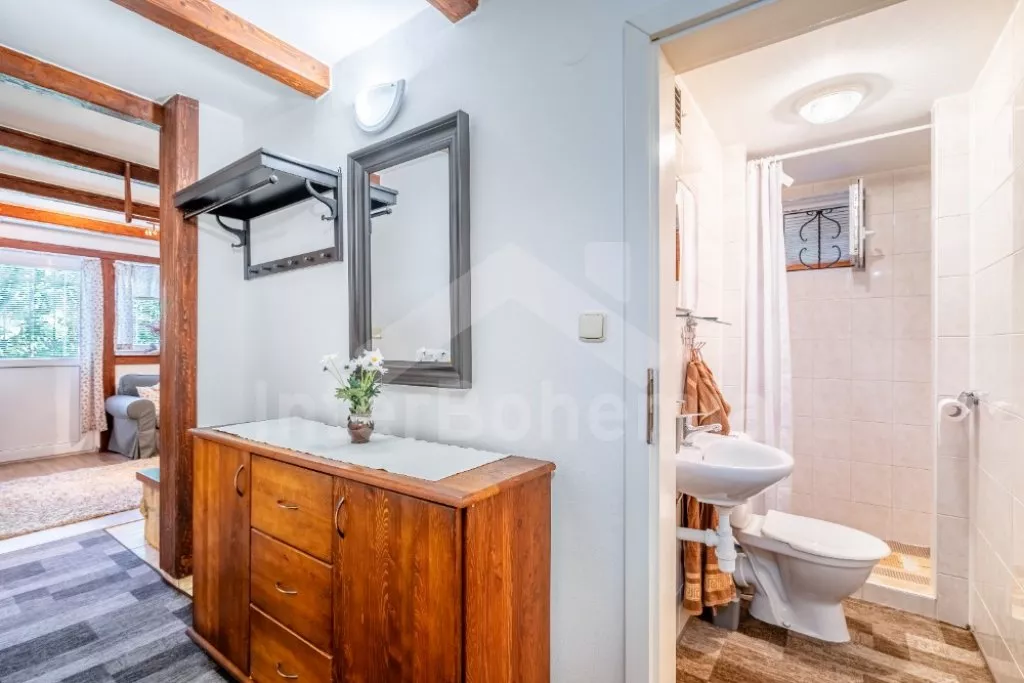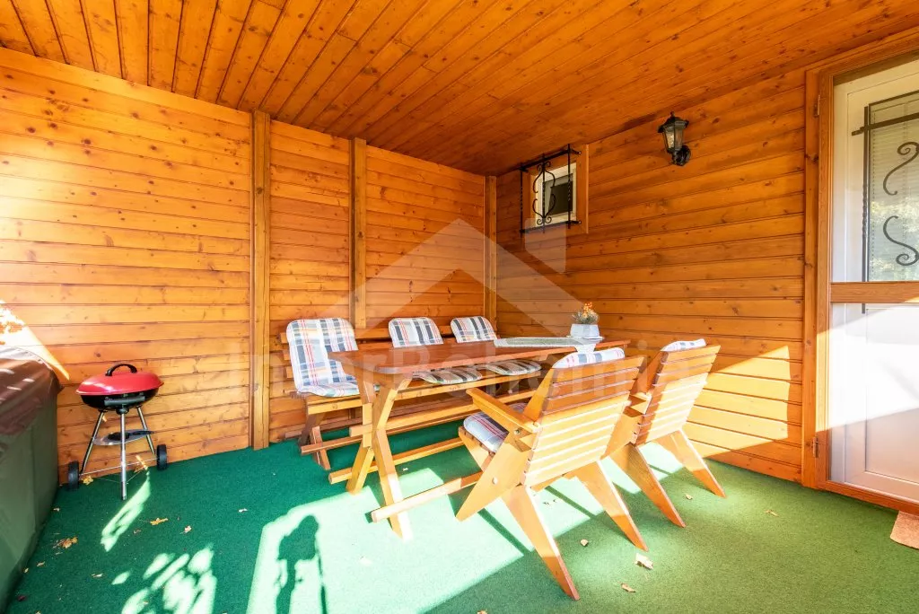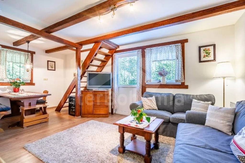 Chata na polosamotě, se zastřešenou terasou a vyžitím pro děti. Hustý listnatý les a nedaleké louky v okolí vytváří ideální místo pro relaxaci v duchu přírody. Vstup, obývací pokoj se sedací soupravou, krbem, TV, rádiem, mini vinotékou, společenskými hrami a jídelním koutem. Ložnice s palandou. Kuchyně s el. sporákem se sklokeramickou deskou, mikrovlnnou troubou, rychlovarnou konvicí, kávovarem s mlýnkem na zrnkovou kávu, lednicí a myčkou nádobí. Koupelna se sprchou, umyvadlem a toaletou. V podkroví ložnice s dvoulůžkem a 2x jednolůžkem. Vytápění objektu krbem s krbovou vložkou a k dispozici také přímotopy. Zastřešená terasa s grilem a posezením jak pro děti, tak dospělé. Neoplocená zahrada s ohništěm, pískovištěm a houpačkou pro děti. Parkování před objektem.