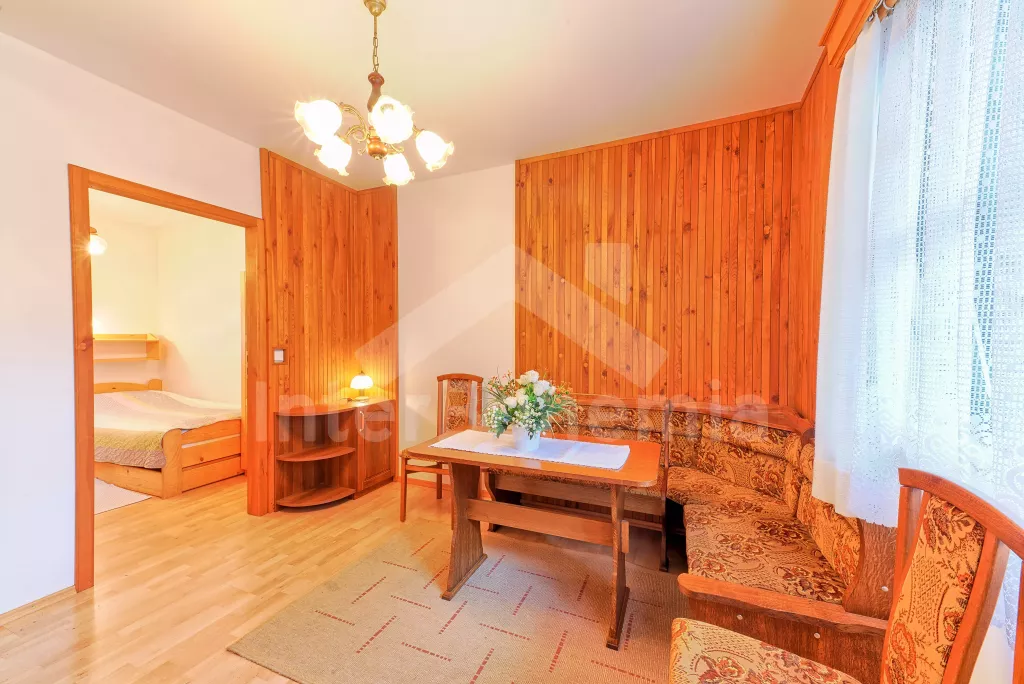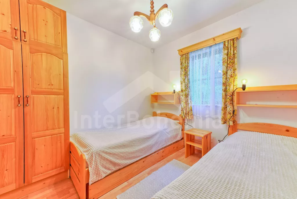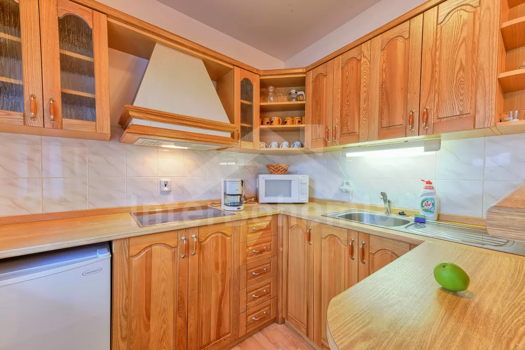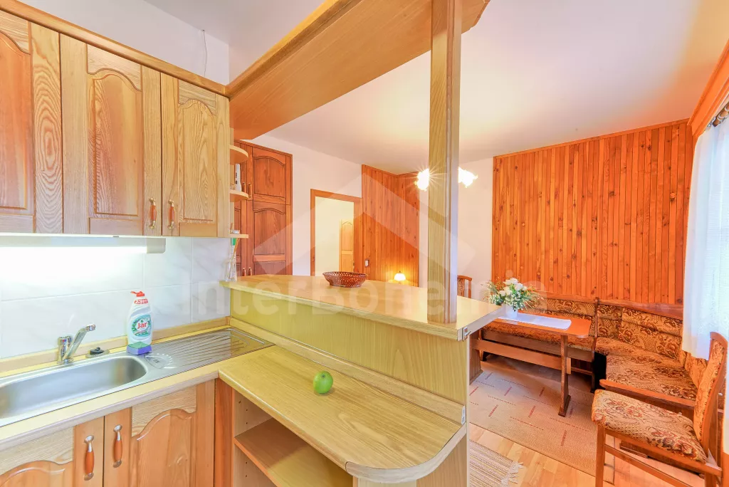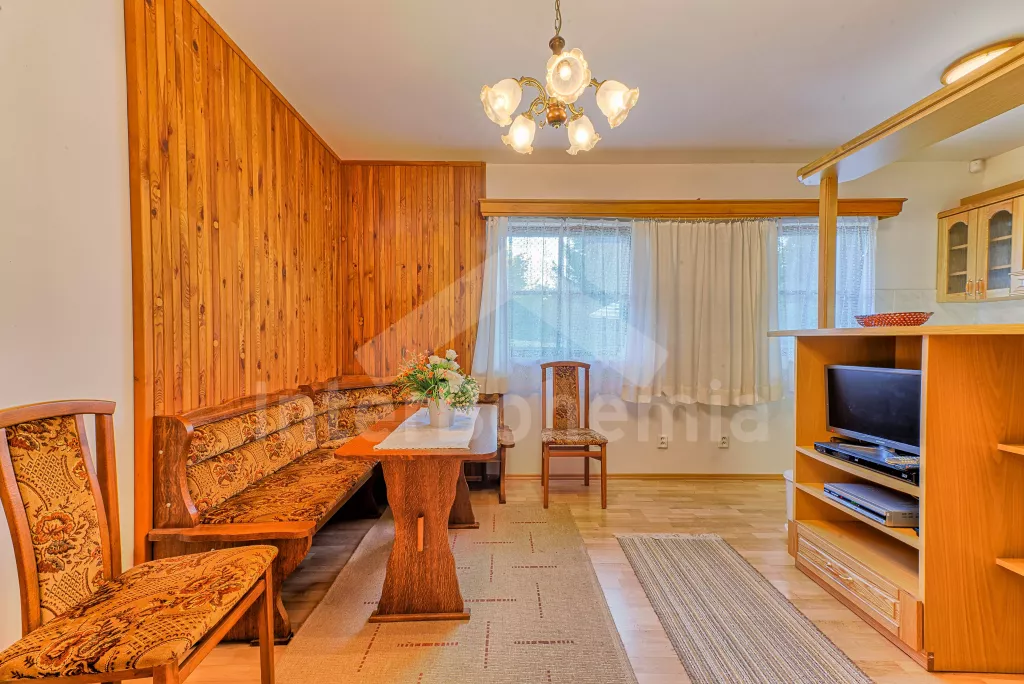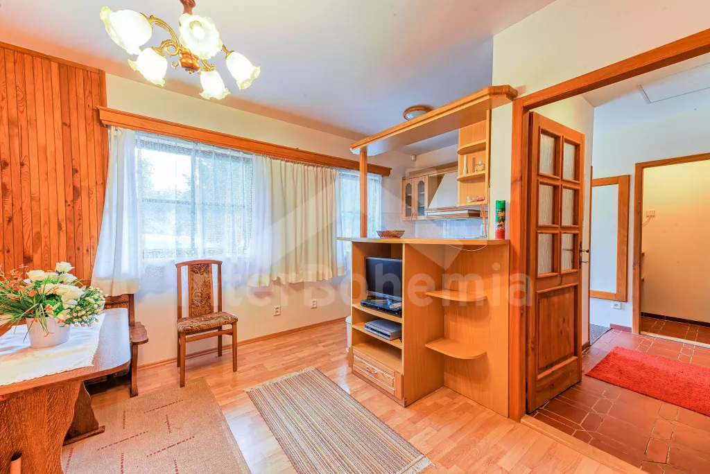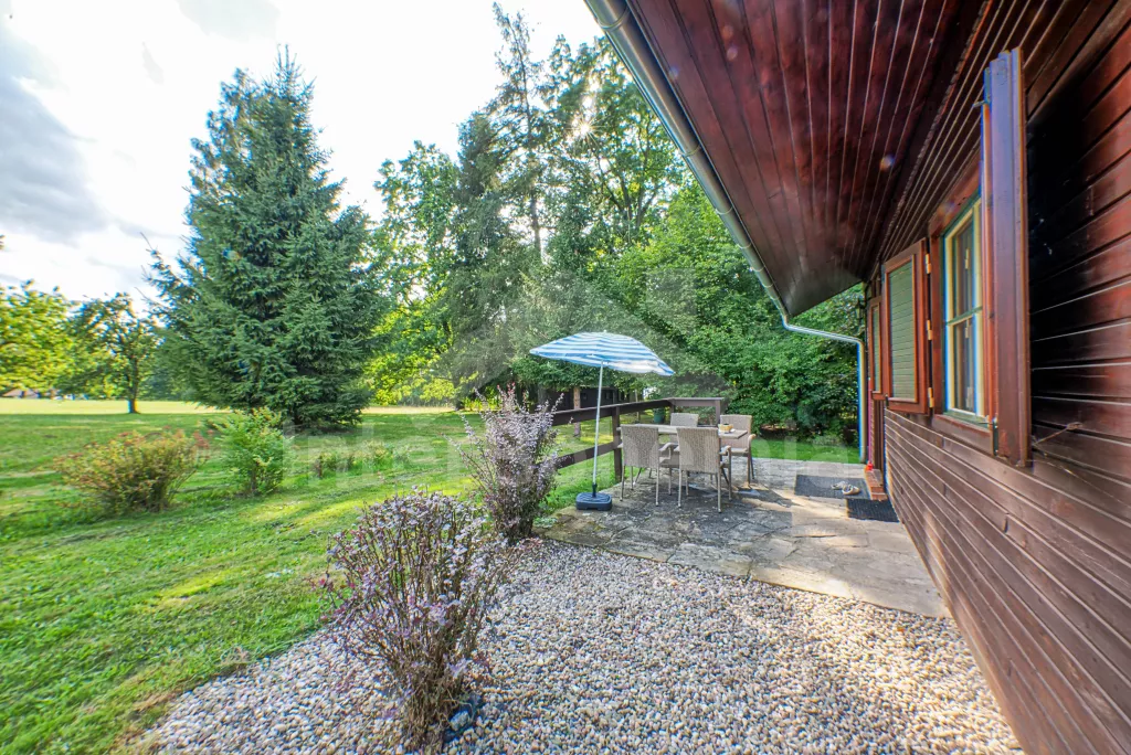 Samostatný bungalov. Malý, ale velmi pěkný víkendový dům, komfortně zařízený. Vstup, hala, obývací pokoj s pohovkou, jídelním stolem, satelitní TV a rádiem. Moderní otevřená kuchyně se 4 elektrickými… Více informací