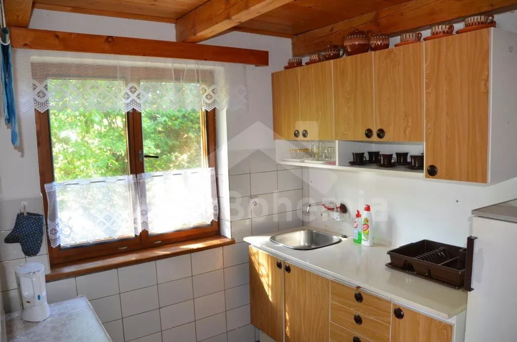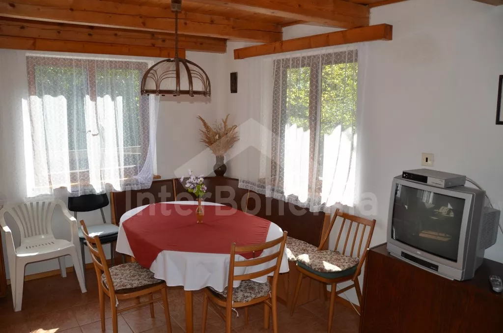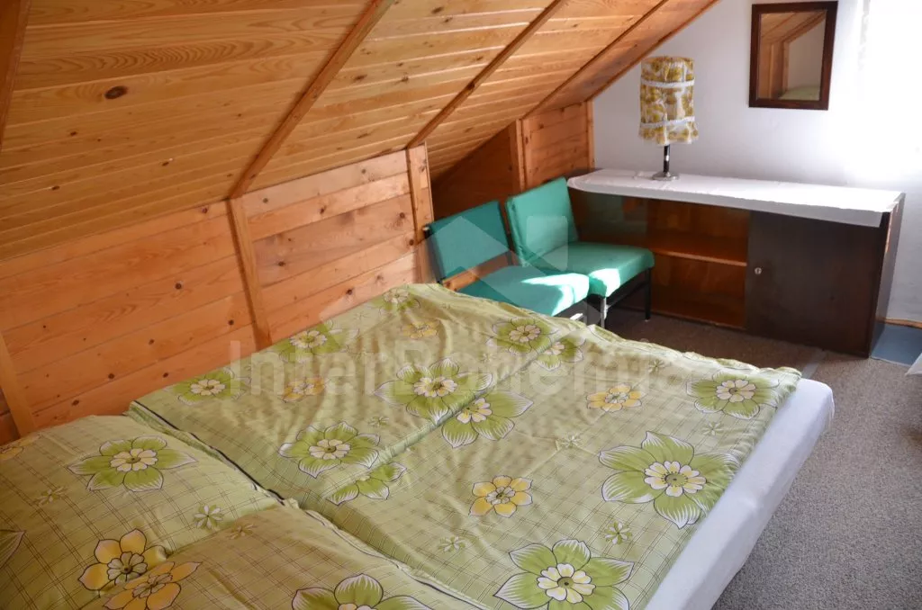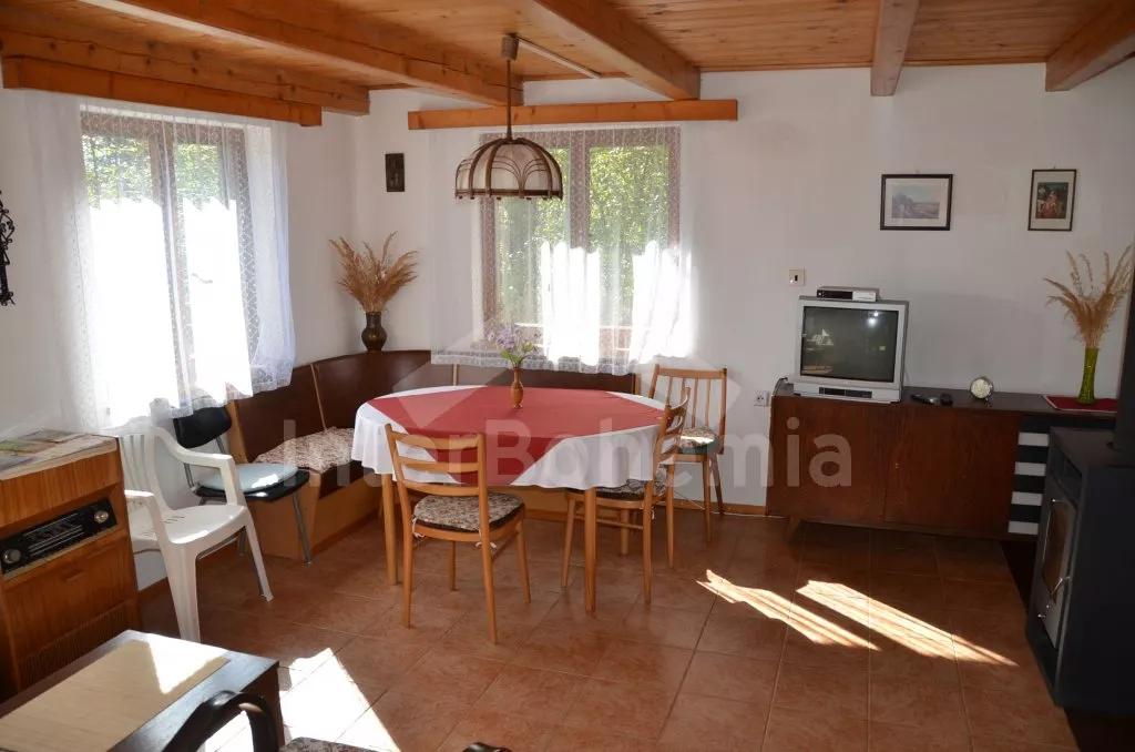 Volně stojící chata, dobře a útulně zařízená. Vstup, obývací pokoj se sedací soupravou a dvěma křesly, jídelním stolem pro 6 osob, krbovými kamny a televizí se satelitním příjmem. Otevřená kuchyně s… Více informací