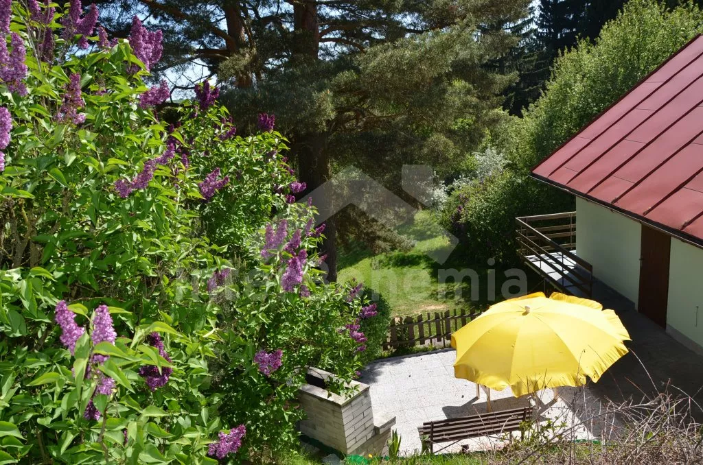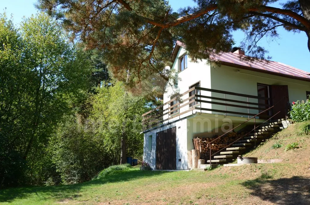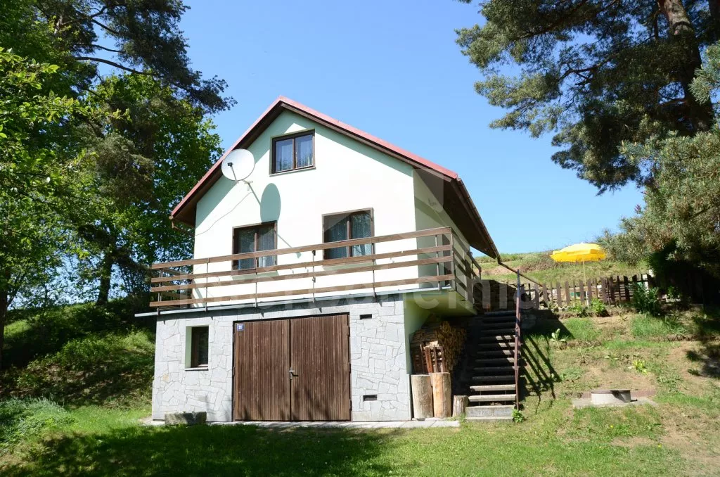 Volně stojící chata, dobře a útulně zařízená. Vstup, obývací pokoj se sedací soupravou a dvěma křesly, jídelním stolem pro 6 osob, krbovými kamny a televizí se satelitním příjmem. Otevřená kuchyně s plynovým sporákem, lednicí, mikrovlnnou troubou a varnou konvicí. V patře se nachází dvě ložnice – jedna s dvojlůžkem a druhá s jedním dvojlůžkem a dvěma samostatnými lůžky. V suterénu chaty se nachází koupelna se sprchovým koutem a toaletou a místnost vhodná pro úschovu kol. Vytápěno krbovými kamny. Chata stojí na vlastním (neoploceném) pozemku, k dispozici je hezká terasa se zahradním nábytkem, zastřešená pergola k posezení u zahradního krbu. Vlastní parkoviště.