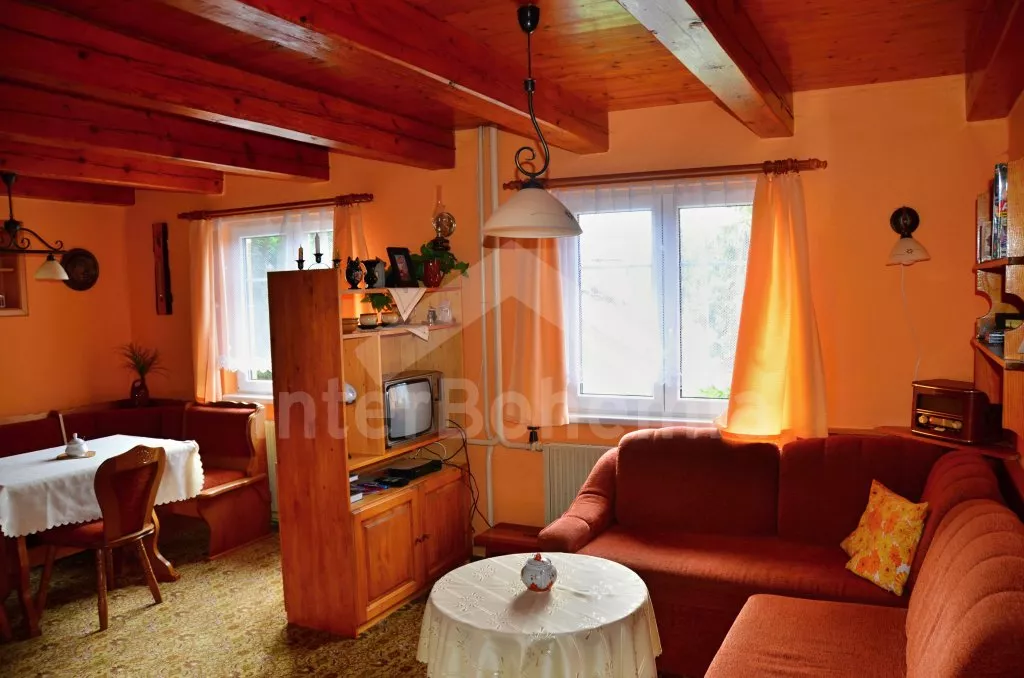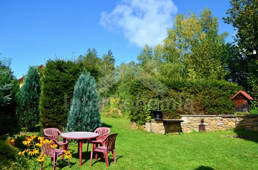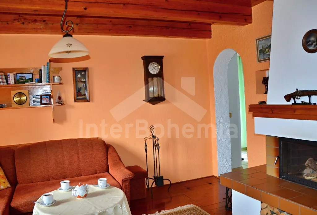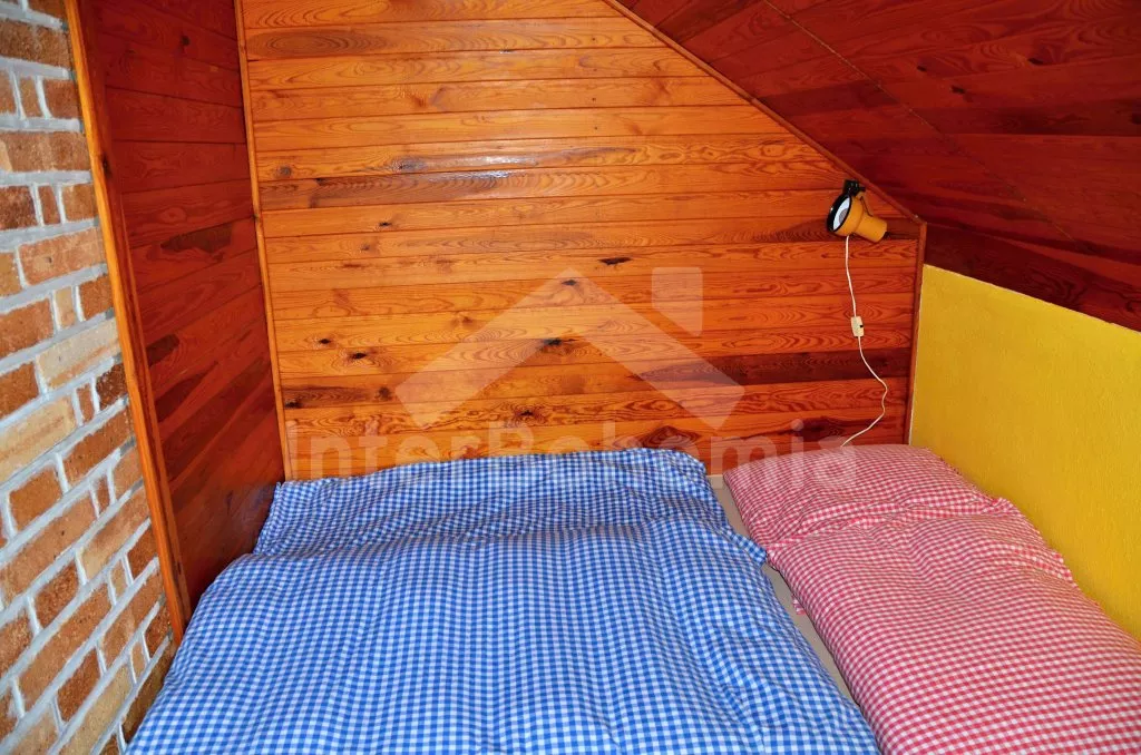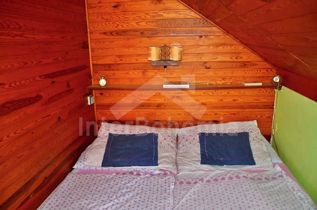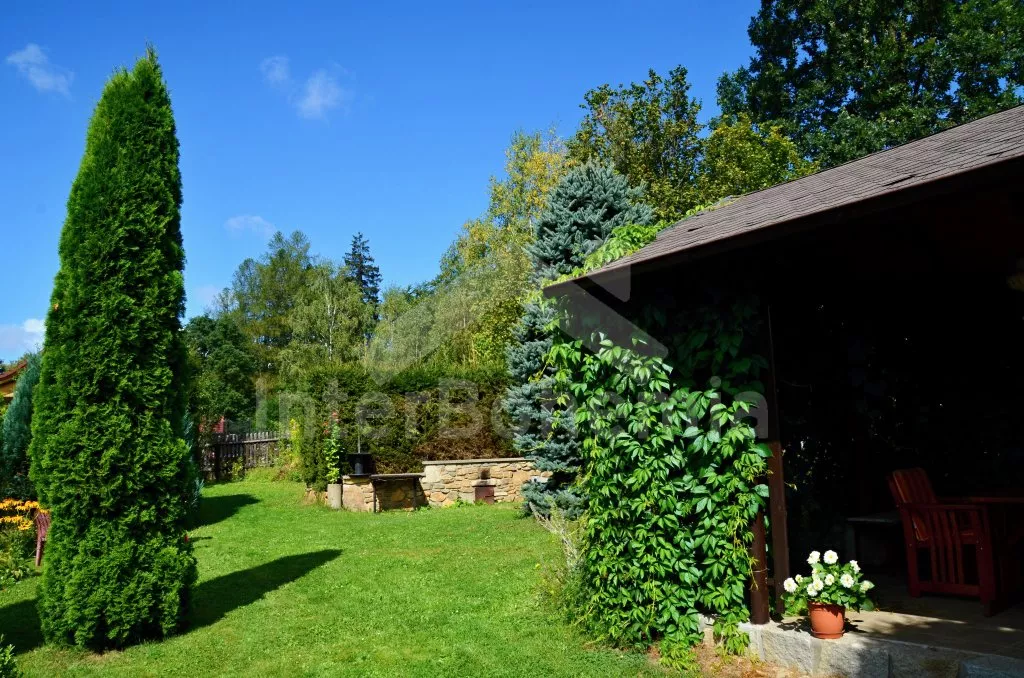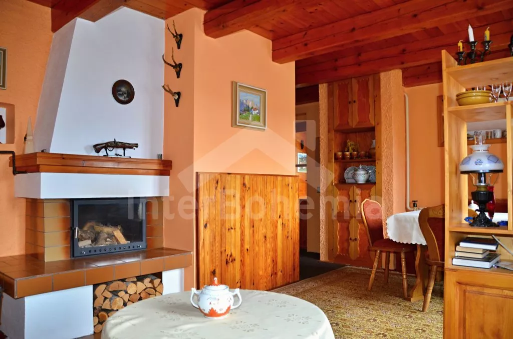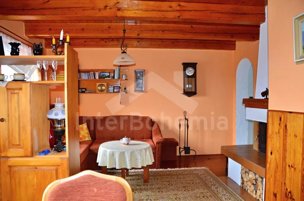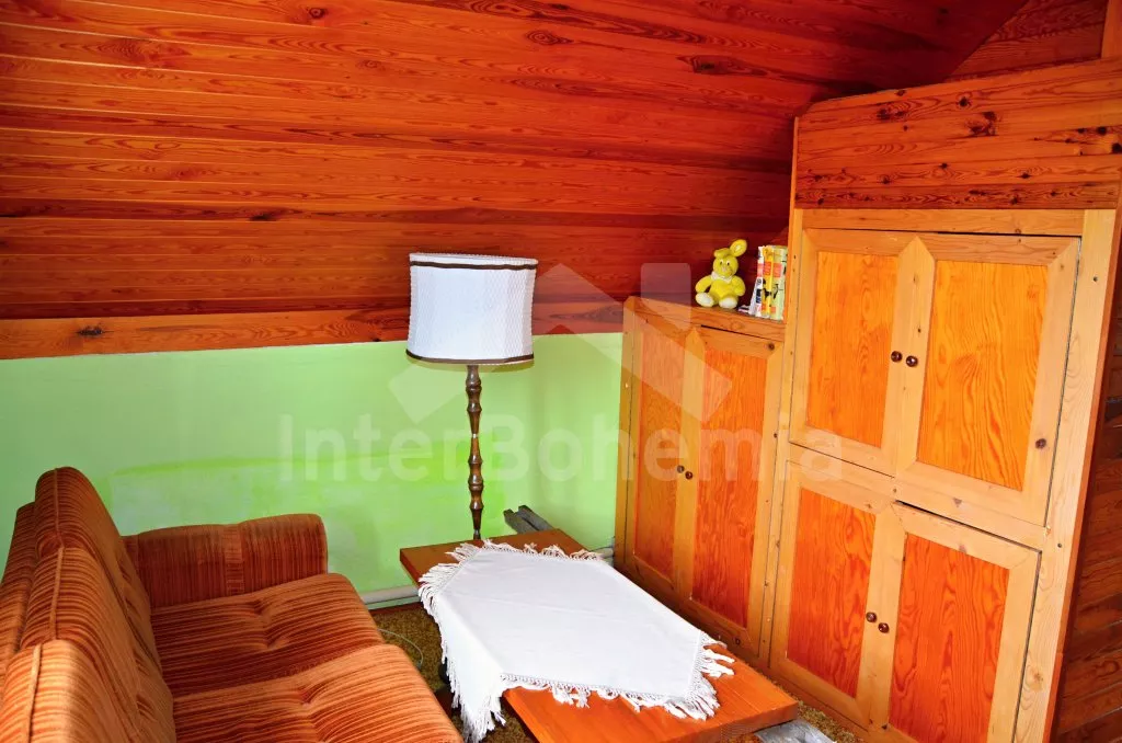 Volně stojící chata, pohodlně a pěkně zařízená s četnými prvky dřeva. Vstup přes verandu s toaletou. Prostorný obývací pokoj s posezením, krbem, TV, jídelním koutem s rohovou lavicí a vstupem do kuchyně s keramickou varnou deskou, lednicí, mikrovlnnou troubou a varnou konvicí. Koupelna se sprchou a umyvadlem. Schody do patra se třemi ložnicemi, první větší průchozí s posezením a jedním dvoulůžkem, vstupem na balkon a do druhé ložnice se dvěma samostatnými lůžky. Třetí ložnice s jedním dvoulůžkem. Vytápění ústřední etážové a krbem na tuhá paliva. Chata stojí na vlastním kompletně oploceném pozemku se zahradou, k dispozici je plastový zahradní nábytek a pergola s dřevěným nábytkem, zahradní solární sprcha a ohniště s grilem. Parkování na pozemku (i pro více osobních vozů).