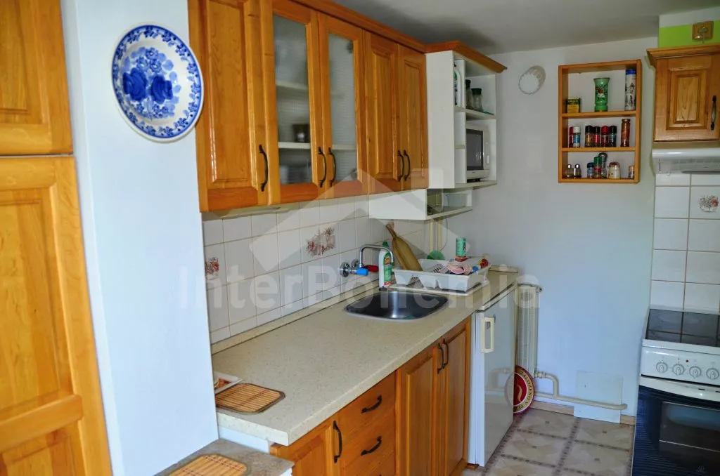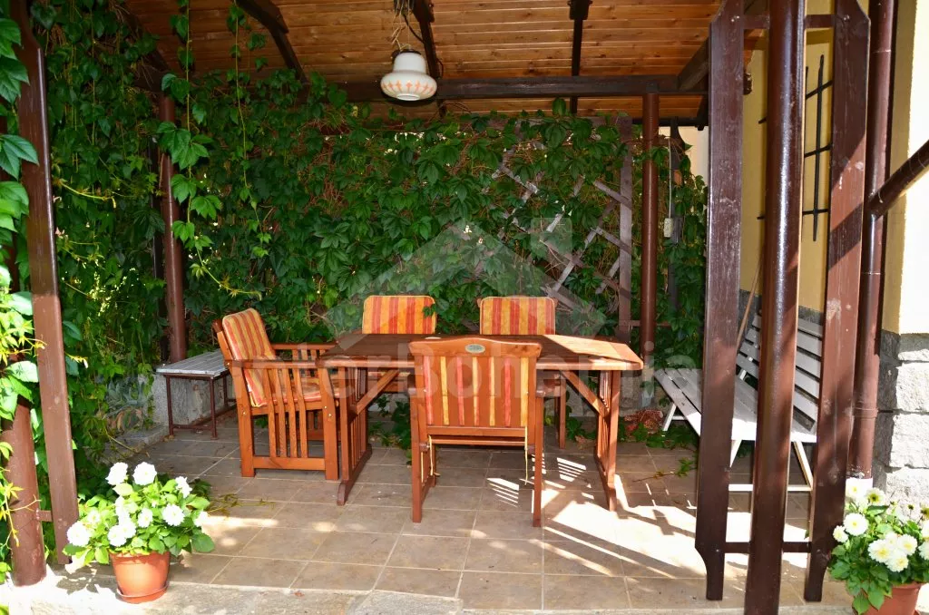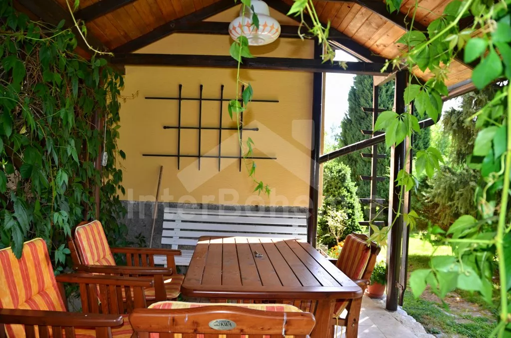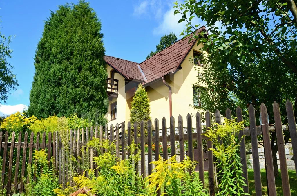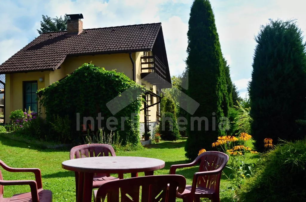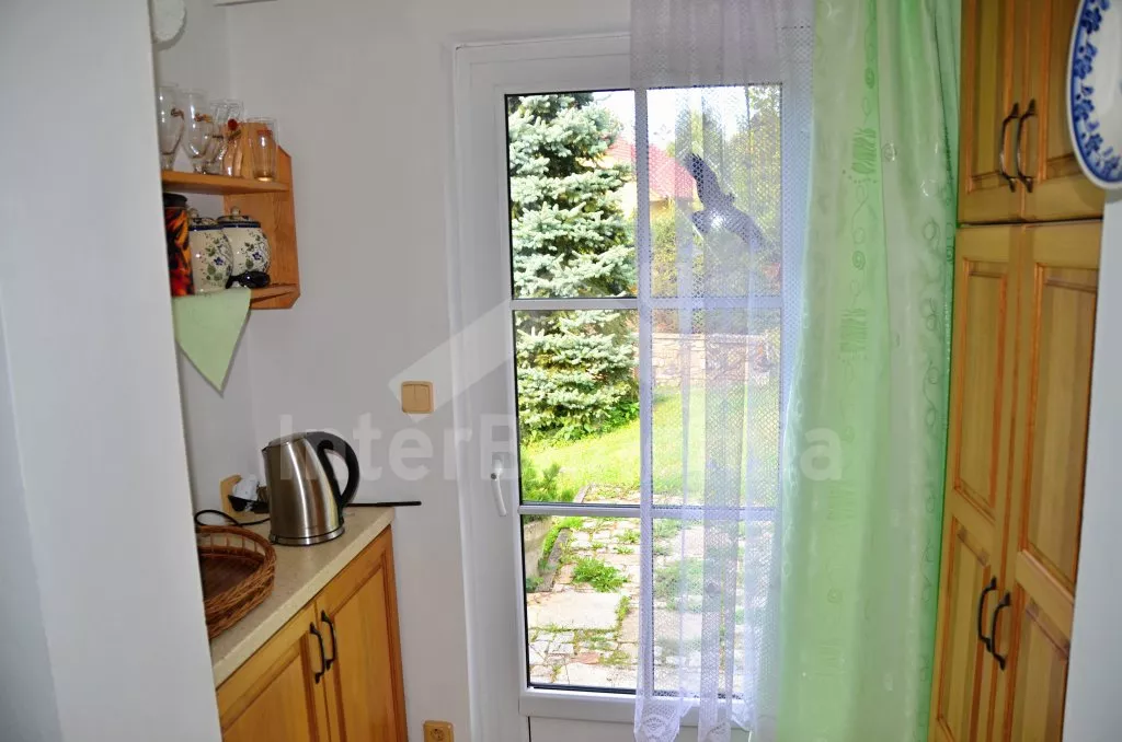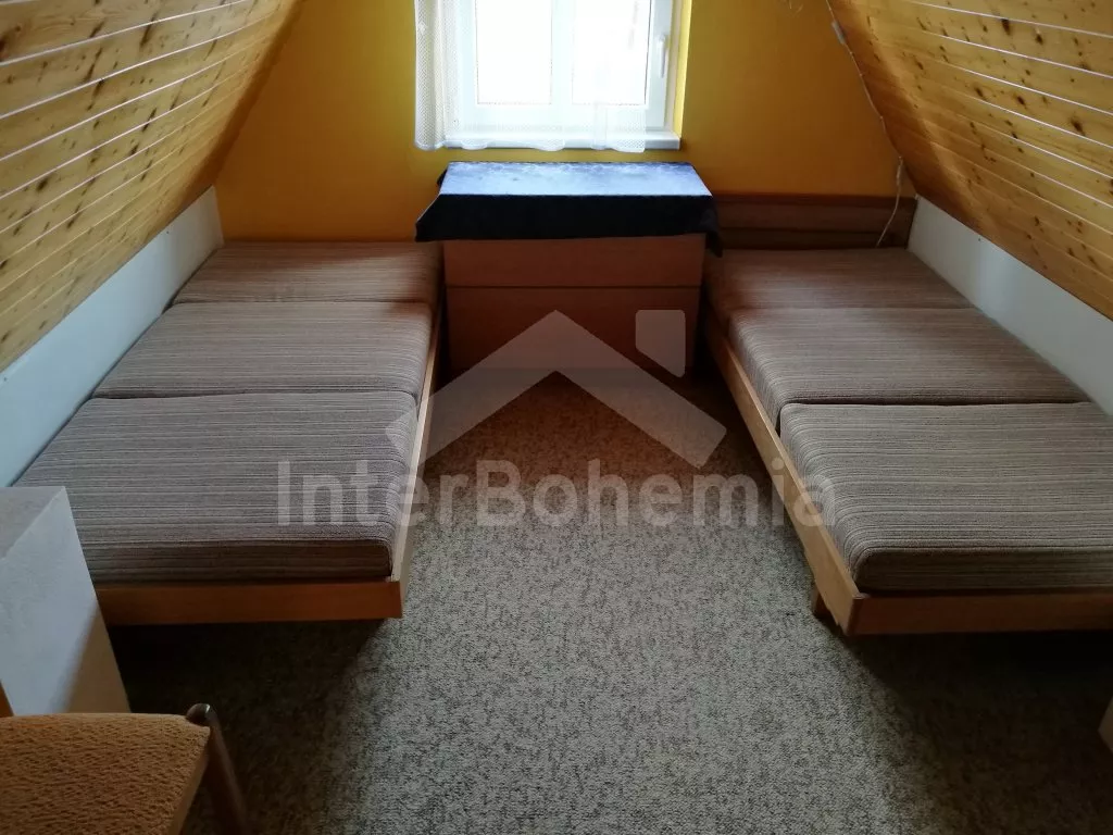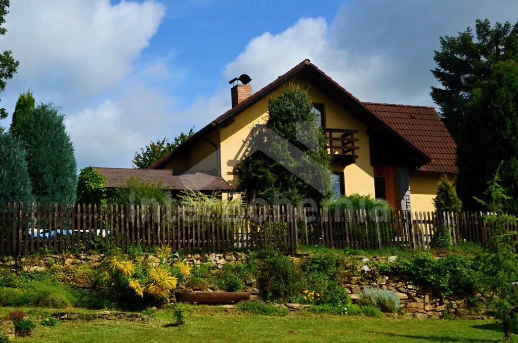 Volně stojící chata, pohodlně a pěkně zařízená s četnými prvky dřeva. Vstup přes verandu s toaletou. Prostorný obývací pokoj s posezením, krbem, TV, jídelním koutem s rohovou lavicí a vstupem do kuchyně s keramickou varnou deskou, lednicí, mikrovlnnou troubou a varnou konvicí. Koupelna se sprchou a umyvadlem. Schody do patra se třemi ložnicemi, první větší průchozí s posezením a jedním dvoulůžkem, vstupem na balkon a do druhé ložnice se dvěma samostatnými lůžky. Třetí ložnice s jedním dvoulůžkem. Vytápění ústřední etážové a krbem na tuhá paliva. Chata stojí na vlastním kompletně oploceném pozemku se zahradou, k dispozici je plastový zahradní nábytek a pergola s dřevěným nábytkem, zahradní solární sprcha a ohniště s grilem. Parkování na pozemku (i pro více osobních vozů).