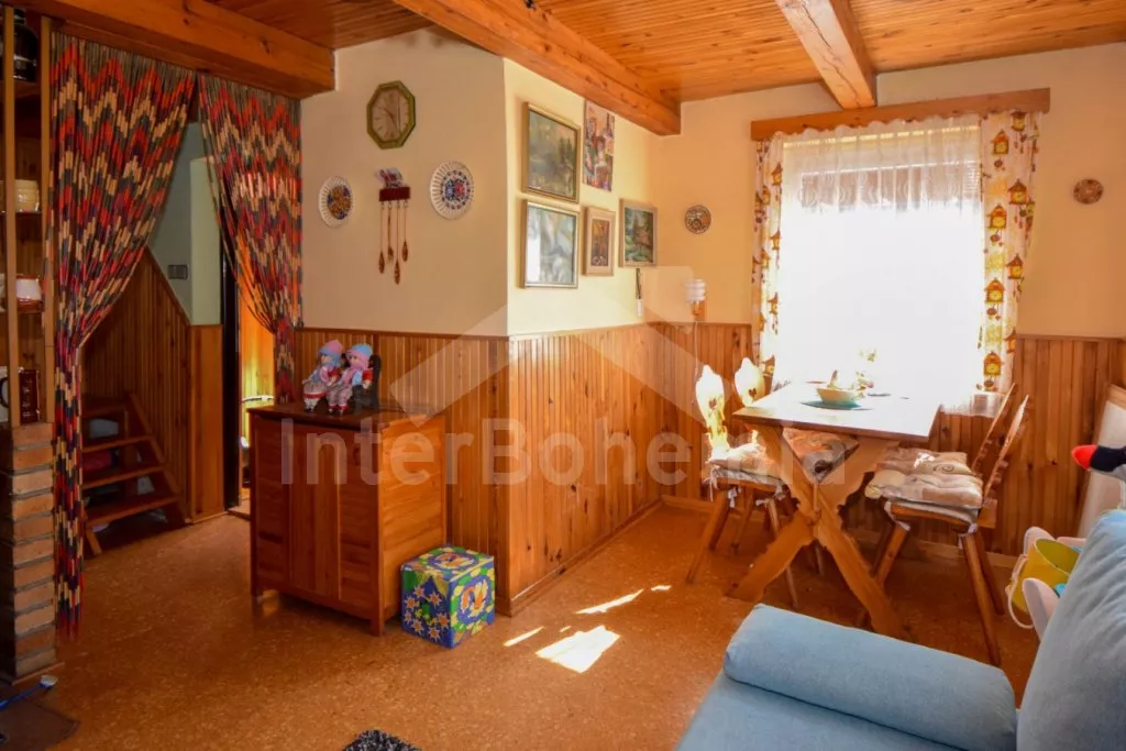 Vzdálenosti: Základní potraviny (Žimutice) 1,5 km, další obchody, supermarket a restaurace (Týn nad Vltavou) 6 km. Koupání v Bečickém rybníku 100 m. Koupání v řece, sauna a tenis (Týn nad Vltavou) 6 km. Krytý bazén (Bechyně) 12 km. Golf (Obora u Bechyně) 14 km a (Hluboká nad Vltavou) 30 km, jízda na koních (Mažice) 15 km. Vodní nádrž Hněvkovice 8 km. Rybaření s povolenkou v řece Vltavě 6 km. Les přímo u chaty. - Fotogalerie