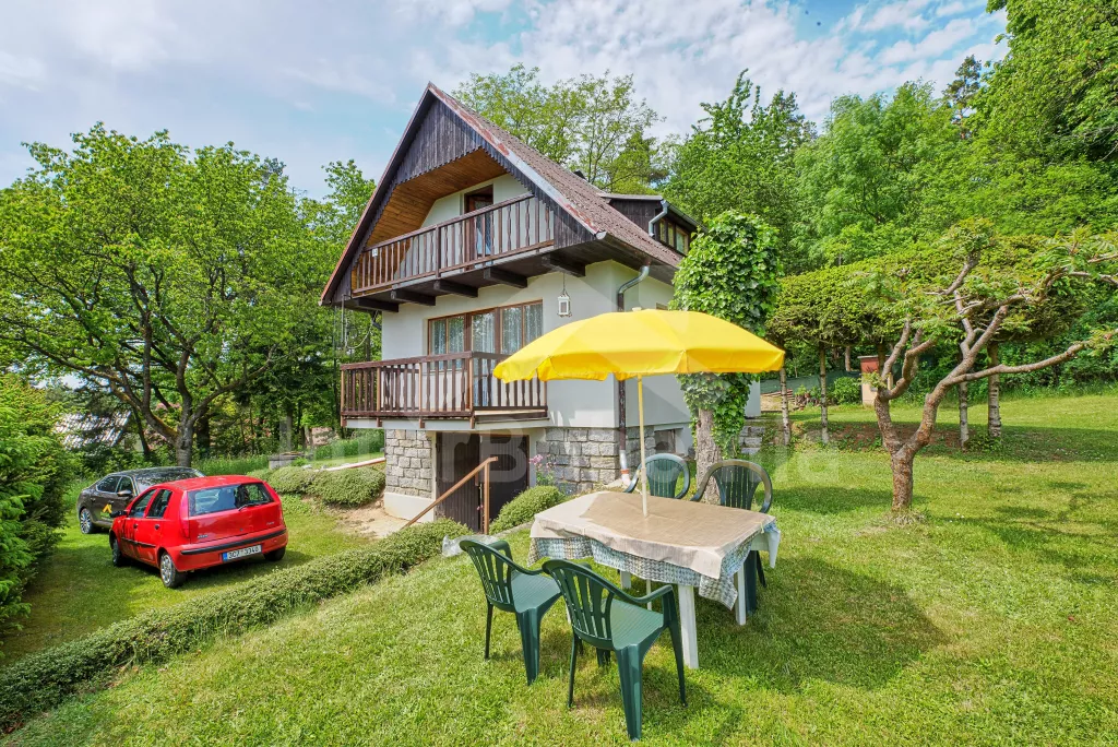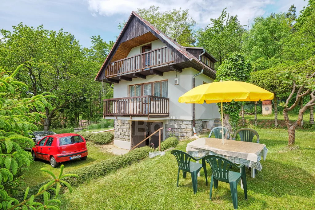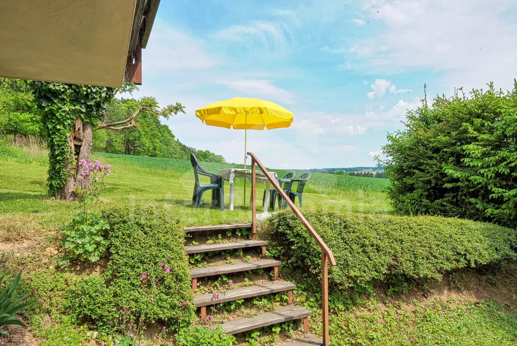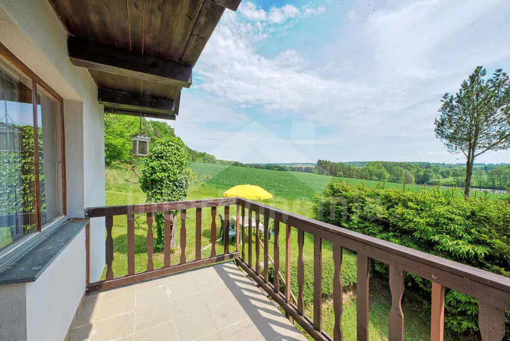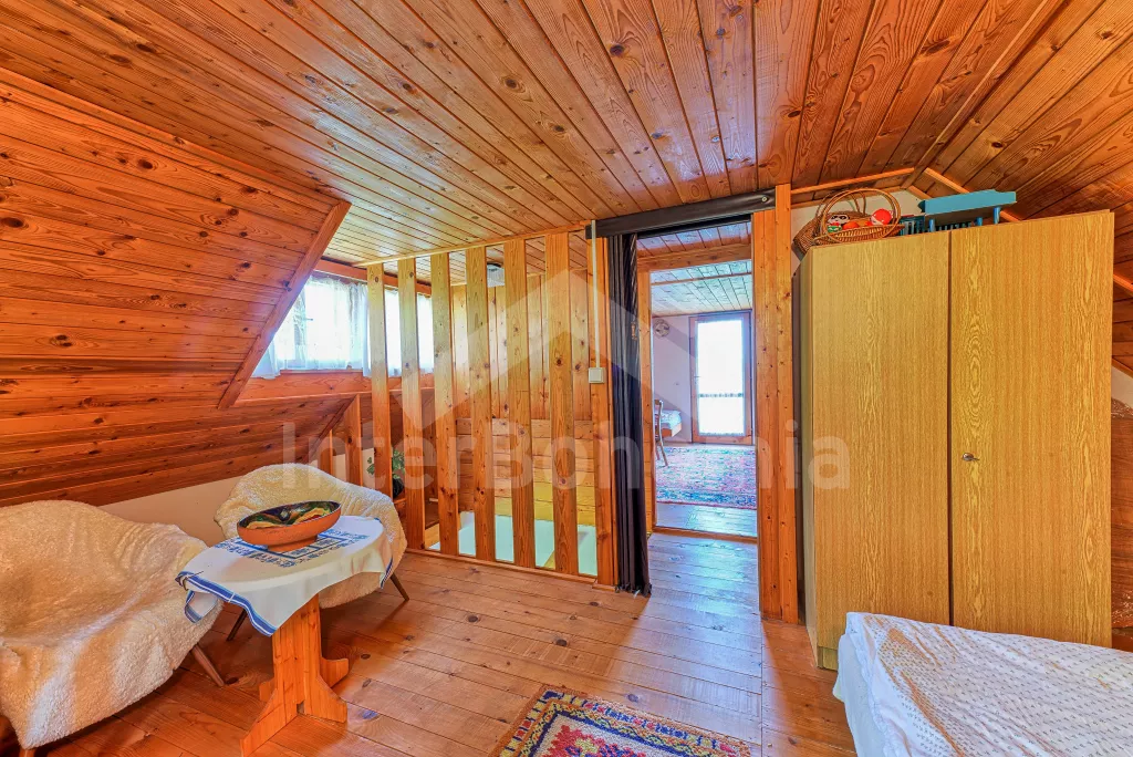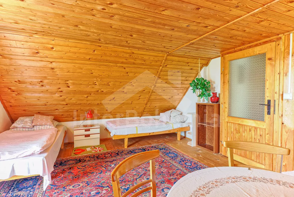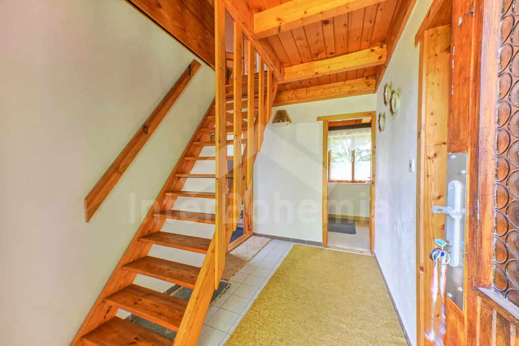 Volně stojící chata, na polosamotě u lesa s pěkným výhledem na louky, les a rybník. Obývací místnost se sedací soupravou a jídelním koutem, balkonem, televizí, rádiem, kuchyní s lednicí, plynovým sporákem se 4 plotýnkami a elektrickou troubou, kávovarem a mikrovlnou troubou. Koupelna se sprchou a toaletou. Nahoře je ložnice s dvojlůžkem a druhá ložnice se třemi jednolůžky a balkon. Zahrada se zahradním nábytkem a ohništěm. Vlastní parkoviště a garáž.