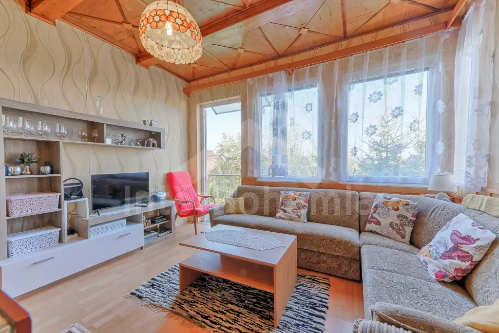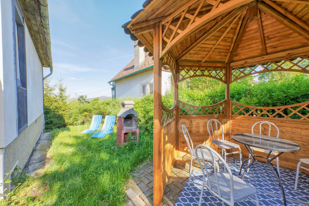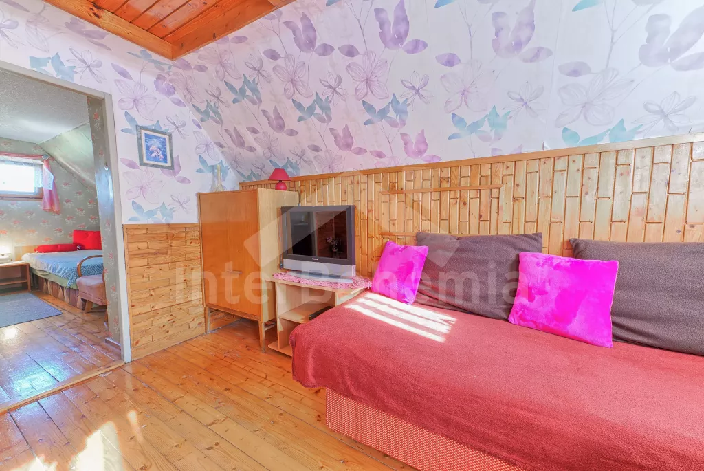 Volně stojící chata, z venku skromně vypadající ale uvnitř hezky, čistě a útulně zařízená. Vstup přes verandu s posezením, chodba. Obývací pokoj se sedací soupravou, televizí se satelitním příjmem a… Více informací
