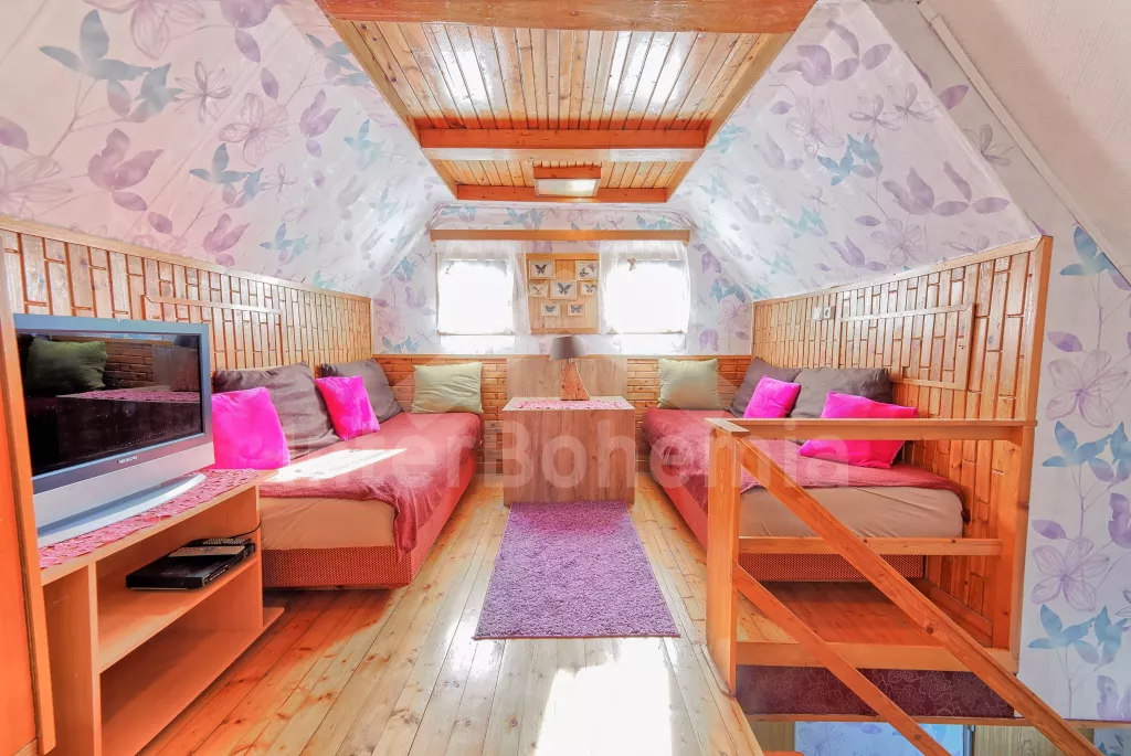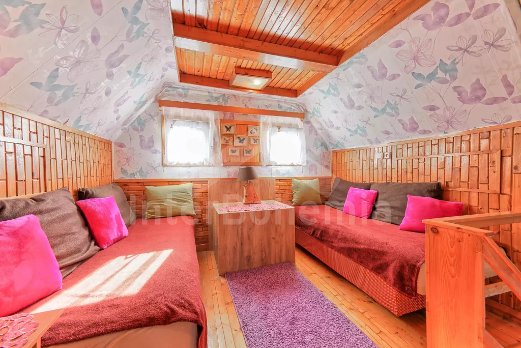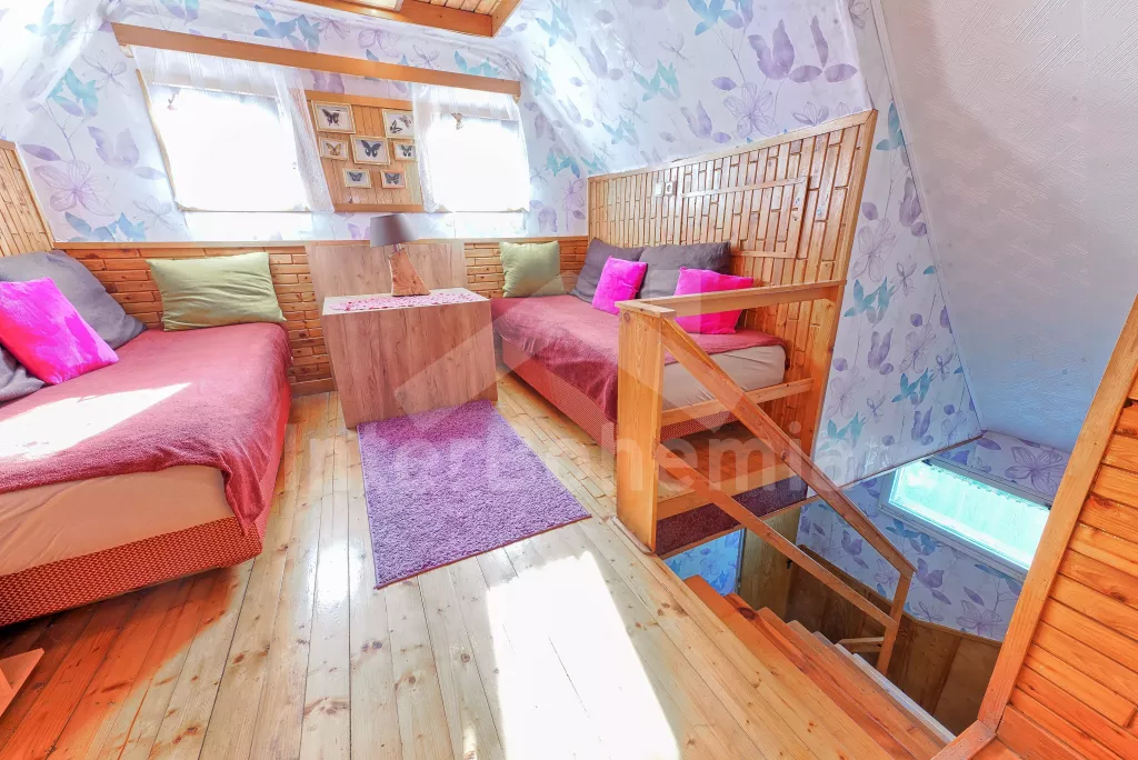 Dětská postýlka na požádání. Domácí mazlíček povolen za poplatek 450,-Kč/zvíře/týden. Wifi. Na místě se hradí spotřeba el. energie nad 50 kWh za týden. Chata je vhodná pro maximálně 4/6 osob + miminko.