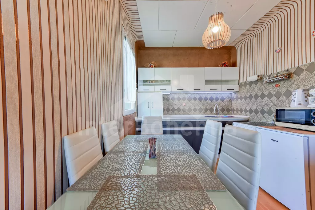Velmi dobře vybavená kuchyně, příjemný obytný prostor. Jednání majitelky velmi vstřícné. Šikovné bylo uschování kol v garáži.