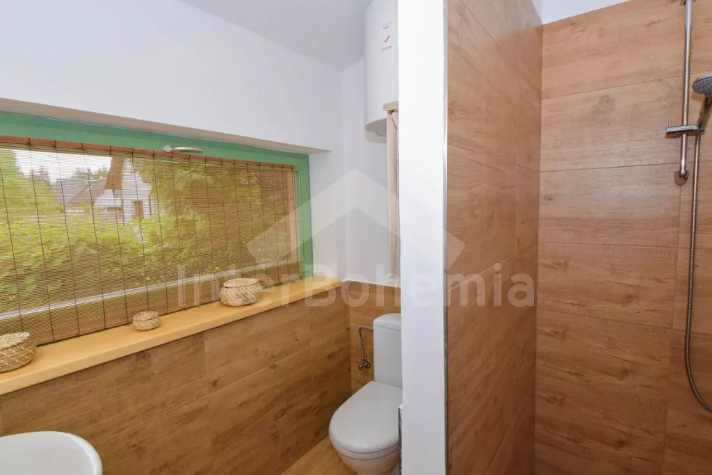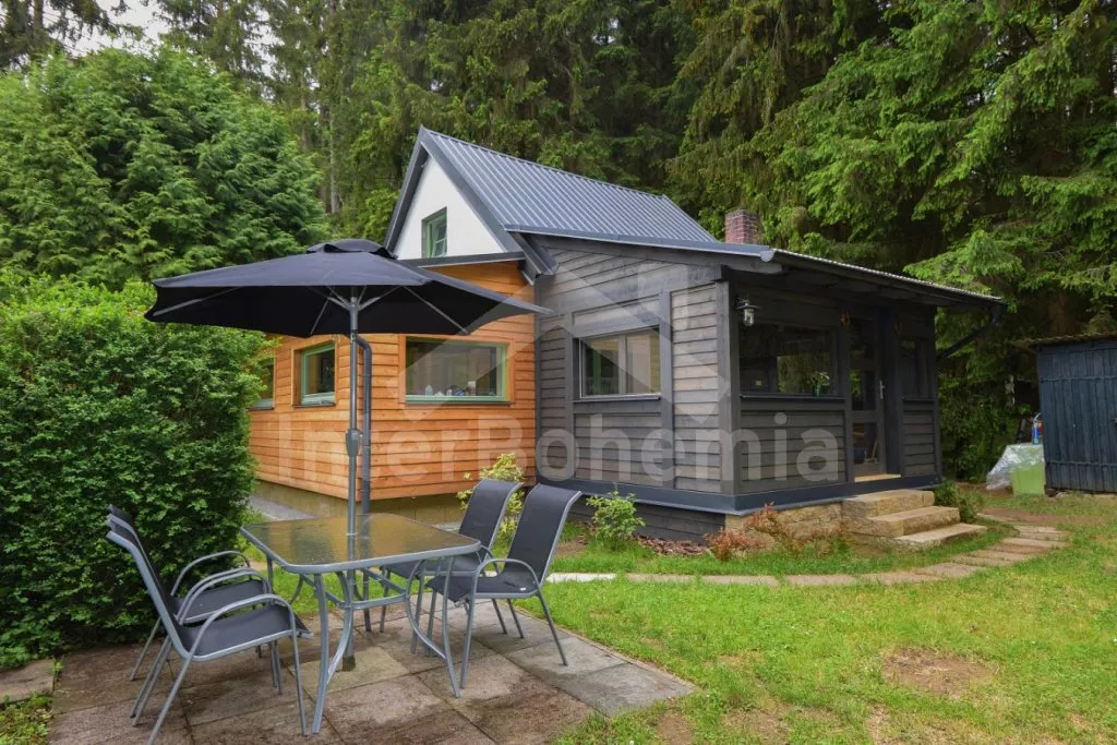 V roce 2020 nově postavená chata, příjemně a čistě zařízená. Kuchyně s plynovým sporákem, troubou, mikrovlnnou troubou, lednicí, mrazákem, kávovarem, rychlovarnou konvicí a nádobím. Obývací pokoj se sedací soupravou, minivěží a LCD televizí. Koupelna se sprchovým koutem, umyvadlem a WC. V podkroví ložnice s dvěma dvoulůžky a jedním jednolůžkem. Kompletně uzavřená veranda s jídelním stolem. Vytápění objektu krbovými kamny. Dále je k dispozici klimatizace na chlazení a tepelné čerpadlo na topení - možnost vytopit chatu předem na dálku skrze Wi-Fi připojení. Na částečně oplocené zahradě venkovní posezení se slunečníkem, houpačka a ohniště s roštem. Rybaření je možné přímo u chaty. K dispozici kánoe pro 2-3 osoby. Parkování přímo u chaty.