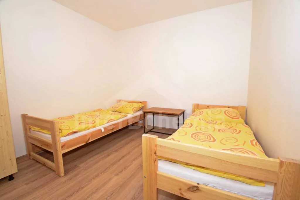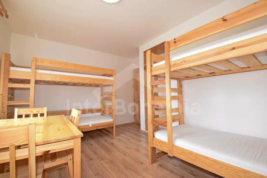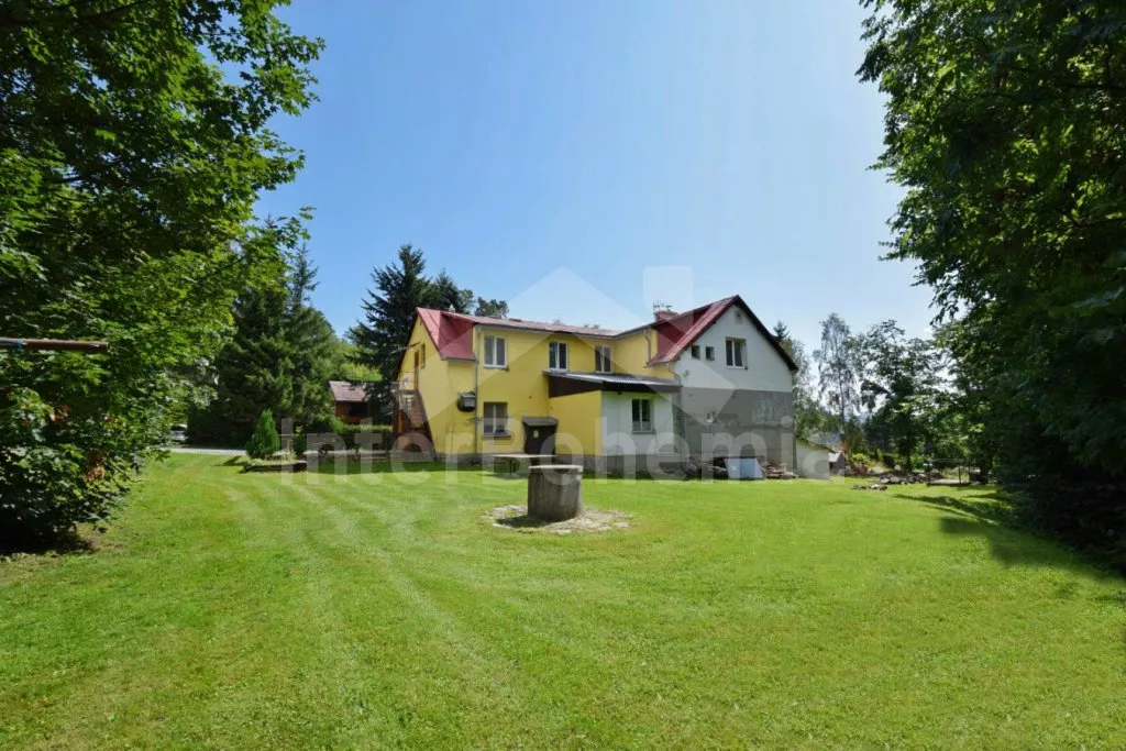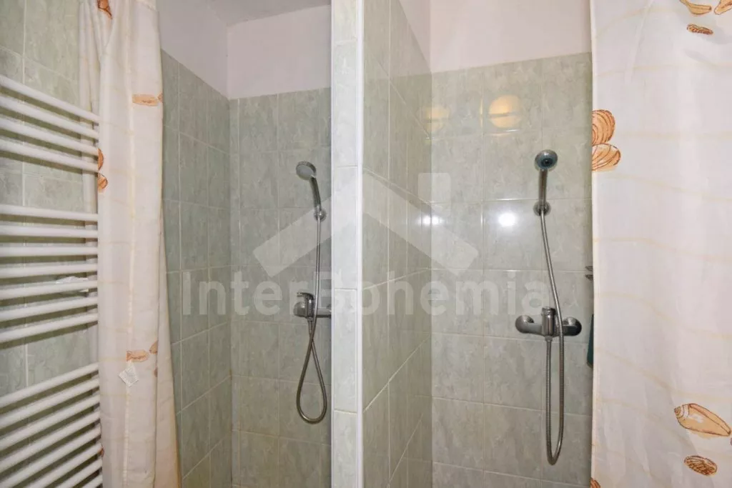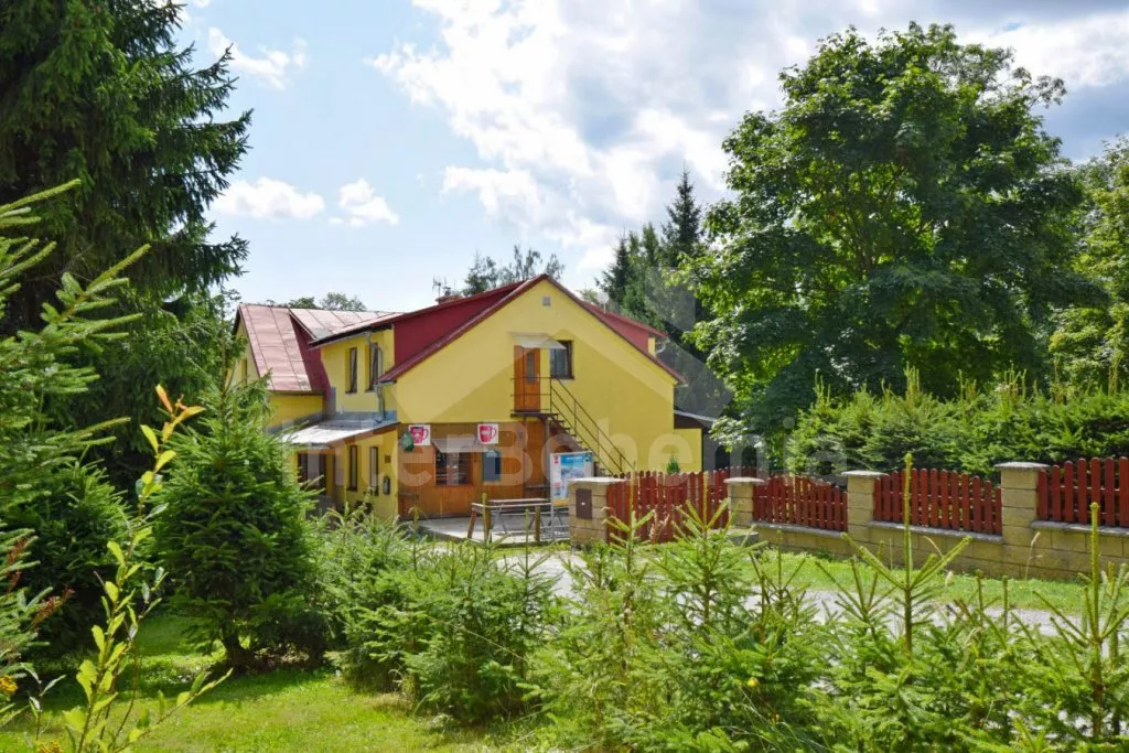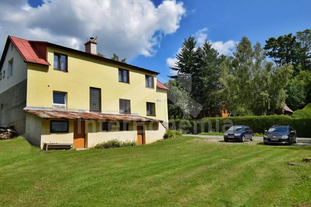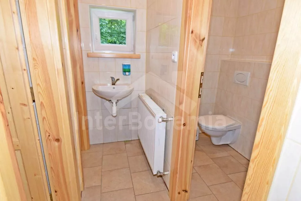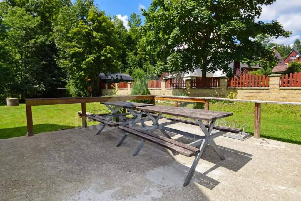 Volně stojící prostorný dům, účelně a nově vybavený, po částečné rekonstrukci v roce 2019. Dům je ideální pro velkou skupinu osob nebo několik rodin. V přízemí se nachází velká společenská místnost s barem, výčepem, lednicí a mrazákem, LED televizí, šipkami a jídelními stoly. Samostatná prostorná kuchyně s lednicí, mrazákem, indukční varnou deskou, troubou, mikrovlnnou troubou, rychlovarnou konvicí a nádobím. Tři toalety, tři umyvadla a sprcha. V podkroví 9 ložnic s jednolůžky a palandami s kapacitou od 2 do 6 lůžek. Postele je možné po předchozí domluvě přestavit na plnohodnotná dvoulůžka. Dvě koupelny, každá se dvěma sprchovými kouty a jedna navíc se dvěma umyvadly. Pánské a dámské toalety. Objekt je vytápěn centrálně. V suterénu je možné využít velkou úschovnu kol nebo lyží. Hosté mají k dispozici velkou zahradu a posezení před domem. Parkování u objektu až pro 10 vozidel.