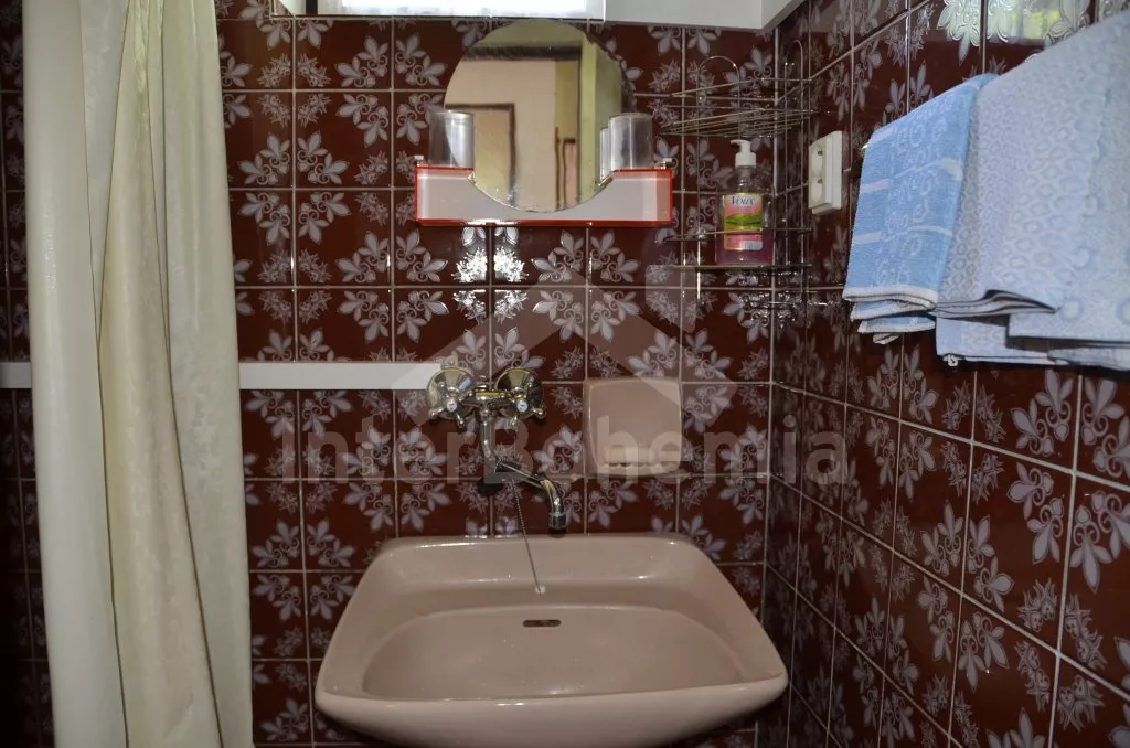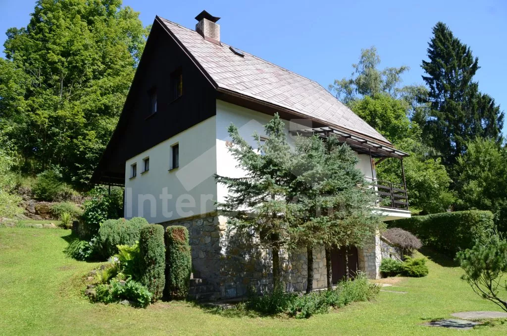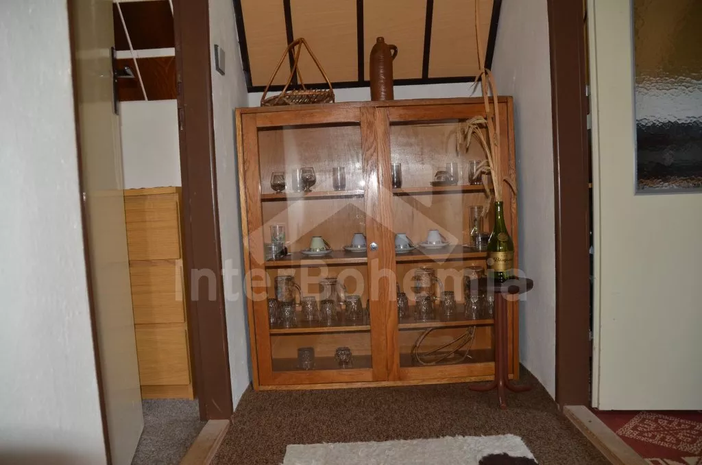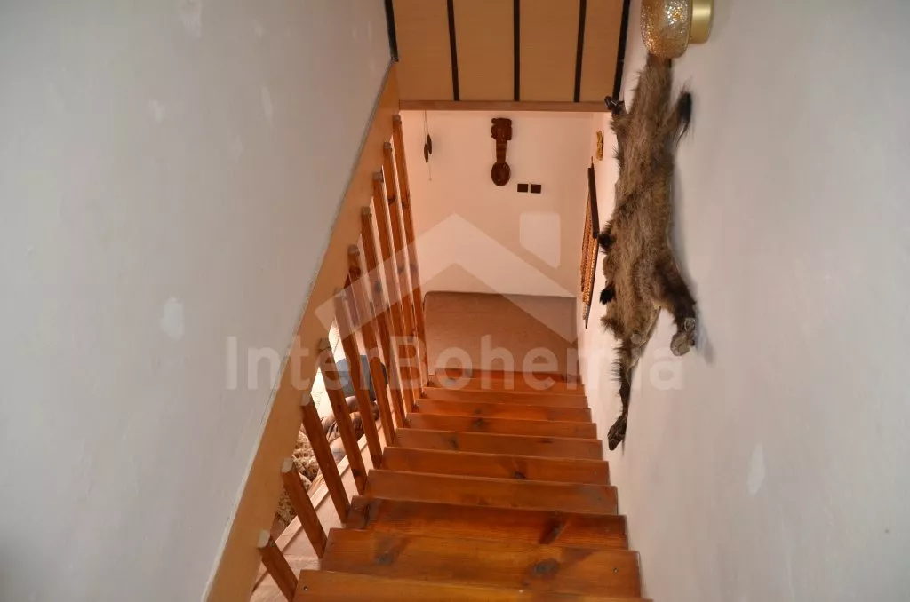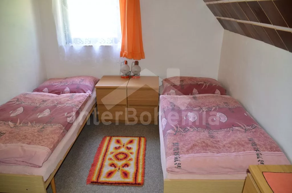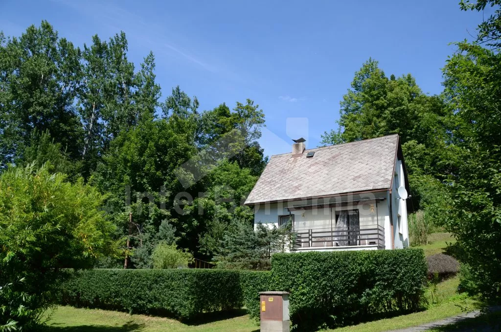 Volně stojící chata, postavená v roce 1991, příjemně zařízená. Vstup, chodba, obývací pokoj se sedací soupravou, jídelním koutem, krbem, televizí se satelitem a stereo soupravou. Kuchyně se dvěma elektrickými varnými plotýnkami, lednicí, varnou konvicí a mikrovlnnou troubou. Koupelna se sprchou, samostatná toaleta. V podkroví se nachází dvě ložnice – první s dvojlůžkem a rozkládací pohovkou (slouží zároveň jako dvojlůžko) a druhá se dvěma samostatnými lůžky. Vytápění elektrické nebo krbem. Zahrada je oplocena živým plotem, k dispozici je terasa situovaná na jih, zahradní nábytek se slunečníkem, přenosný gril, ohniště, houpačka a pro děti písek na hraní. Parkování v garáži nebo na zahradě.