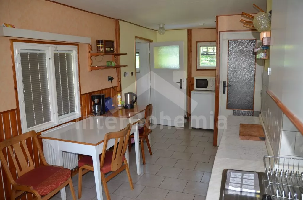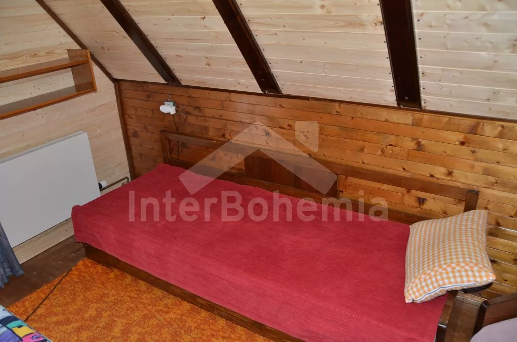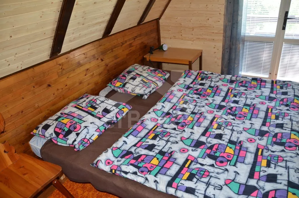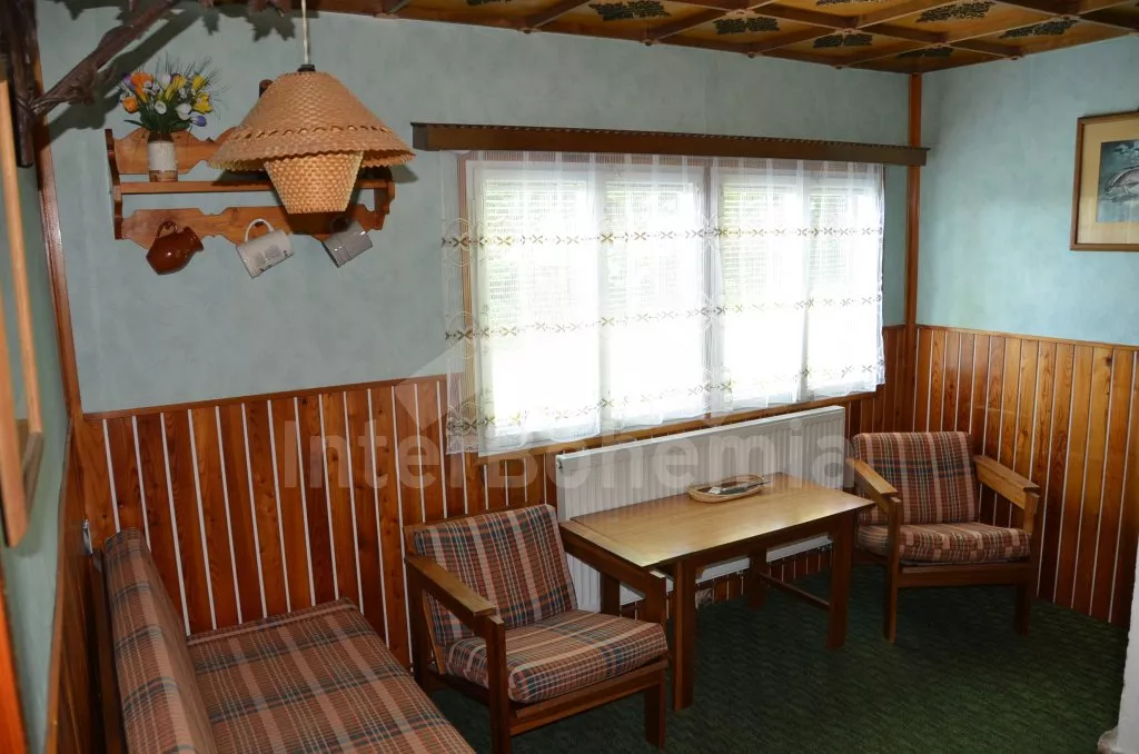 Volně stojící chalupa, účelně a jednoduše zařízená. Vstup, obývací místnost s jídelním stolem pro 7 osob, barevnou televizí se satelitem, krbem a kuchyňským koutem s lednicí a mrazákem, elektrickým… Více informací