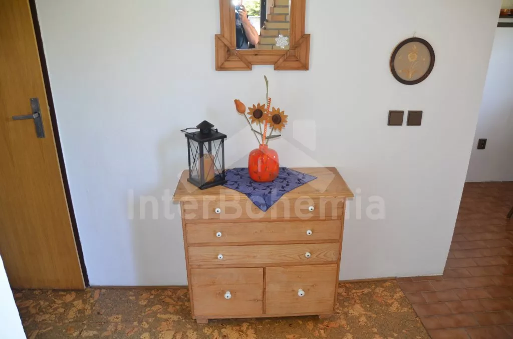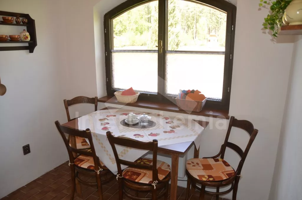 Vzdálenosti: Základní potraviny (obec Člunek) 2 km, restaurace a supermarket (Kunžak) 7 km. Značené turistické i cykloturistické stezky v okolí. Přírodní koupaliště a pronájem loděk (rybník Komorník) 8 km. Koupat se a provozovat vodních sporty můžete přímo ze zahrady – rybník je jen 15 m od chaty! Aquapark, sauna, jízda na koních a pronájem jízdních kol (Jindřichův Hradec) 12 km. Tenisový kurt (Otín) 8 km, golfové hřiště (Nová Bystřice) 8 km. Rybaření (s povolenkou) v okolních rybnících, v rybníku u chaty rybolov povolen není. Les 300 m.