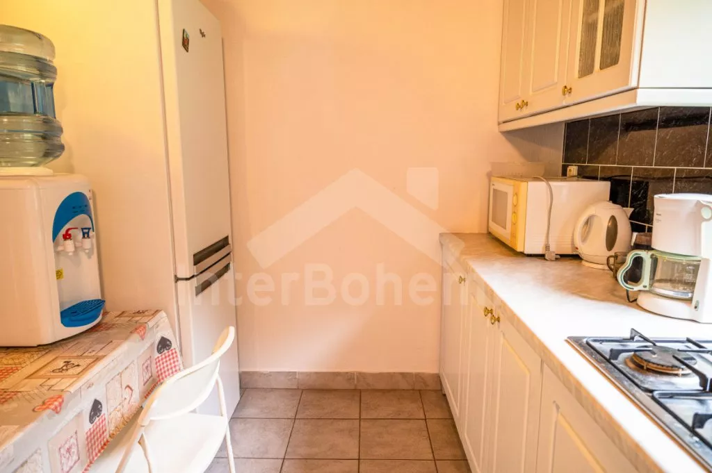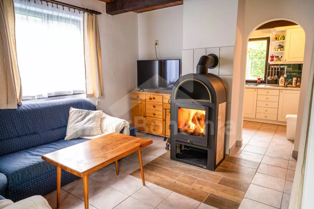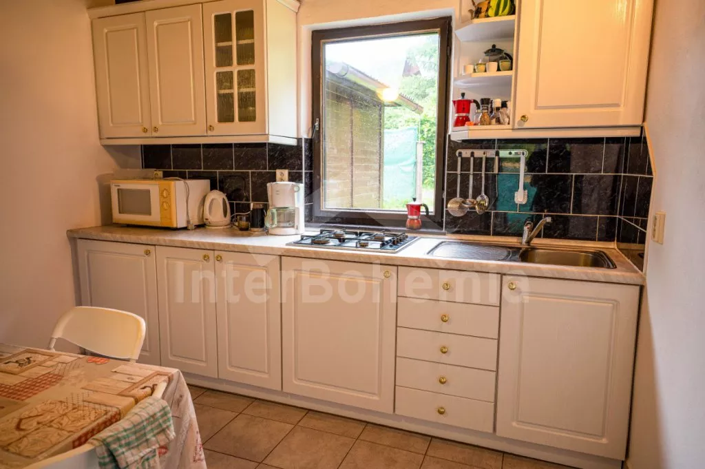 Volně stojící chata, příjemně zařízená. Vstup, chodba, malá zrenovovaná koupelna se sprchou, samostatné WC. Moderní kuchyně s lednicí, čtyřmi plynovými varnými plotýnkami, mikrovlnnou troubou, varnou… Více informací