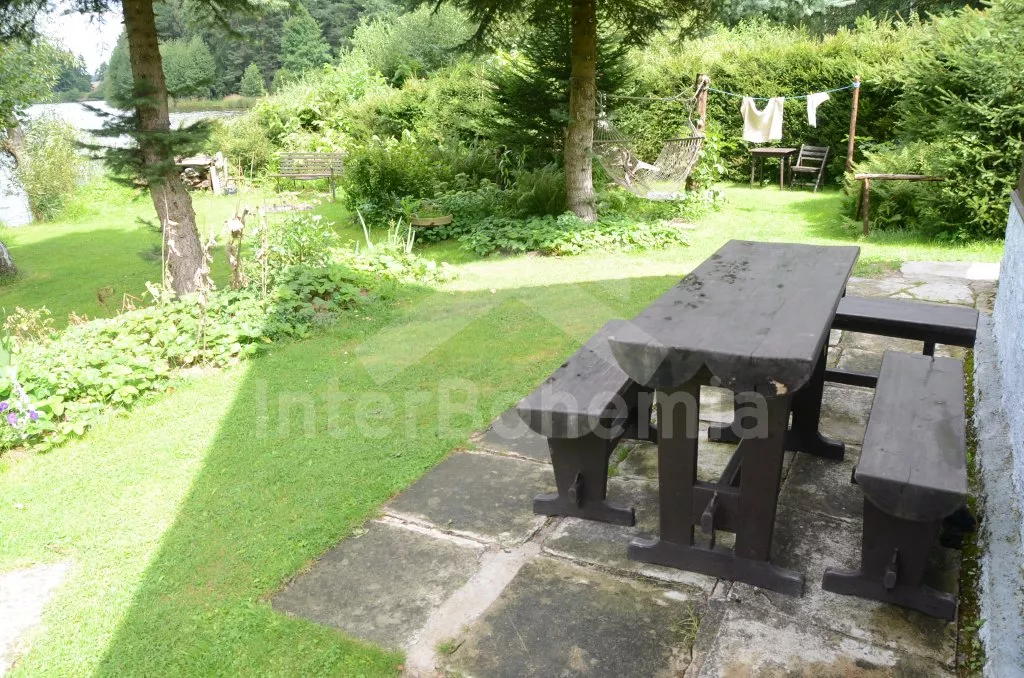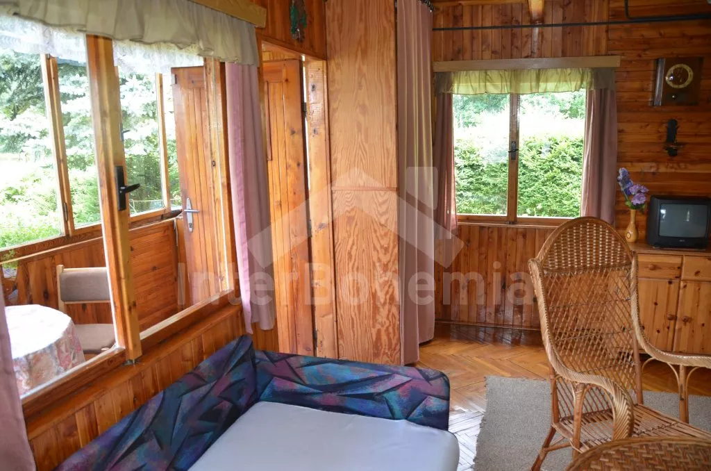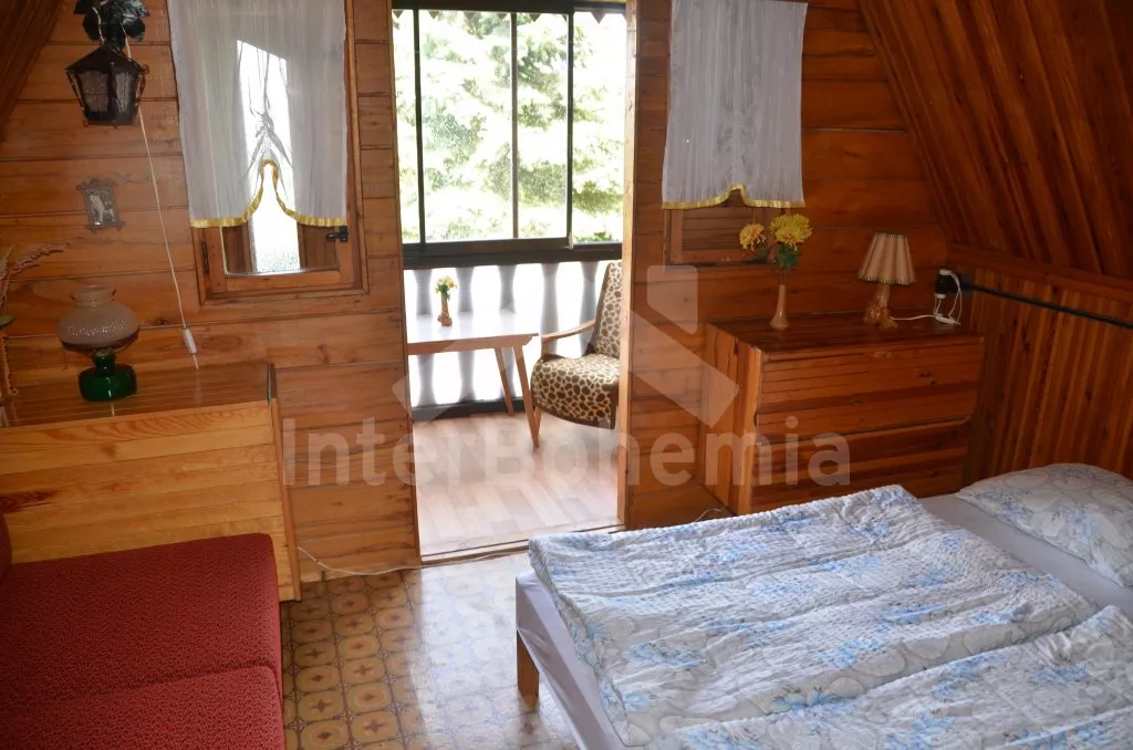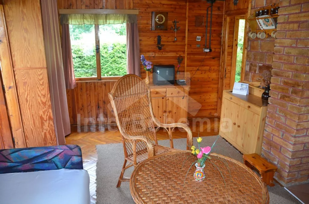 Volně stojící chata k samostatnému obývání, na krásném místě, jednoduše zařízená. V přízemí je obývací pokoj se sedací soupravou pro 5 osob, televize, jídelní stůl a vstup na verandu. Kuchyňka s dvouplotýnkovým vařičem, elektrická trouba, mikrovlnná trouba, lednice a varná konvice. Velmi jednoduchá starší koupelna se sprchovým koutem na průtokový ohřívač a WC. Nahoře jsou dvě ložnice, do každé je vstup šoupacími dveřmi. V jedné je dvojlůžko, jednolůžko a balkon, v druhé jsou tři lůžka. Topení kamny. Chata stojí na vlastním neoploceném pozemku, který má vstup přímo do rybníka. K dispozici je dřevěný zahradní posezení a ohniště. Vlastní parkoviště.