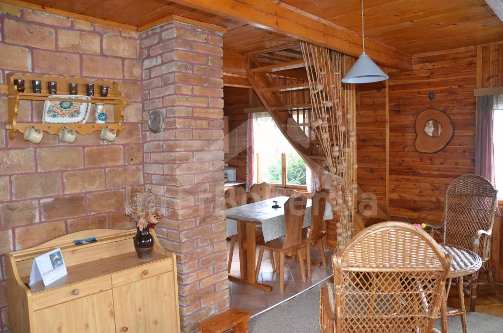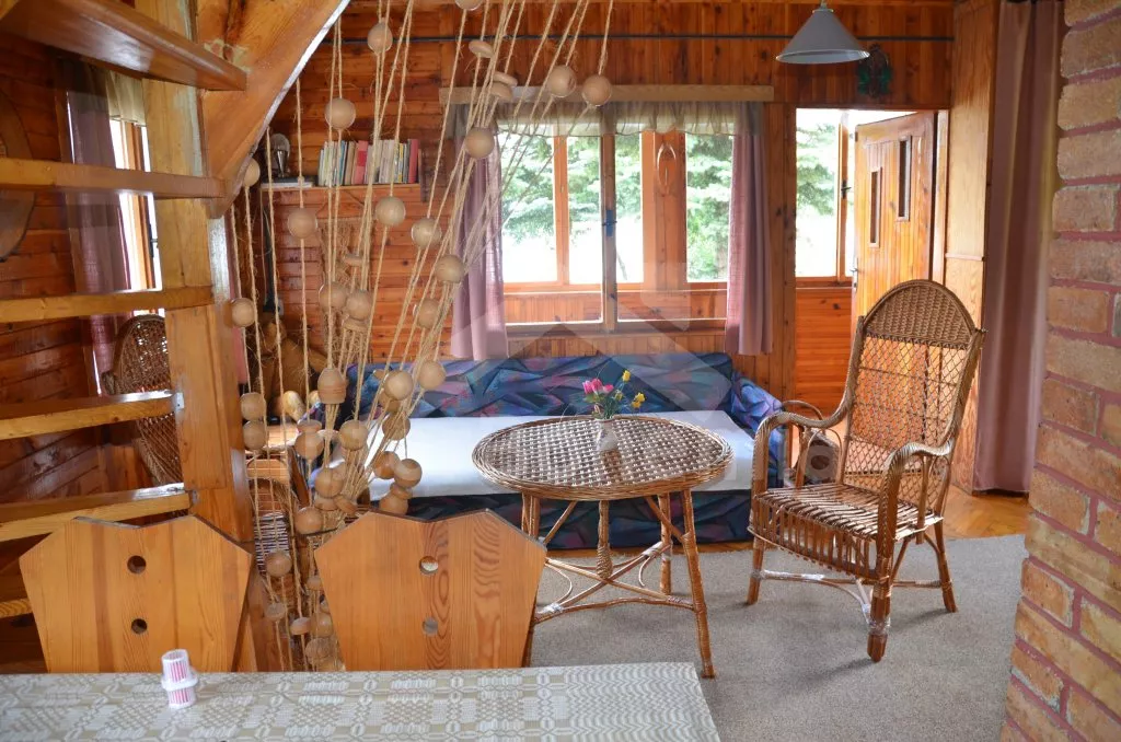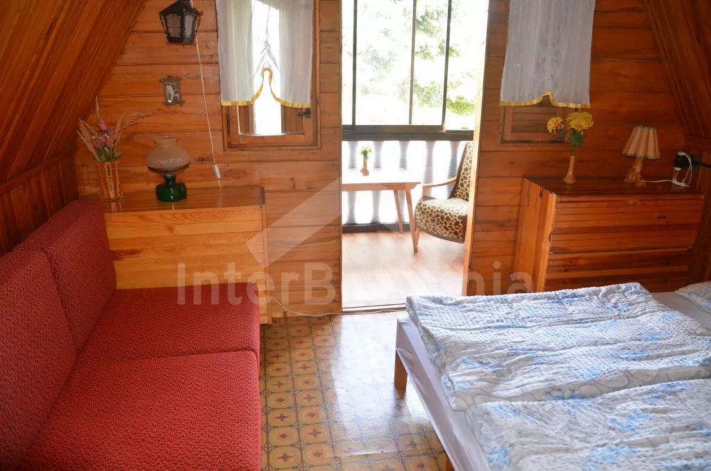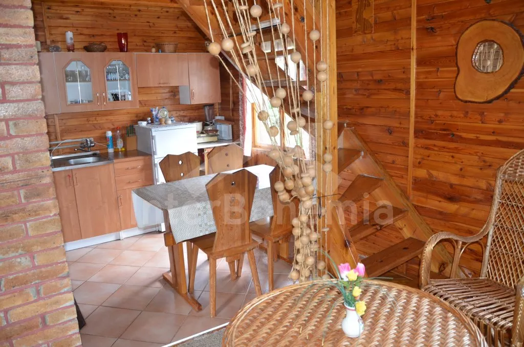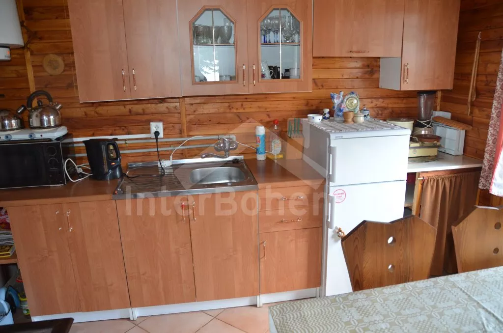Volně stojící chata k samostatnému obývání, na krásném místě, jednoduše zařízená. V přízemí je obývací pokoj se sedací soupravou pro 5 osob, televize, jídelní stůl a vstup na verandu. Kuchyňka s dvouplotýnkovým vařičem, elektrická trouba, mikrovlnná trouba, lednice a varná konvice. Velmi jednoduchá starší koupelna se sprchovým koutem na průtokový ohřívač a WC. Nahoře jsou dvě ložnice, do každé je vstup šoupacími dveřmi. V jedné je dvojlůžko, jednolůžko a balkon, v druhé jsou tři lůžka. Topení kamny. Chata stojí na vlastním neoploceném pozemku, který má vstup přímo do rybníka. K dispozici je dřevěný zahradní posezení a ohniště. Vlastní parkoviště.