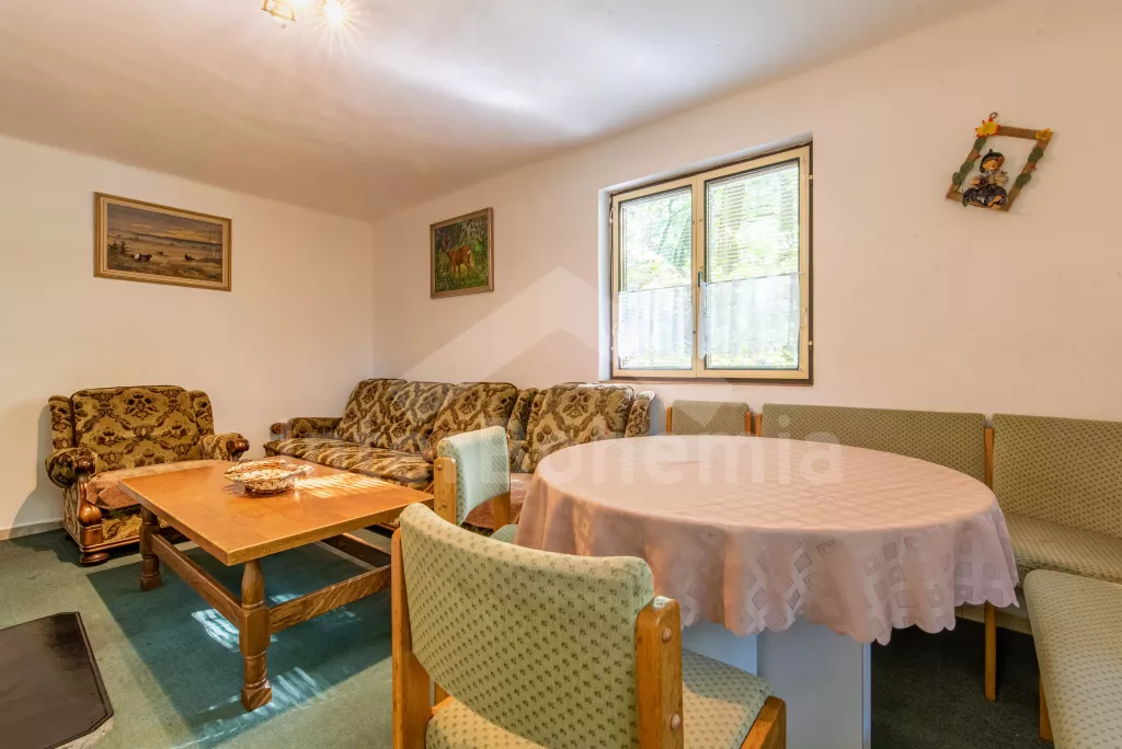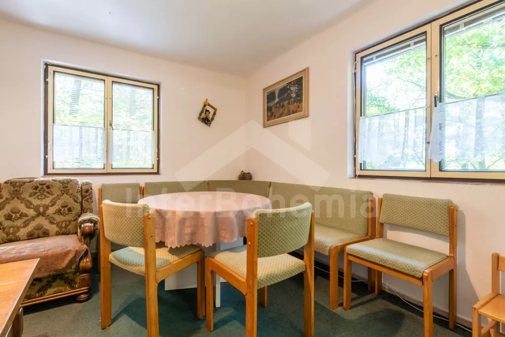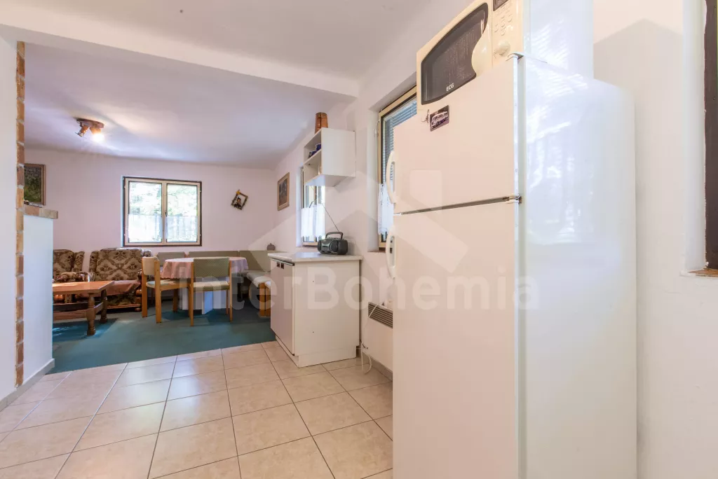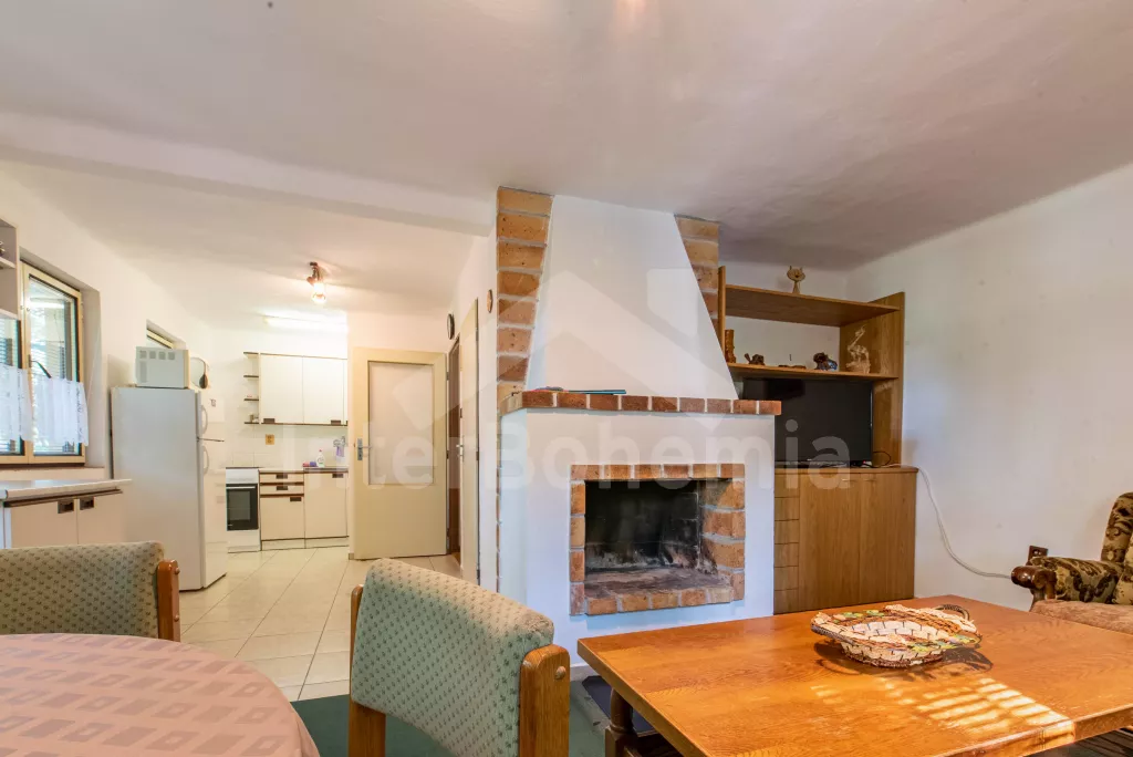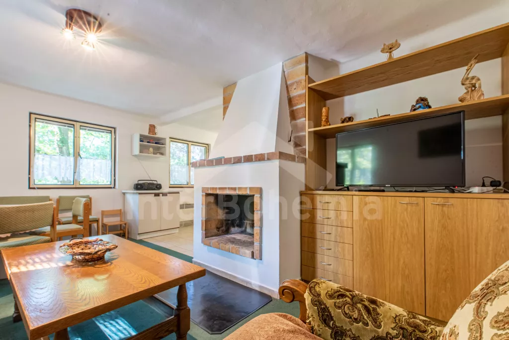 Volně stojící chata, útulně a příjemně zařízená. Vstup, chodba, malý obývací pokoj se sedací soupravou, jídelním stolem, krbem, televizí a videem. Kuchyňka s plynovým sporákem, lednicí, kávovarem,… Více informací
