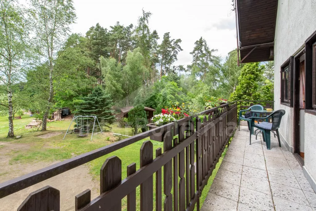 Vzdálenosti: Supermarket a restaurace (Blatná) 7 km. Koupání (pláž) a provozování vodních sportů, surfování apod. v rybníku Velká Kuš jen 80 m. Krytý bazén, tenisové hřiště a jízda na koních (Mačkov) 9 km. Další tenisová hřiště (Vrbno) 1 km a (Blatná) 7 km. Chata stojí na romantickém místě v lese v blízkosti bývalého lomu na kámen. Rybaření (s povolenkou) v okolních rybnících.