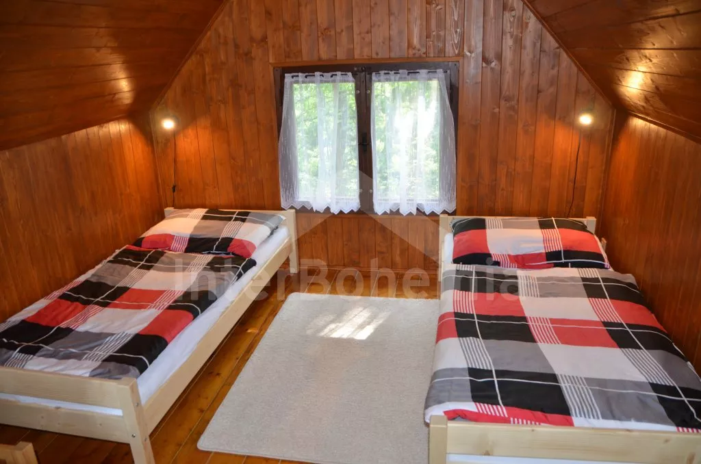 Volně stojící chata, útulně zařízená. Vstup, obývací místnost se sedací soupravou (zároveň rozkládací dvoulůžko), jídelním stolem, televizí se set-top-boxem, krbovými kamny a vstupem na zastřešený balkón s posezením. Otevřený kuchyňský kout s lednicí, dvouplotýnkovým vařičem a varnou konvicí. Koupelna se sprchou, umyvadlem a WC. V podkroví je ložnice se třemi samostatnými lůžky. Topení krbovými kamny. Garáž kde si lze uschovat jízdní kola. Chata stojí na vlastním pozemku, k dispozici je zahradní nábytek, přenosný gril a ohniště. Chata je vhodná pro maximálně 4 osoby a jedno dítě.