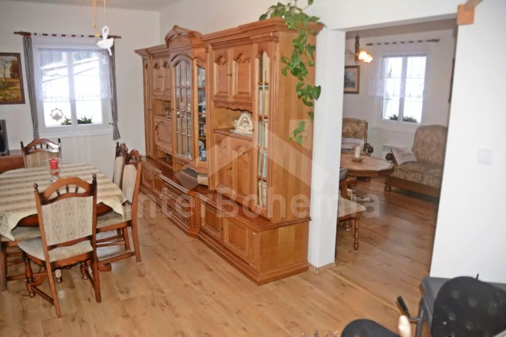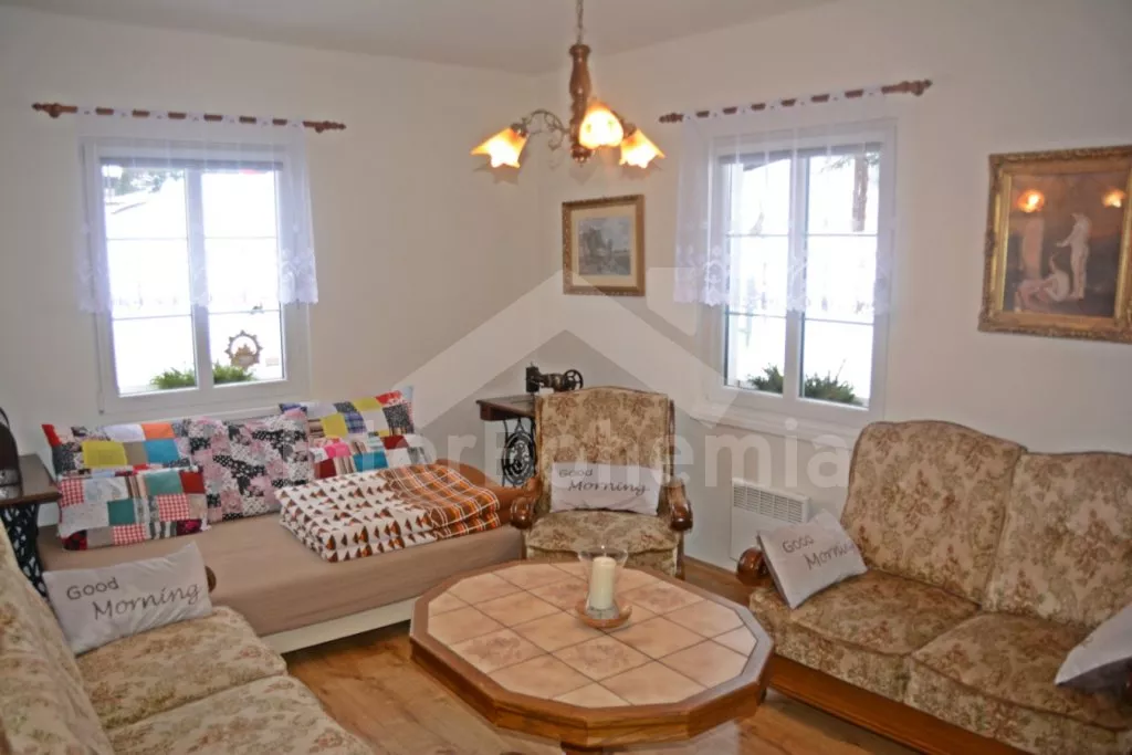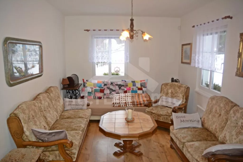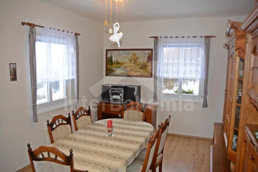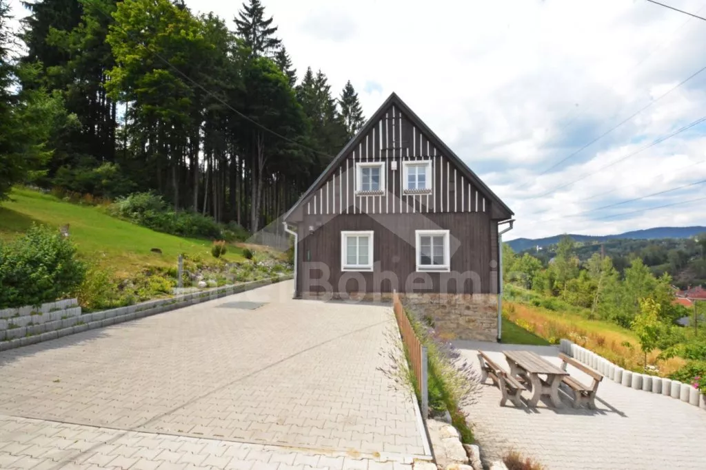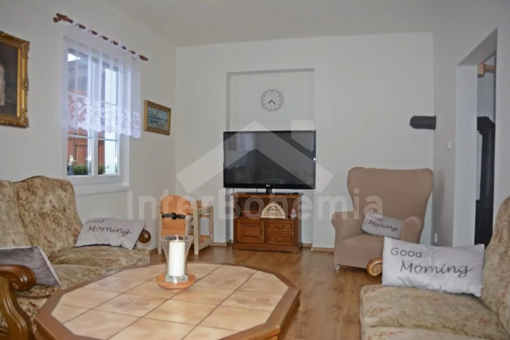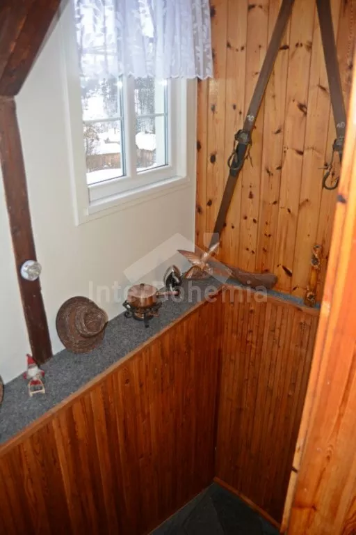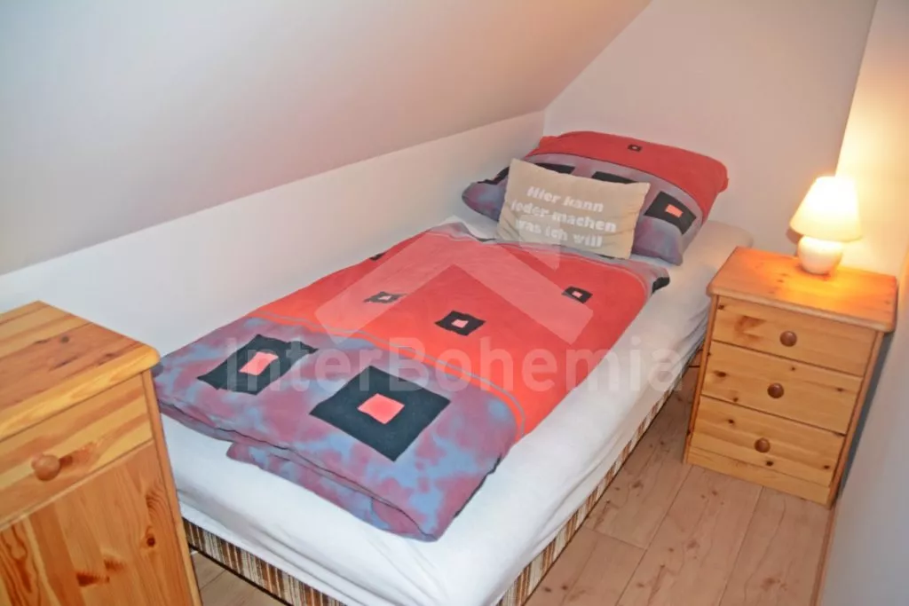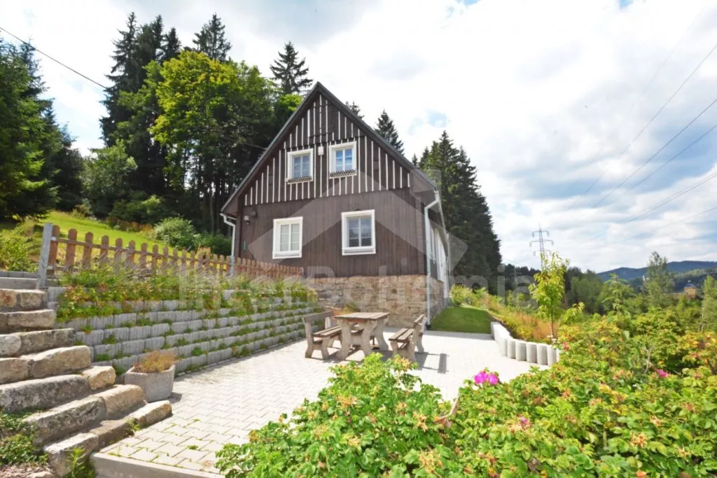 Samostatně stojící chalupa na vlastním neoploceném pozemku, v roce 2014 vkusně zrekonstruovaná. Vstup, chodba, kuchyně propojená s jídelnou a obývacím pokojem. Kuchyňská linka se sklokeramickou varnou deskou, troubou, mikrovlnnou troubou, lednicí s mrazákem, automatickým kávovarem, rychlovarnou konvicí a myčkou na nádobí. V jídelně stůl pro 6 osob, minivěž a krbová kamna na dřevo. Obývací pokoj se sedací soupravou pro 9 osob (rozložitelná na extra lůžko pro 2 osoby) a LCD televizí. Koupelna se sprchovým koutem, umyvadlem, wc a vanou. V podkroví se nachází 3 samostatné ložnice. První ložnice s dvoulůžkem a dětskou postýlkou. Druhá ložnice s dvoulůžkem a pohovkou (rozkládací na extra lůžko pro 2 osoby). Třetí ložnice s dvoulůžkem, jedním jednolůžkem a dětskou postýlkou. Vytápění objektu elektrickými přímotopy a krbovými kamny. Hosté mají k dispozici zahradu s posezením na terase, přenosný gril, ohniště, pro děti je zde pískoviště, houpačka, skluzavka a trampolína. Parkování u chalupy pro 3 automobily.
