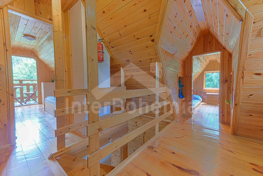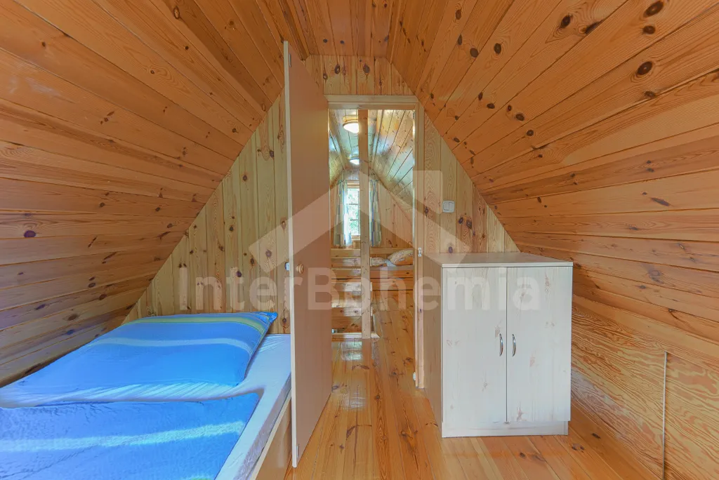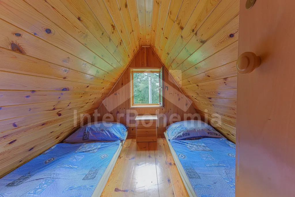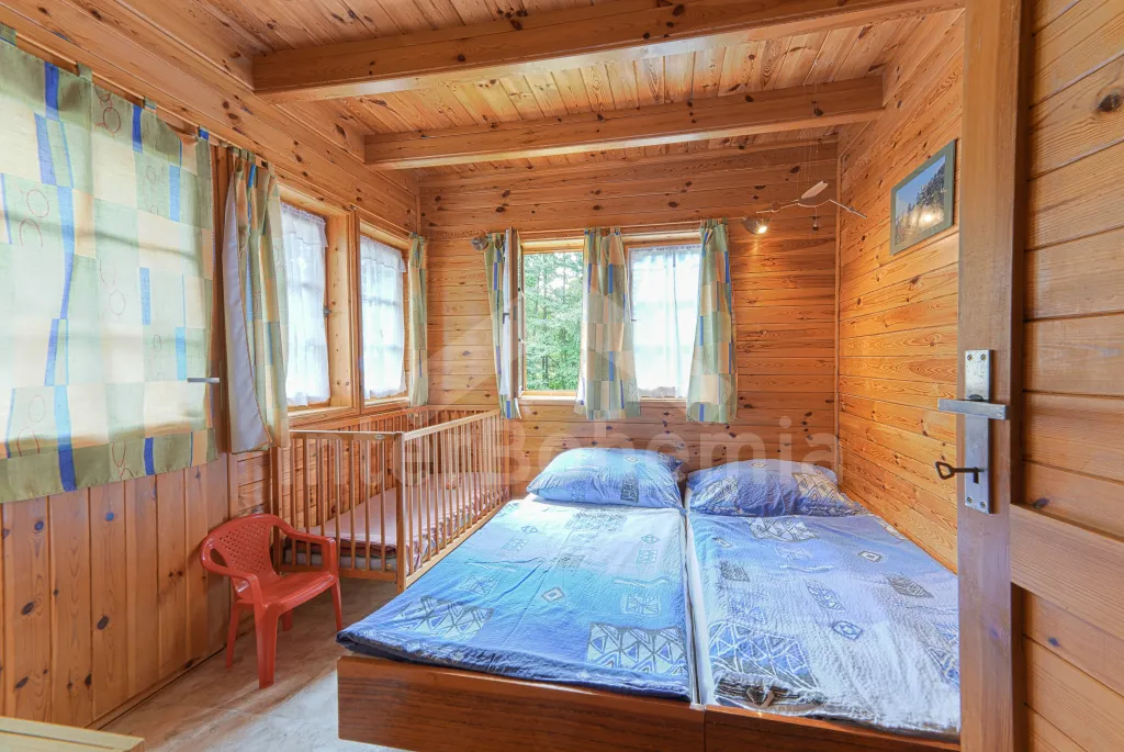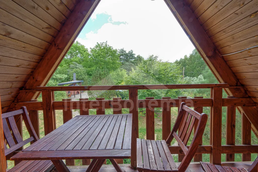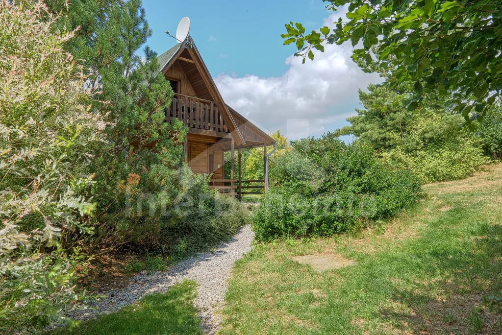 Volně stojící dřevěná chata, v roce 2006 nově postavená. Vstup přes zastřešenou terasu do předsíně. Obývací místnost s rozkládacím gaučem, televizí s DVD, krbovými kamny, jídelním koutem. Kuchyňský kout s dvojplotýnkovým vařičem, varnou konvicí, mikrovlnnou troubou a lednicí. Koupelna se sprchou a toaletou. Ložnice s dvojlůžkem a dětskou postýlkou. Schody do prvního patra. Galerie s vysouvací postelí, která slouží jako dvě lůžka. Ložnice se dvěmi samostatnými lůžky a vstupem na zastřešený balkon. Další ložnice se šikmými stropy a se dvěmi matracemi na zemi (vhodné pro děti). Vytápění krbovými kamny. K dispozici je neoplocená zahrada s dřevěným zahradním nábytkem, přenosný zahradní gril a pískoviště. K dispozici zapuštěný bazén 10 x 5 x 1,5 m (užívá ho i pronajímatel). Vlastní parkoviště.