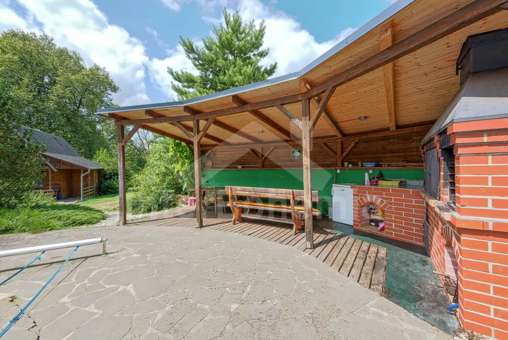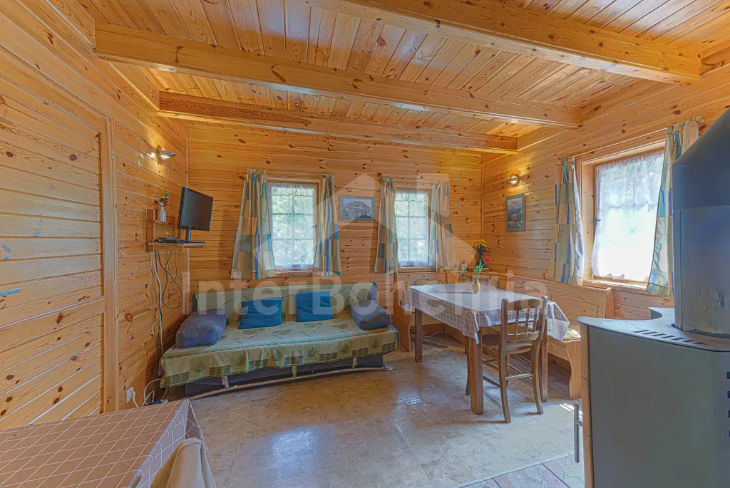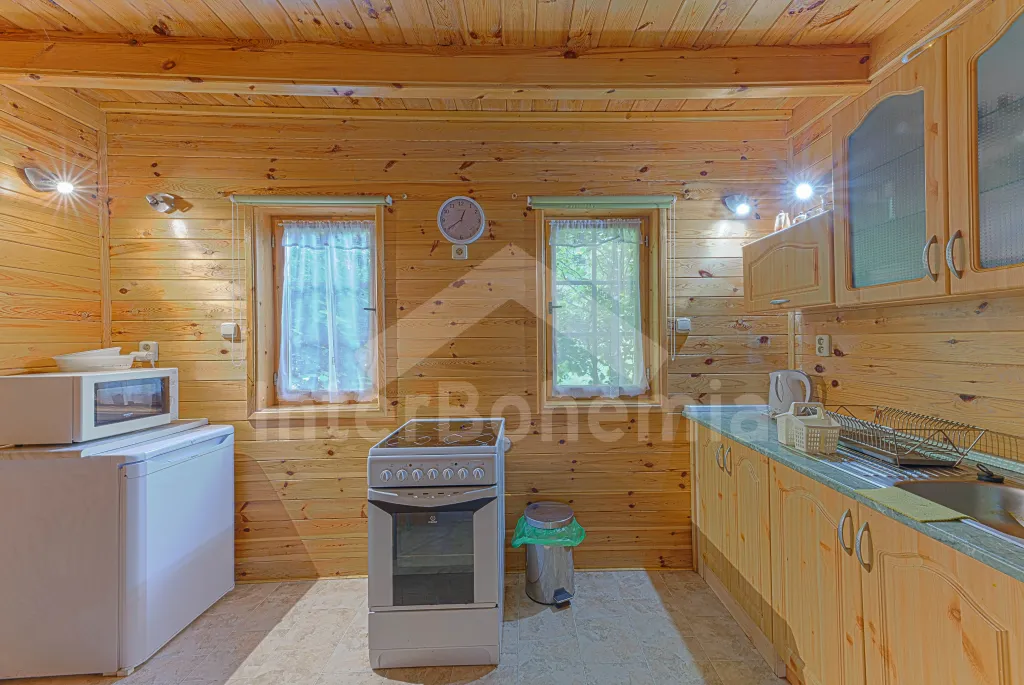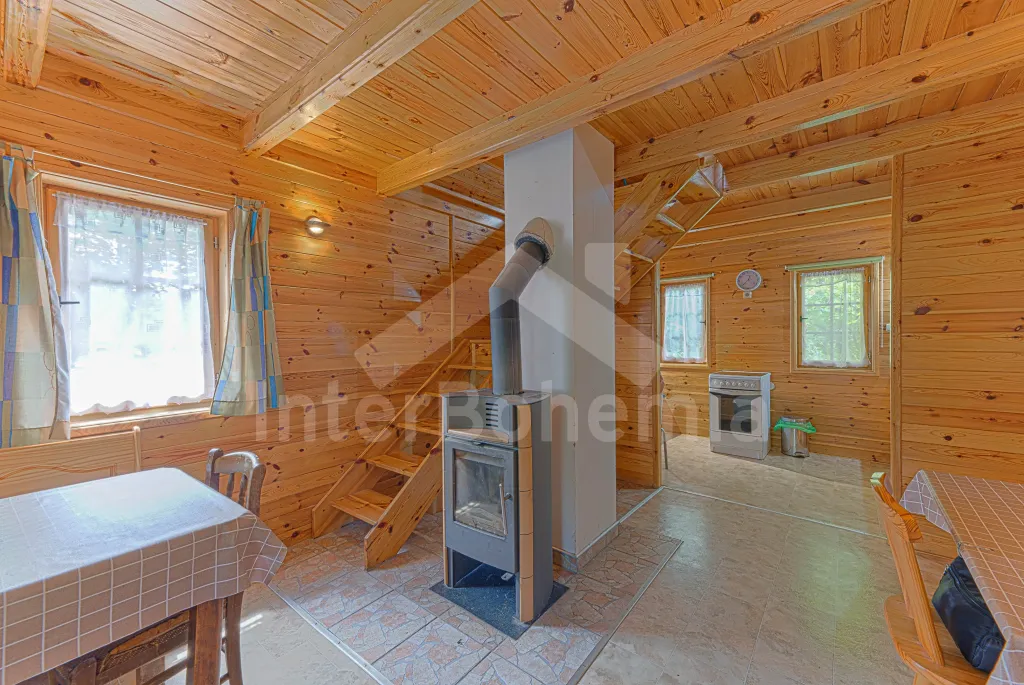 Volně stojící dřevěná chata, v roce 2006 nově postavená. Vstup přes zastřešenou terasu do předsíně. Obývací místnost s rozkládacím gaučem, televizí s DVD, krbovými kamny, jídelním koutem. Kuchyňský… Více informací