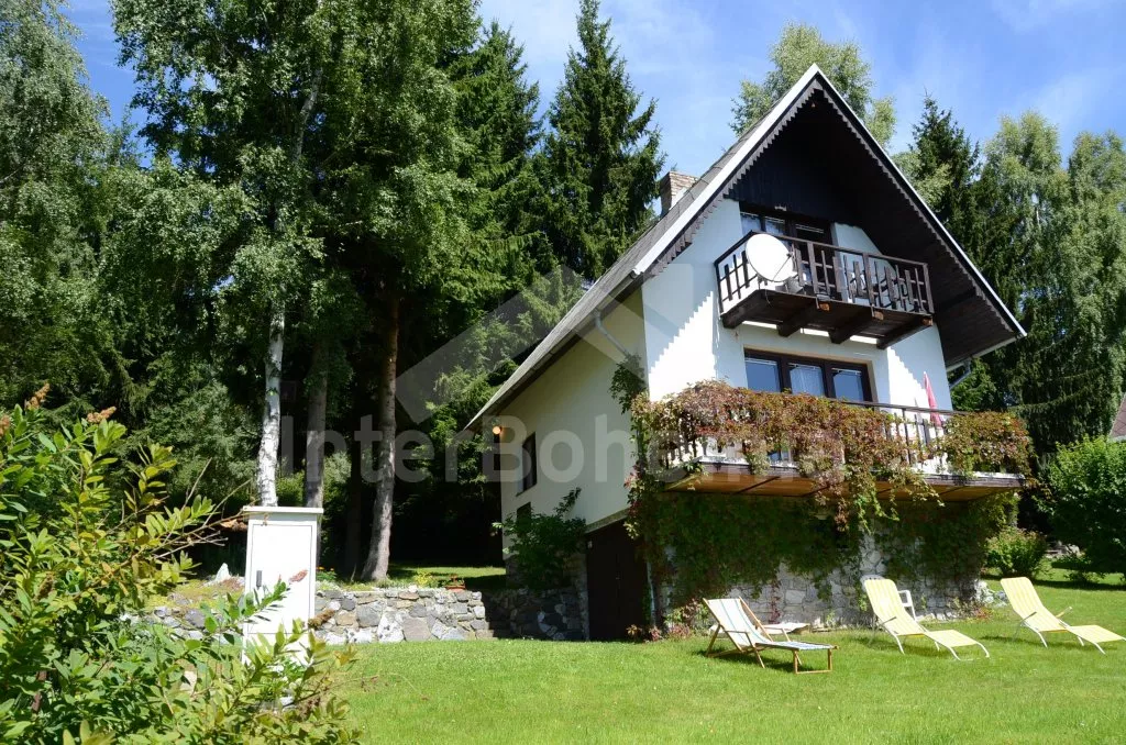 U Lipenského jezera, na okraji rekreační osady Karlovy Dvory, asi 3 km východně od městečka Horní Planá a jen 45 od hranic s Německem. Chata stojí na klidném místě jen 400 m od jezera, v mírném svahu v blízkosti lesa, v nadmořské výšce 880 m města. Od chaty je překrásný výhled (částečně přes střechy ostatních domů) na vodní plochu Lipenské přehrady a kopce a lesy za ní. Okolí nabízí výborné podmínky ke koupání, provozování vodních sportů, pěší turistice i cykloturistice po stezkách kolem Lipenského jezera. Z mnoha pamětihodností v okolí jmenujme například romantické město Český Krumlov (stojí na Seznamu světového kulturního dědictví UNESCO) se zámkem a mnoha uličkami s restauracemi a terasami 25 km, klášter Zlatá Koruna 31 km, hrad Rožmberk 40 km, zřícenina hradu Vítkův Kámen 38 km (možnost přejet přívozem do Dolní Vltavice 24 km). Oblast je protkána kilometry turistických a cykloturistických tras vedoucích překrásnou přírodou Šumavy. Za návštěvu stojí zejména Schwarzenberský plavební kanál a horská jezera Černé a Čertovo.
