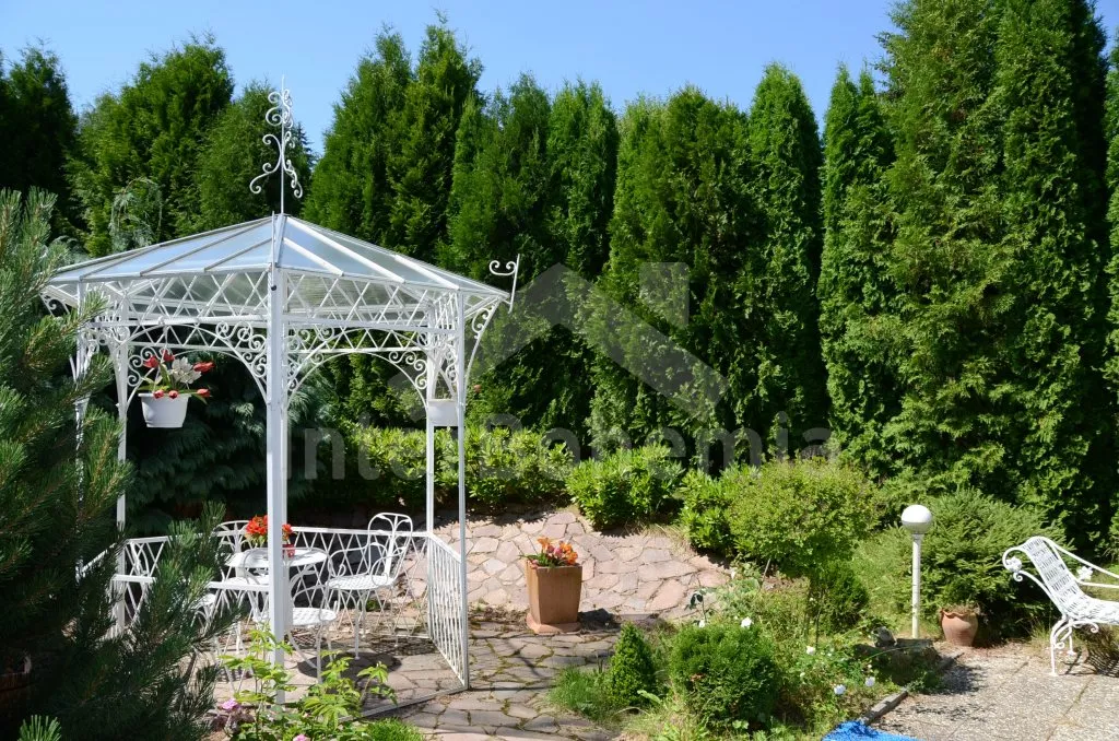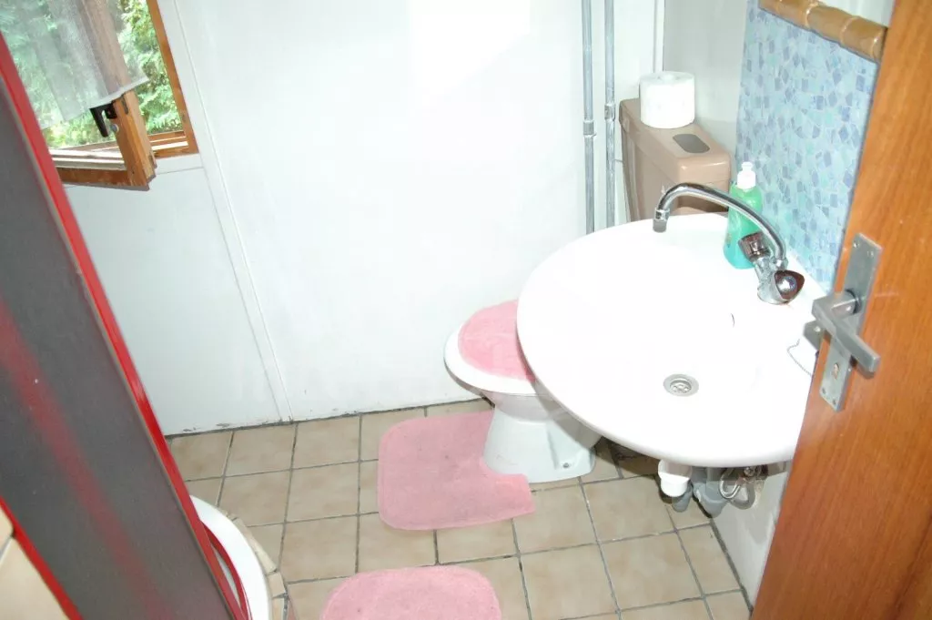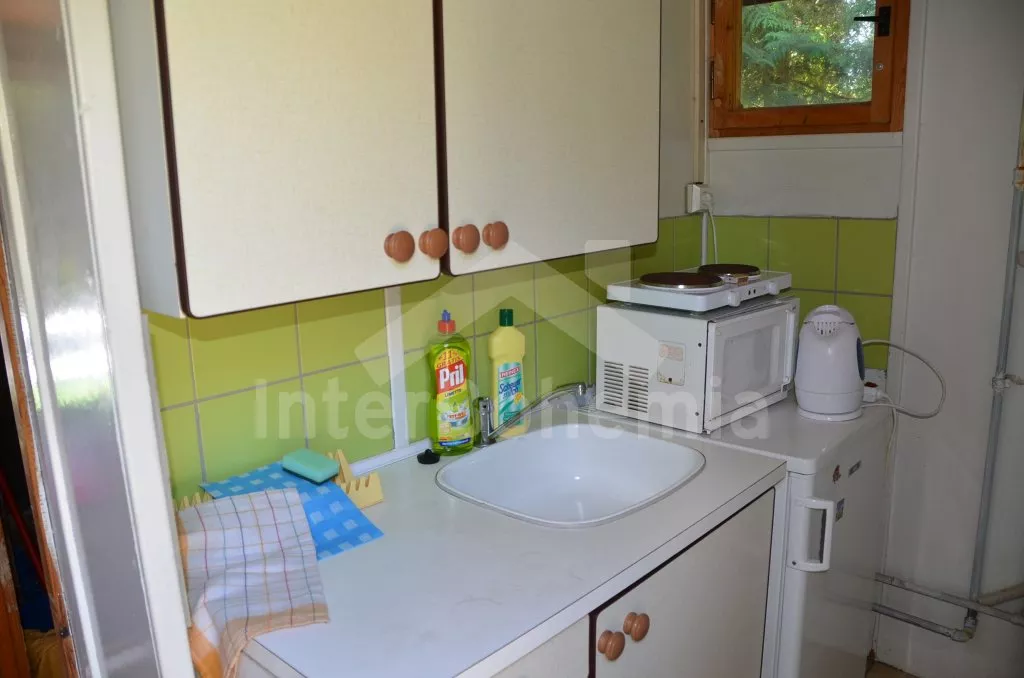 Obývá se malá chatová osada na oploceném pozemku o rozloze 2000 m2 se dvěma volně stojícími dřevěnými chatami a apartmá ve vile. Společně se užívá hezký zapuštěný bazén s rozměry 10 x 5 m a solárně vytápěný. Chata (A): vstup přes terasu, obývací pokoj (17 m2) s jídelním stolem a lavicemi, televizí, dvojlůžkem a vstupem na balkón. Malá kuchyňka se dvěma elektrickými varnými plotýnkami, lednicí, varnou konvicí a mikrovlnnou troubou. Koupelna se sprchou a toaletou. Ložnice s palandou. Zahradní nábytek a vlastní parkoviště.