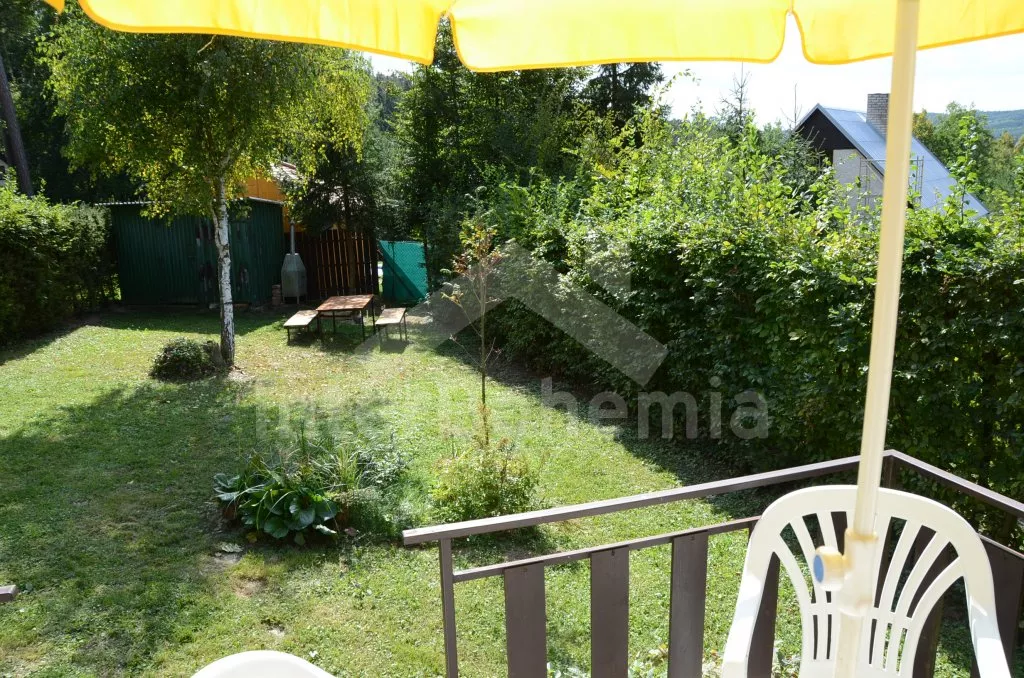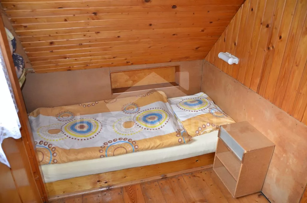 Volně stojící chata, jednoduše ale pohodlně zařízená. Vstup přes terasu do verandy s jídelním stolem pro 6 osob, obývací pokoj s válendou (možnost jedné přistýlky) a dvěma křesly, televizí, radiem a kamny na dřevo. Otevřená kuchyně s varnou konvicí, mikrovlnnou troubou, dvouplotýnkovým el. vařičem a lednicí. Koupelna s ruční sprchou a toaletou. Po žebříkovém schodišti s poklopem se dostanete do podkroví, kde se nacházejí dvě ložnice. První ložnice s dvojlůžkem, jedním samostatným lůžkem, přistýlkou pro dítě (postel 150 cm) a vstupem do druhé ložnice se dvěma samostatnými lůžky a vstupem na balkon. Vytápěno kamny na dřevo. Chata stojí na vlastním pozemku, k dispozici je zahradní nábytek se slunečníkem a ohniště s roštem a udírnou. Parkování u objektu.