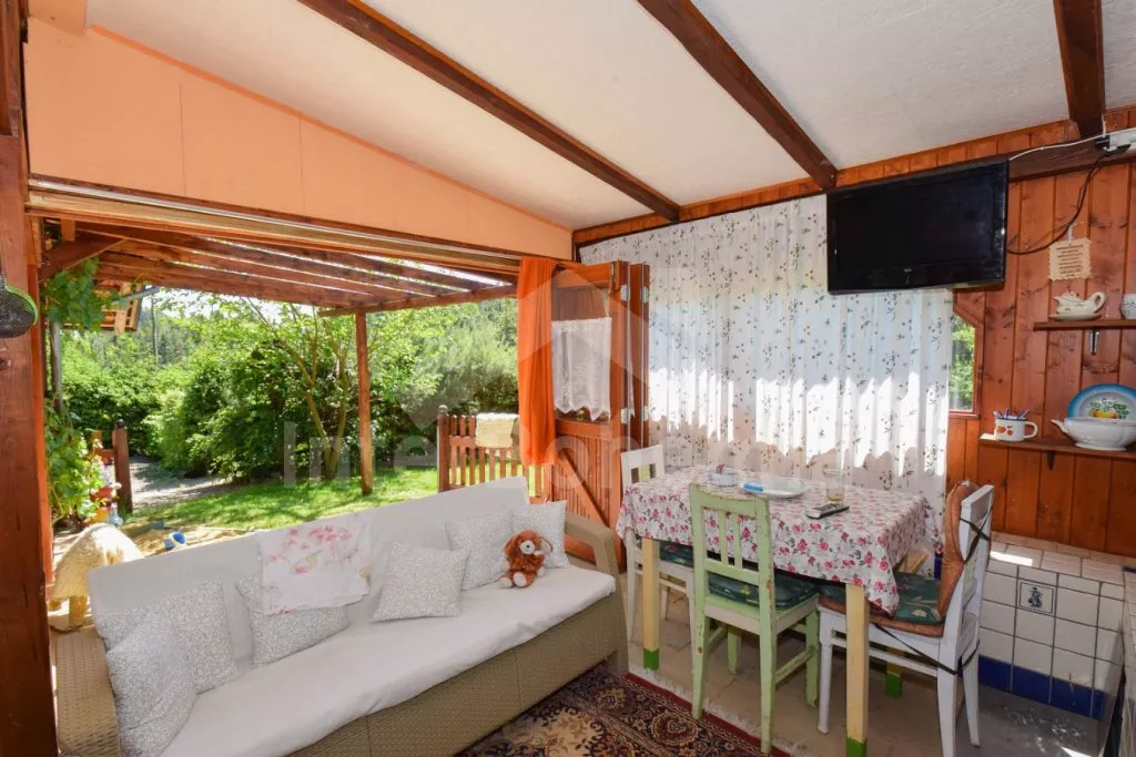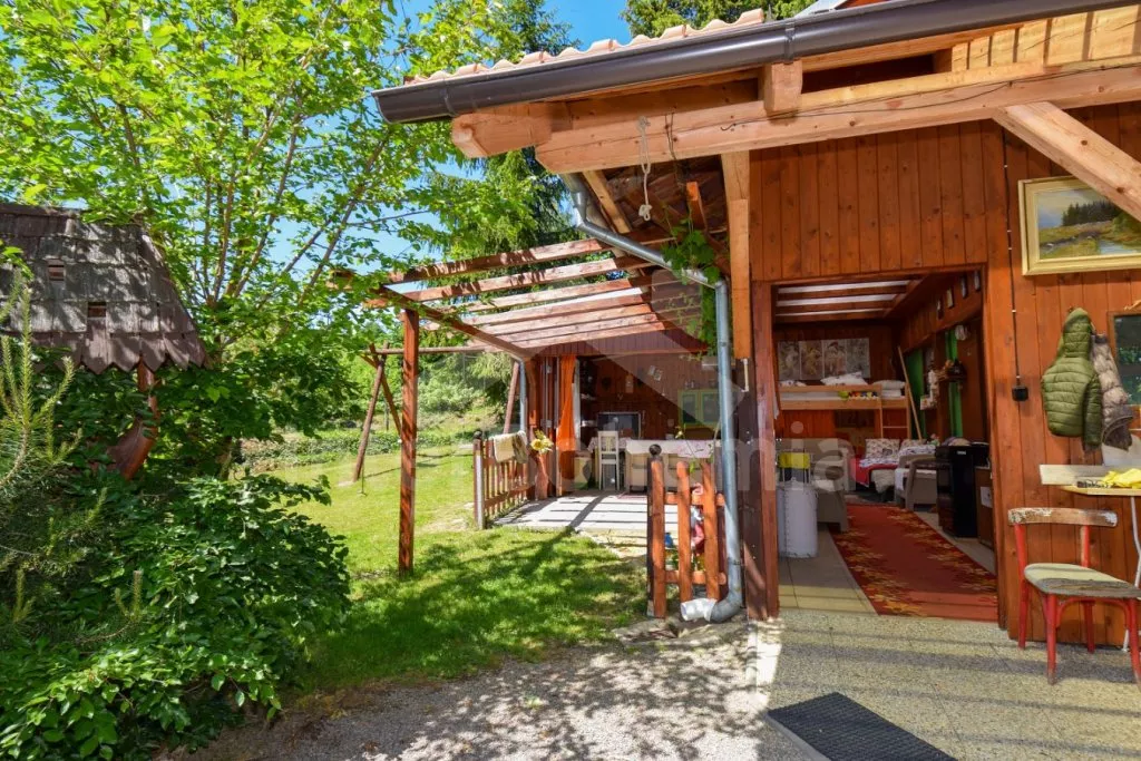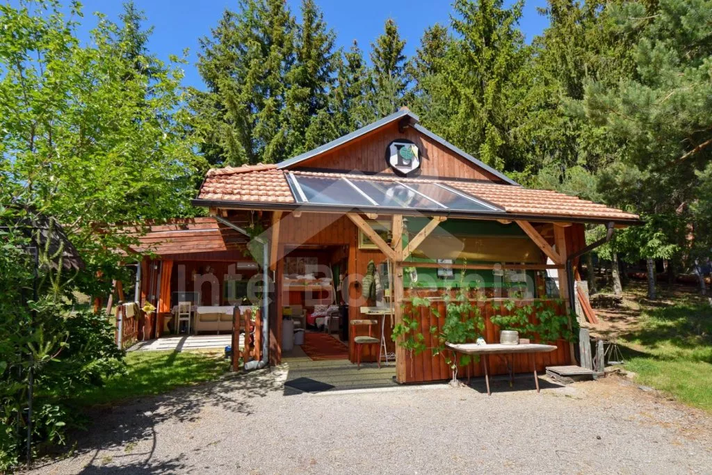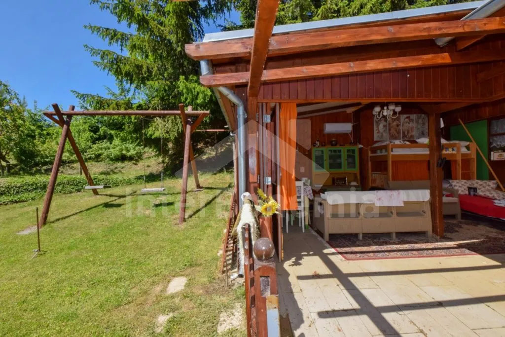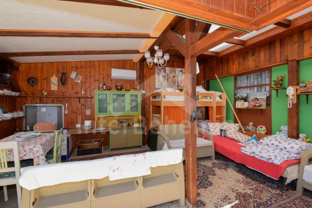 Originální ubytování – spojení zahradního domku s vlakovým vagónem, s možností otevření dvou stěn z obýváku přímo do zahrady pro co nejužší spojení s okolní přírodou. Kuchyňka s plynovým sporákem, troubou, mikrovlnnou troubou, rychlovarnou konvicí, nádobím, pračkou a myčkou na nádobí. Na kuchyň navazuje obývací pokoj se sedací soupravou, jídelním stolem, samostatným lůžkem, palandou a LCD televizí. V přistavěném vagónu ložnice se samostatným lůžkem a palandou a kuchyně s lednicí, mrazákem, umyvadlem, kamny a posezením. Suchá toaleta u domku a venkovní umývárna s teplou vodou. Na pozemku se nachází venkovní zastřešená kuchyň a ohniště, ideální pro letní grilování. K dispozici částečně oplocená zahrada, ovocný sad, houpačka, venkovní posezení a gril. Parkování u domu pro 2 vozidla.