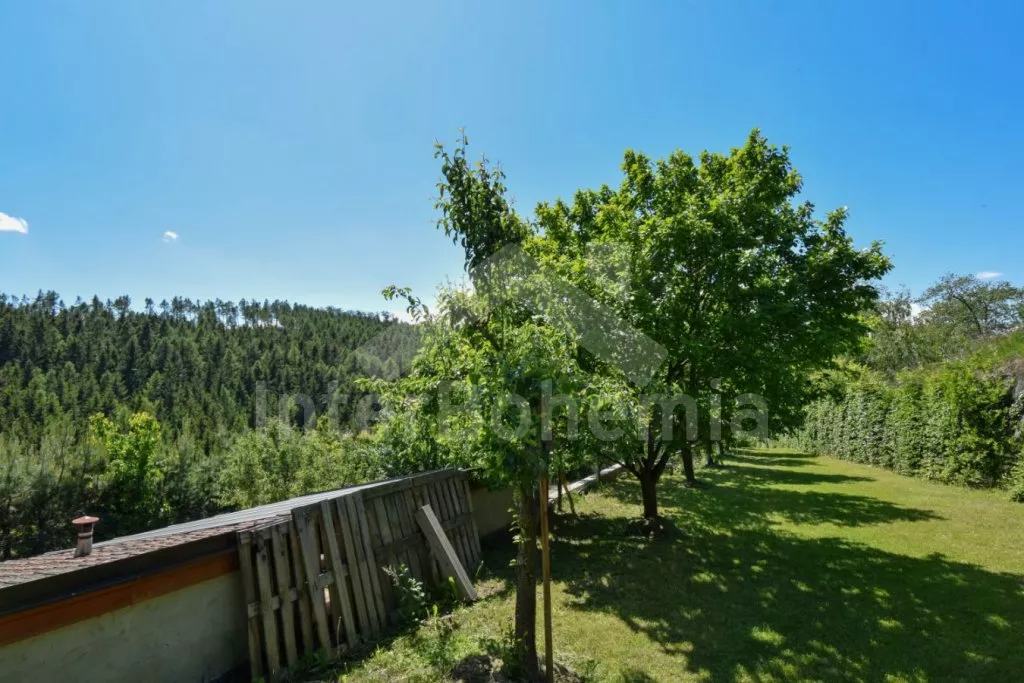 K domku patří velká zahrada s množstvím ovocných i lesních stromů.