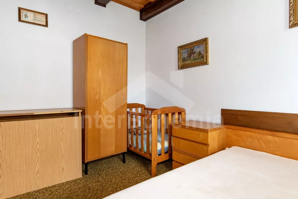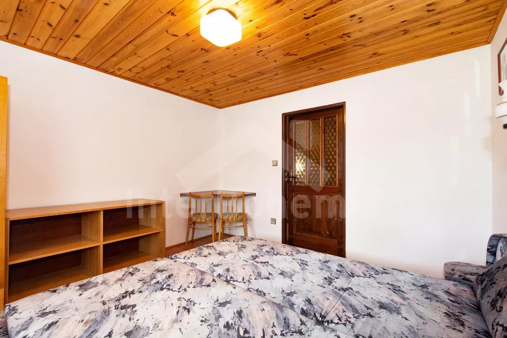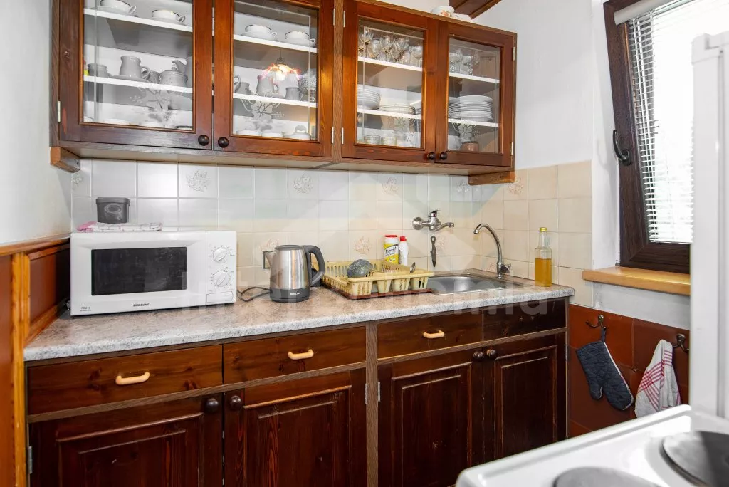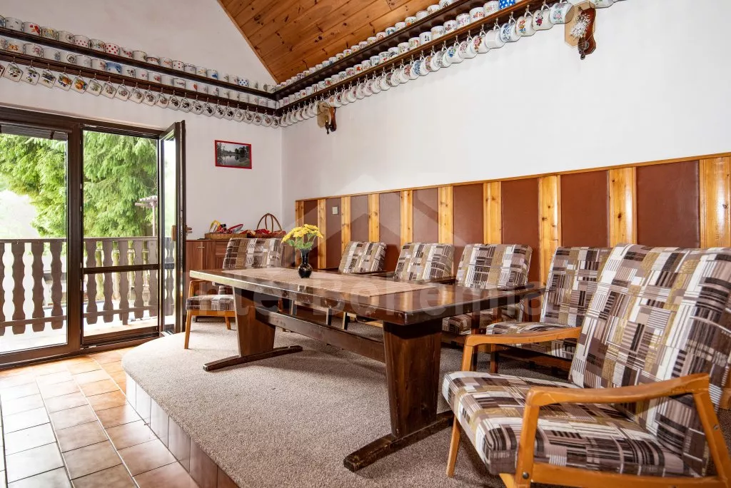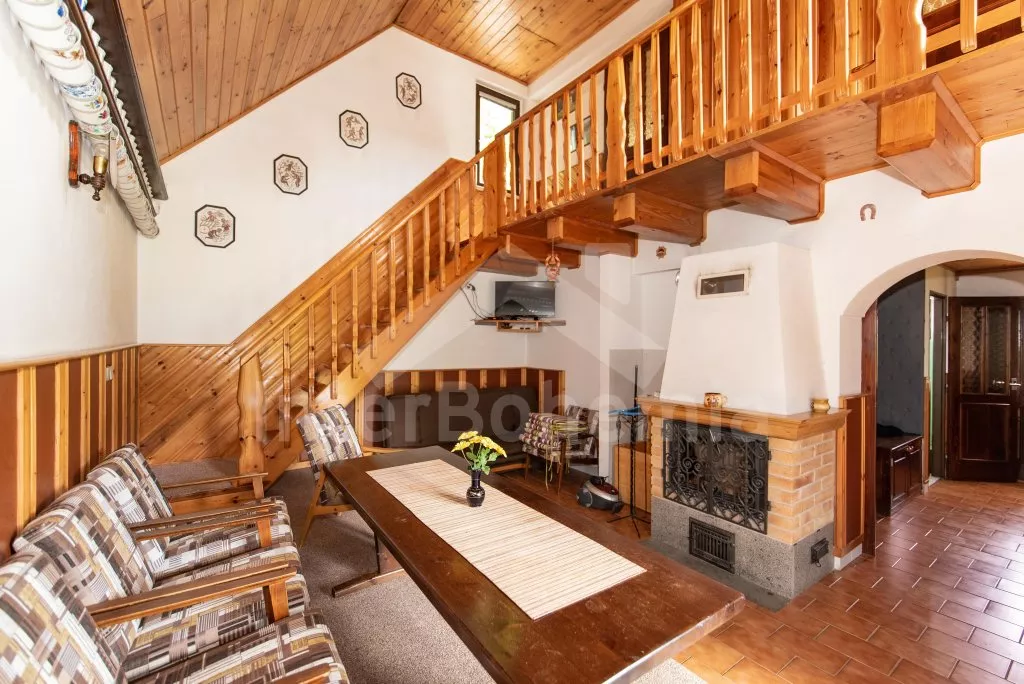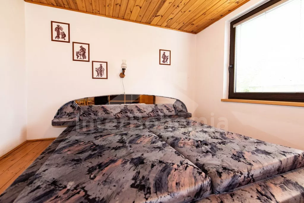 Volně stojící chata, postavená v roce 1993, hezky udržovaná. Vstup, chodba, obývací pokoj s podlahou ve dvou úrovních, sedací soupravou, jídelním stolem, krbem a vstupem na terasu. Malá kuchyňka s elektrickým sporákem, lednicí, kávovarem, varnou konvicí a mikrovlnnou troubou. Koupelna se sprchou, samostatná toaleta. Ložnice s dvojlůžkem. V patře se nachází hala a dvě ložnice – každá s jedním dvojlůžkem. Vytápění krbem. Zahrada není oplocená, k dispozici je terasa, zahradní nábytek se slunečníkem a přenosný gril. Malý bazének pro děti 3 x 1,1 m a 0,6 m hluboký bez filtrace. Vlastní parkoviště.
