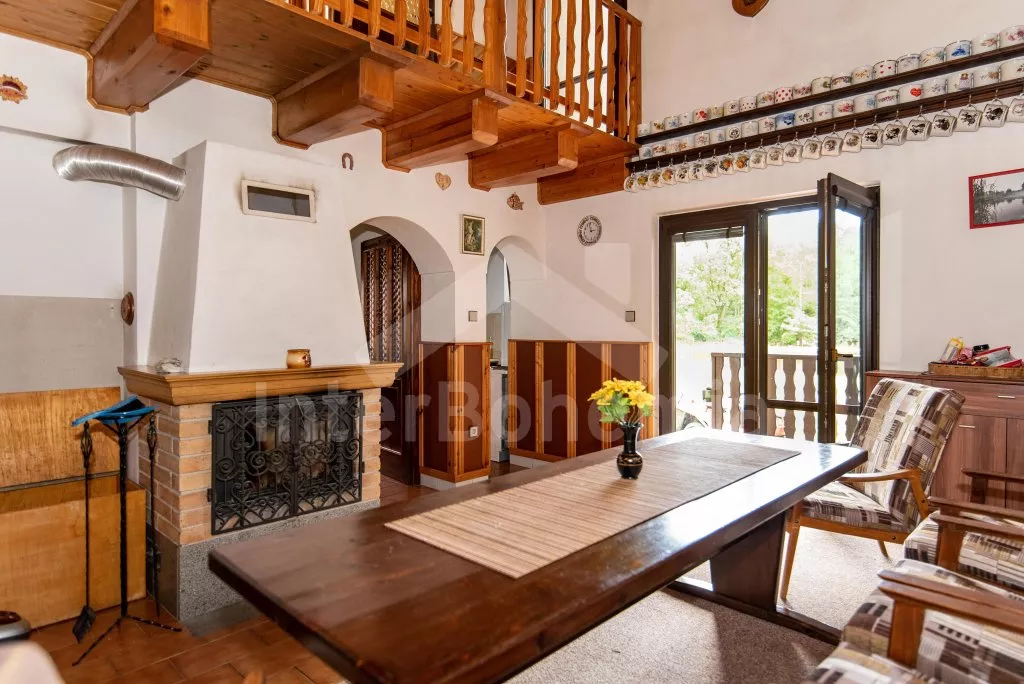 Volně stojící chata, postavená v roce 1993, hezky udržovaná. Vstup, chodba, obývací pokoj s podlahou ve dvou úrovních, sedací soupravou, jídelním stolem, krbem a vstupem na terasu. Malá kuchyňka s… Více informací