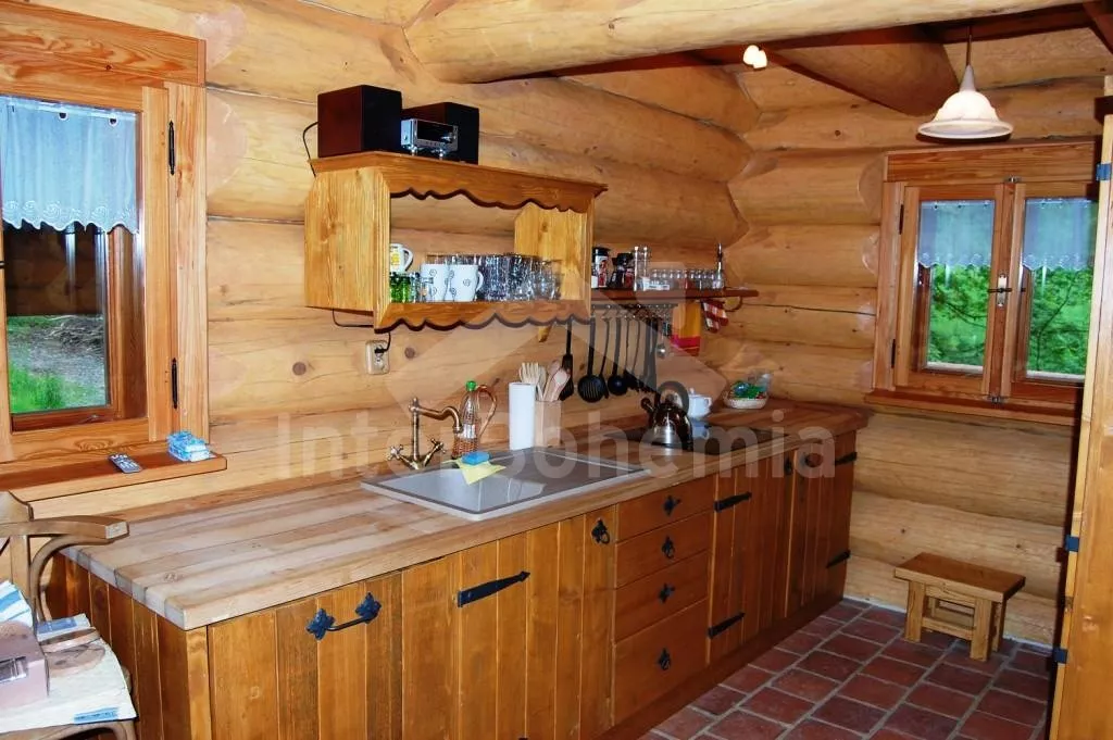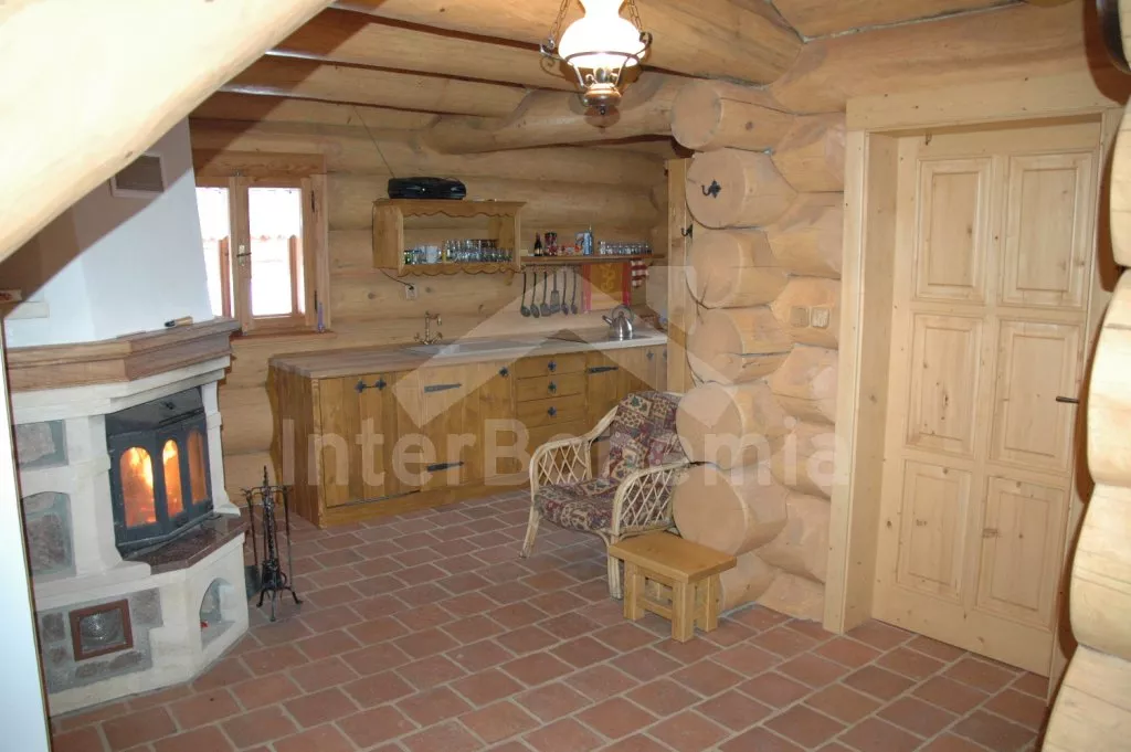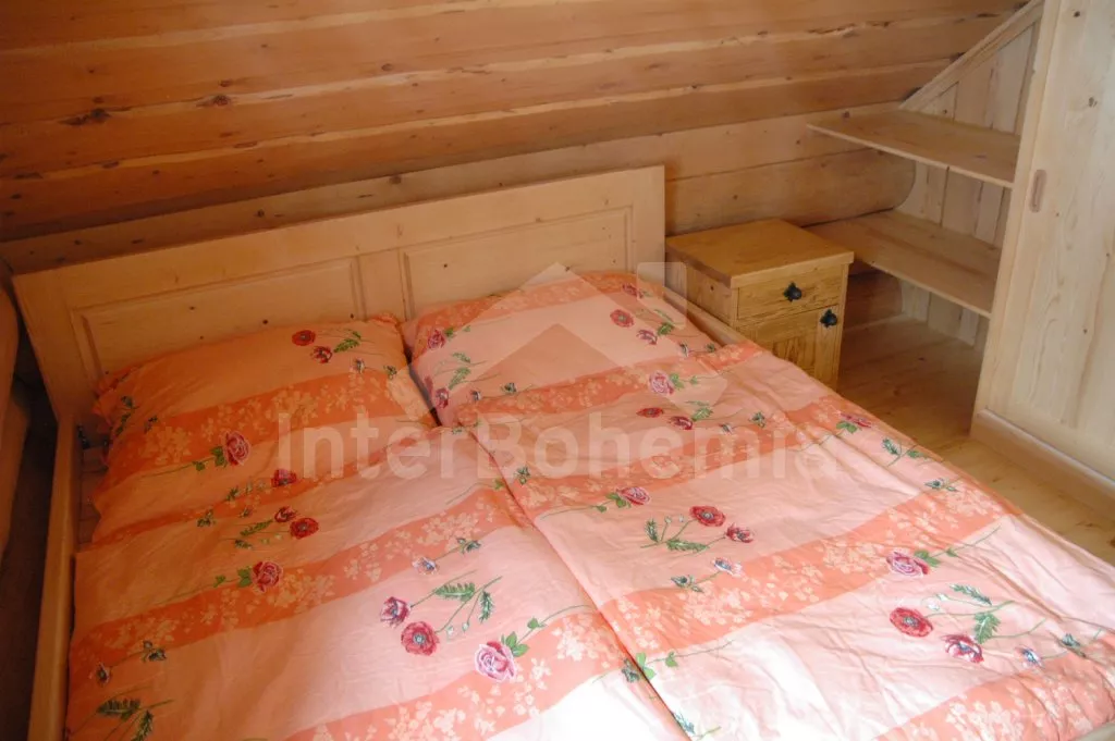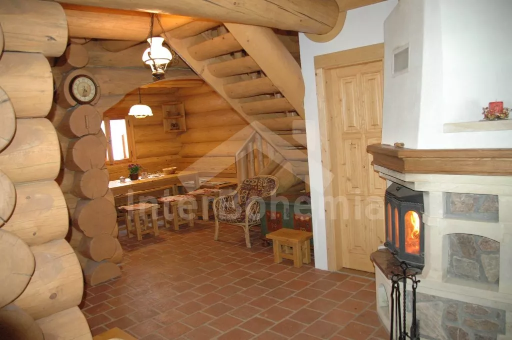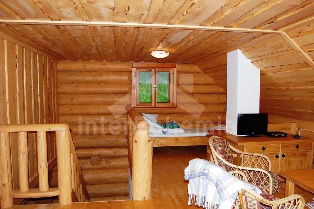 Ubytování pro náročné! Novostavba volně stojícího srubu v norském stylu. Objekt je luxusně zařízený a vybavený veškerými moderními vymoženostmi. Vstup, předsíň, prostorný a stylový obývací pokoj s jídelním koutem pro 10 osob, krásným krbem a otevřeným kuchyňským koutem. Kuchyňský kout je vybaven elektrickým sporákem s keramickou varnou deskou, lednicí, varnou konvicí, mikrovlnnou troubou a myčkou na nádobí. Ložnice s dvojlůžkem. Koupelna s vanou kombinovanou se sprchovým koutem a toaletou. V patře se nachází hala / společenská místnost s televizí se satelitním příjmem a DVD, dvojlůžkem, dvěma samostatnými lůžky a vstupem na balkón. Další dvě ložnice – každá s jedním dvojlůžkem. Vytápění elektrické nebo krbem. Srub stojí na velkém neoploceném pozemku (7.000 m2). K dispozici je zahradní nábytek, přenosný gril a ohniště. Vlastní parkoviště.