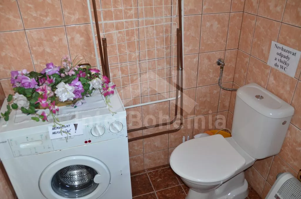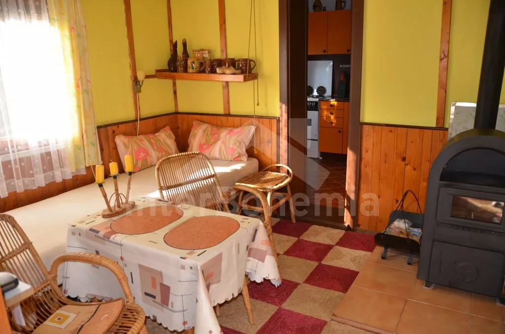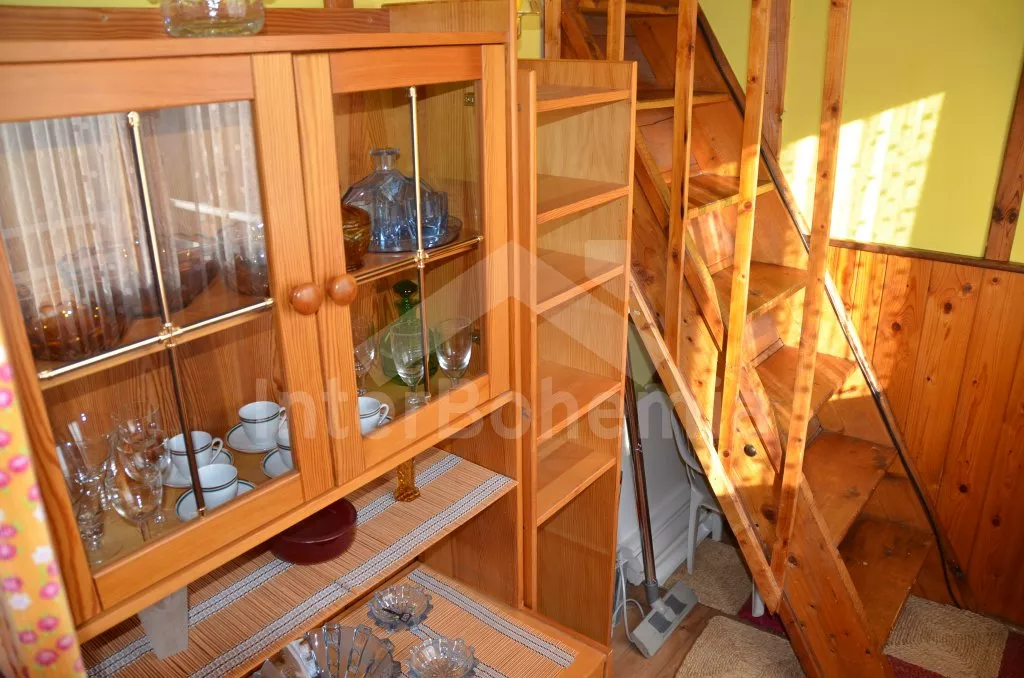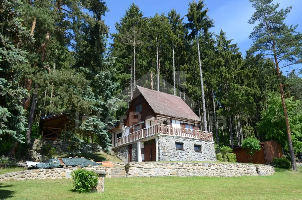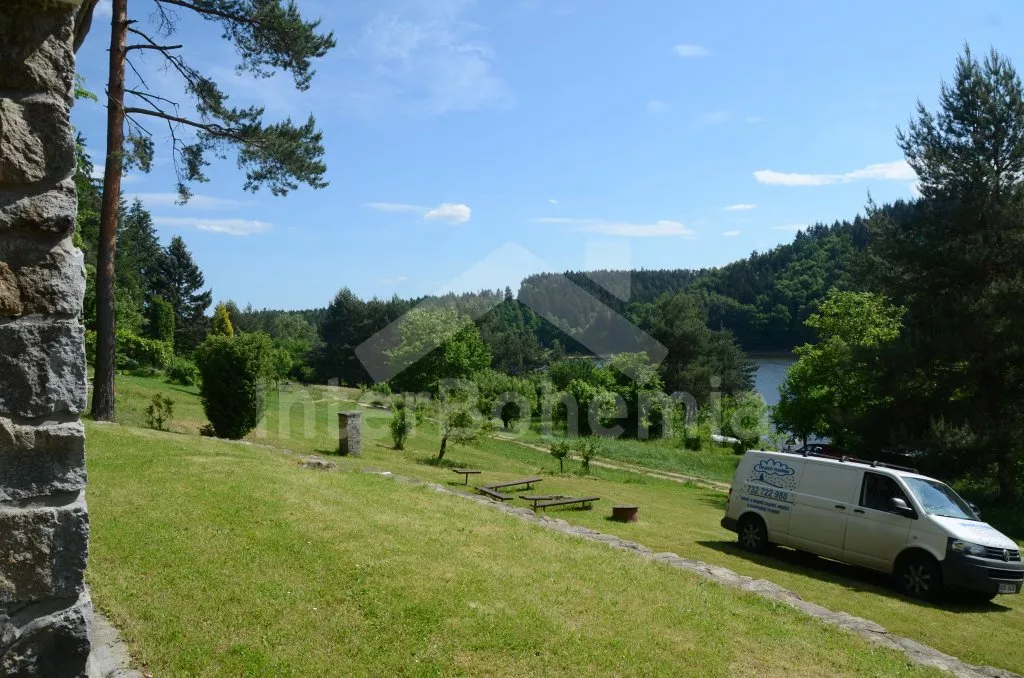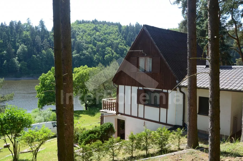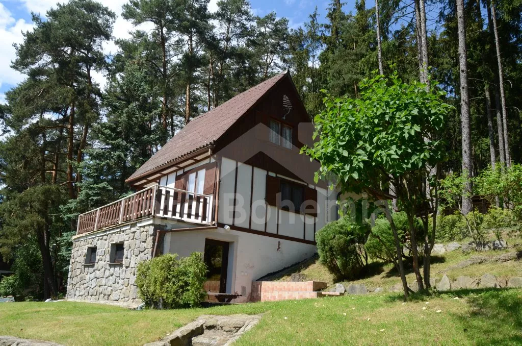 Volně stojící rekreační chata, pohodlně a účelně zařízená. Vstup, předsíň, obývací pokoj s posezením, krbovými kamny a TV, malý průchozí pokoj s TV a 1½ lůžkem a schody do patra. Kuchyně s elektrickým sporákem, kombinovanou lednicí s mrazákem, mikrovlnnou troubou, varnou konvicí a jídelním stolkem pro 4 osoby. Koupelna se sprchovým koutem, toaletou a umyvadlem. V patře je jedna velká ložnice se 4 samostatnými lůžky. Vytápění krbovými kamny a v případě potřeby elektrickým přímotopem. K dispozici na pozemku je velká kamenná terasa s posezením a zahrada s posezením u ohniště a udržovaný přístupem k vodě (ideální pro rybáře). Ukládání rybářského a dalšího vybavení ve skladu se zámkem. Parkování na pozemku.