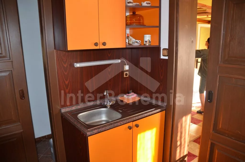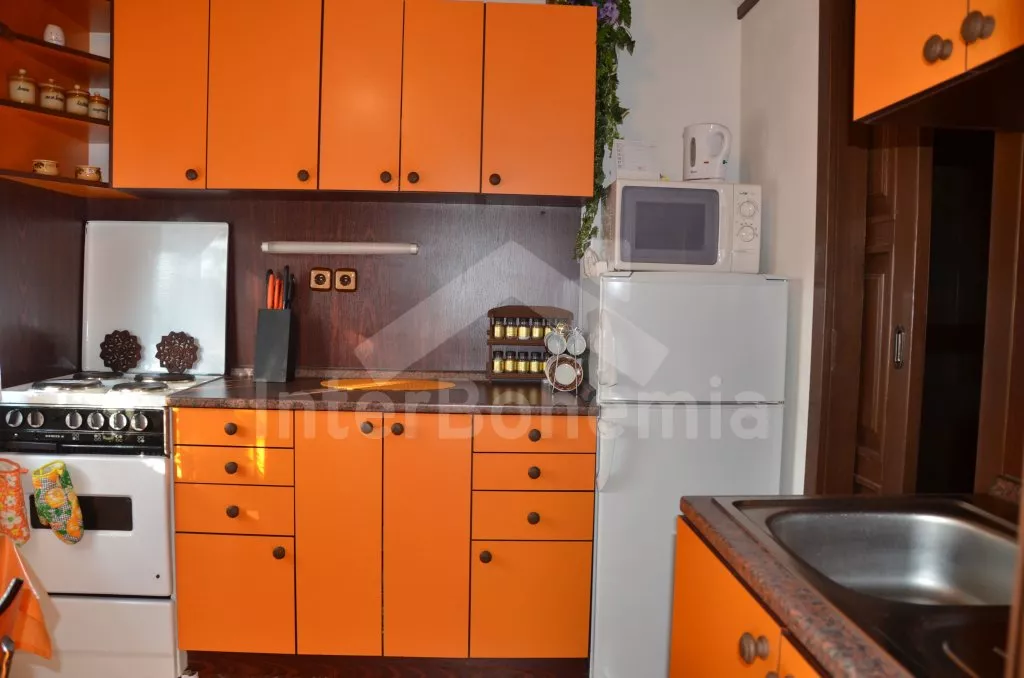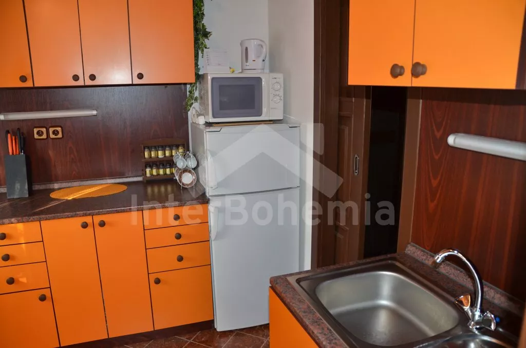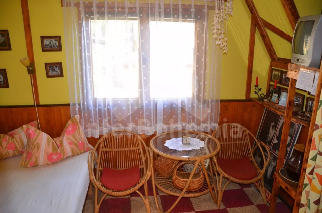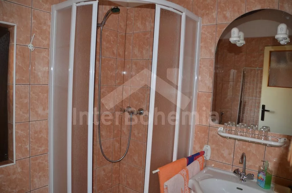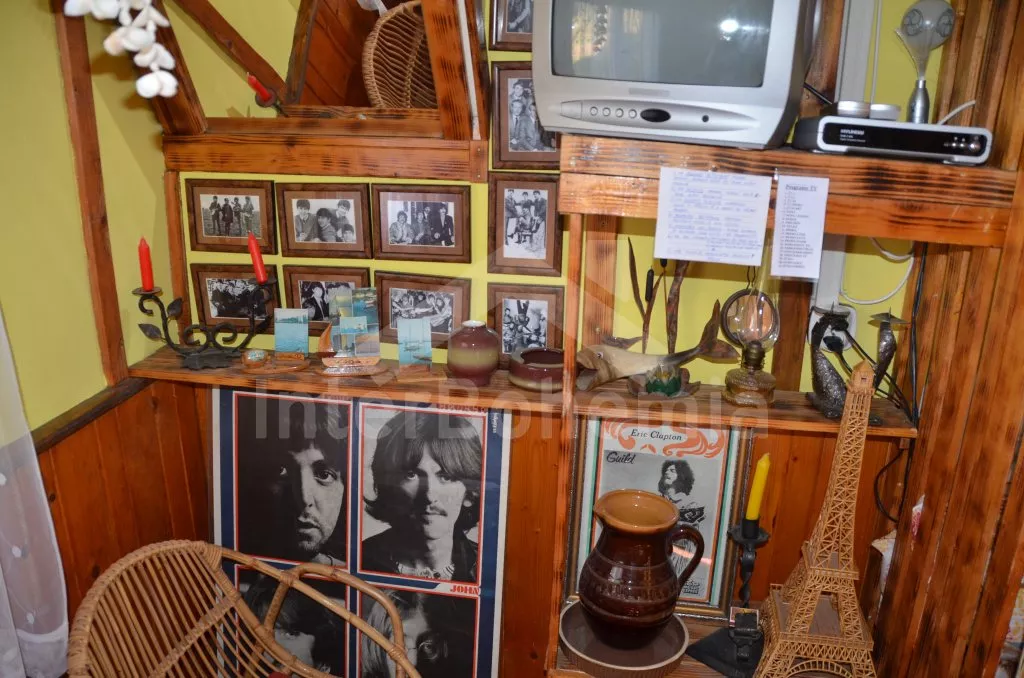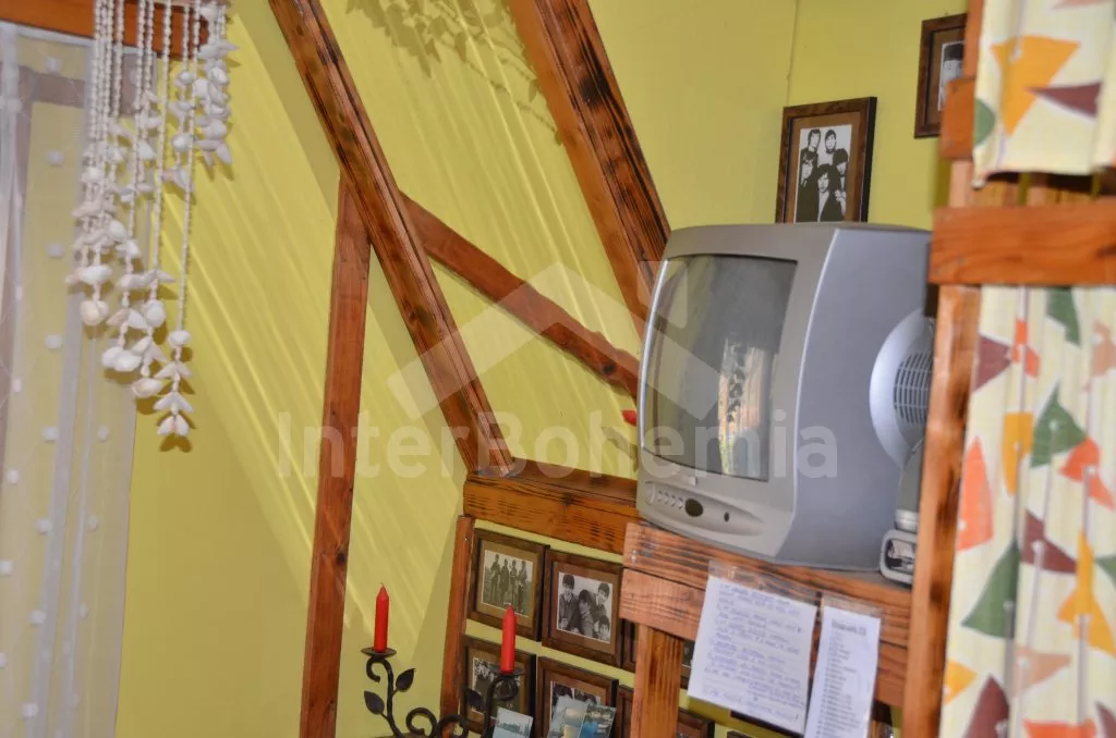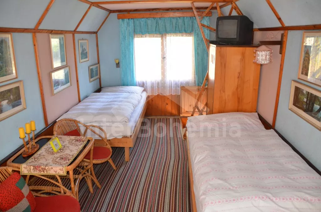 Volně stojící rekreační chata, pohodlně a účelně zařízená. Vstup, předsíň, obývací pokoj s posezením, krbovými kamny a TV, malý průchozí pokoj s TV a 1½ lůžkem a schody do patra. Kuchyně s… Více informací