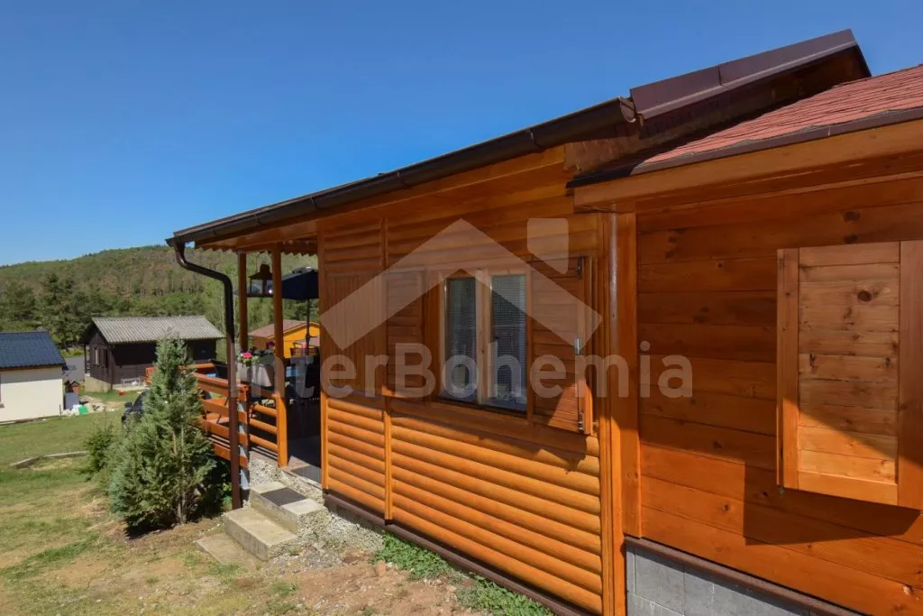 Útulná dřevěná chata po celkové rekonstrukci v roce 2020. Kuchyňka s dvouplotýnkovým elektrickým vařičem, mikrovlnnou troubou, lednicí, mrazákem, kávovarem, rychlovarnou konvicí a nádobím. Obývací pokoj s jídelním stolem, pohovkou (rozkládací dvoulůžko) a LCD televizí s herní konzolí PS3 (+ 5 her). Ložnice se třemi samostatnými rozkládacími lůžky. Z ložnice vstup do koupelny se sprchovým koutem, umyvadlem a WC. Hosté mají k dispozici terasu s venkovním posezením a přenosným grilem, ze které je částečný výhled na Orlickou přehradu. Před chatou možnost využívat veřejné hřiště, ohniště a houpačky. Po domluvě s pronajímatelkou je možné zapůjčení paddleboardu. Parkování přímo u objektu pro 2 vozidla.